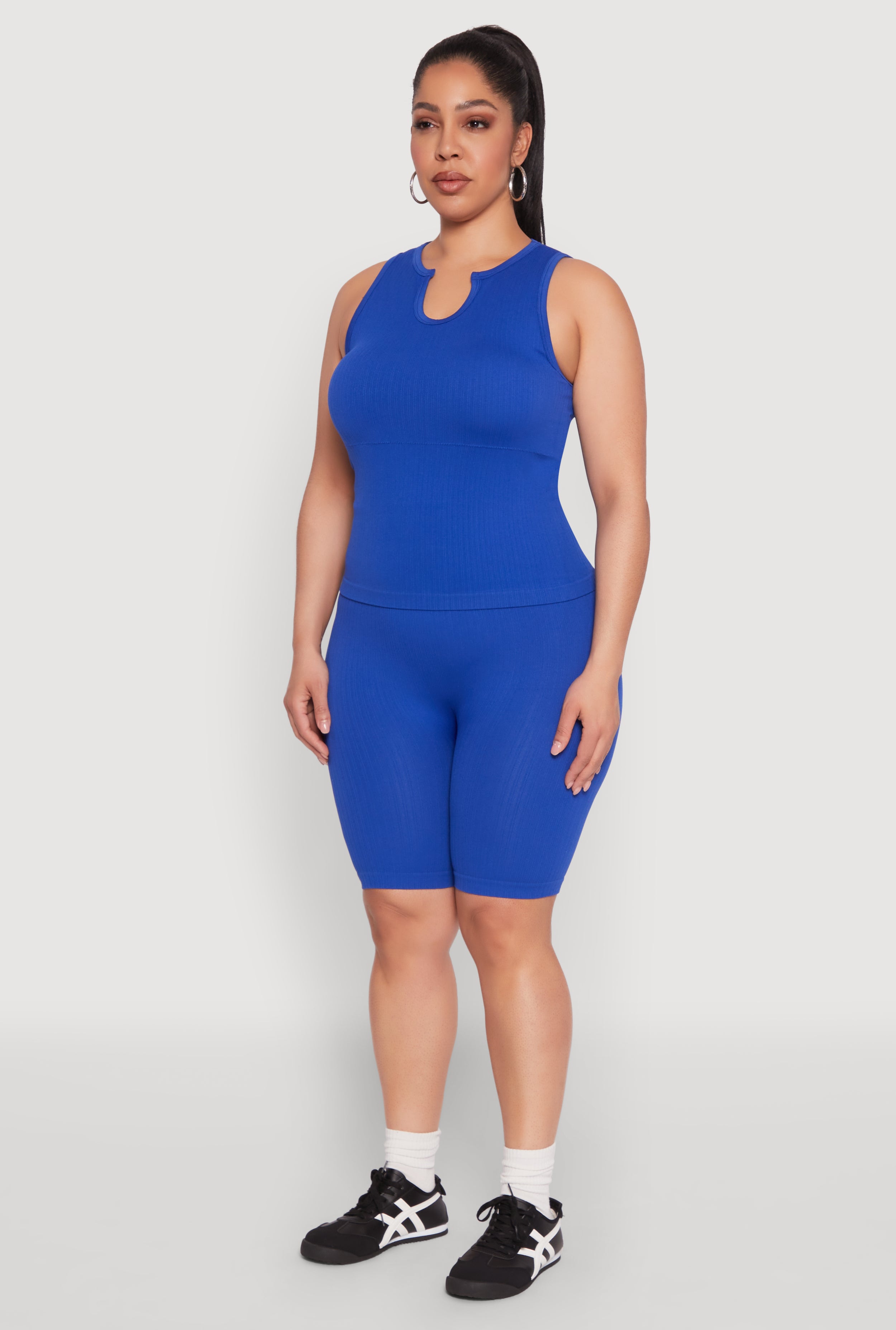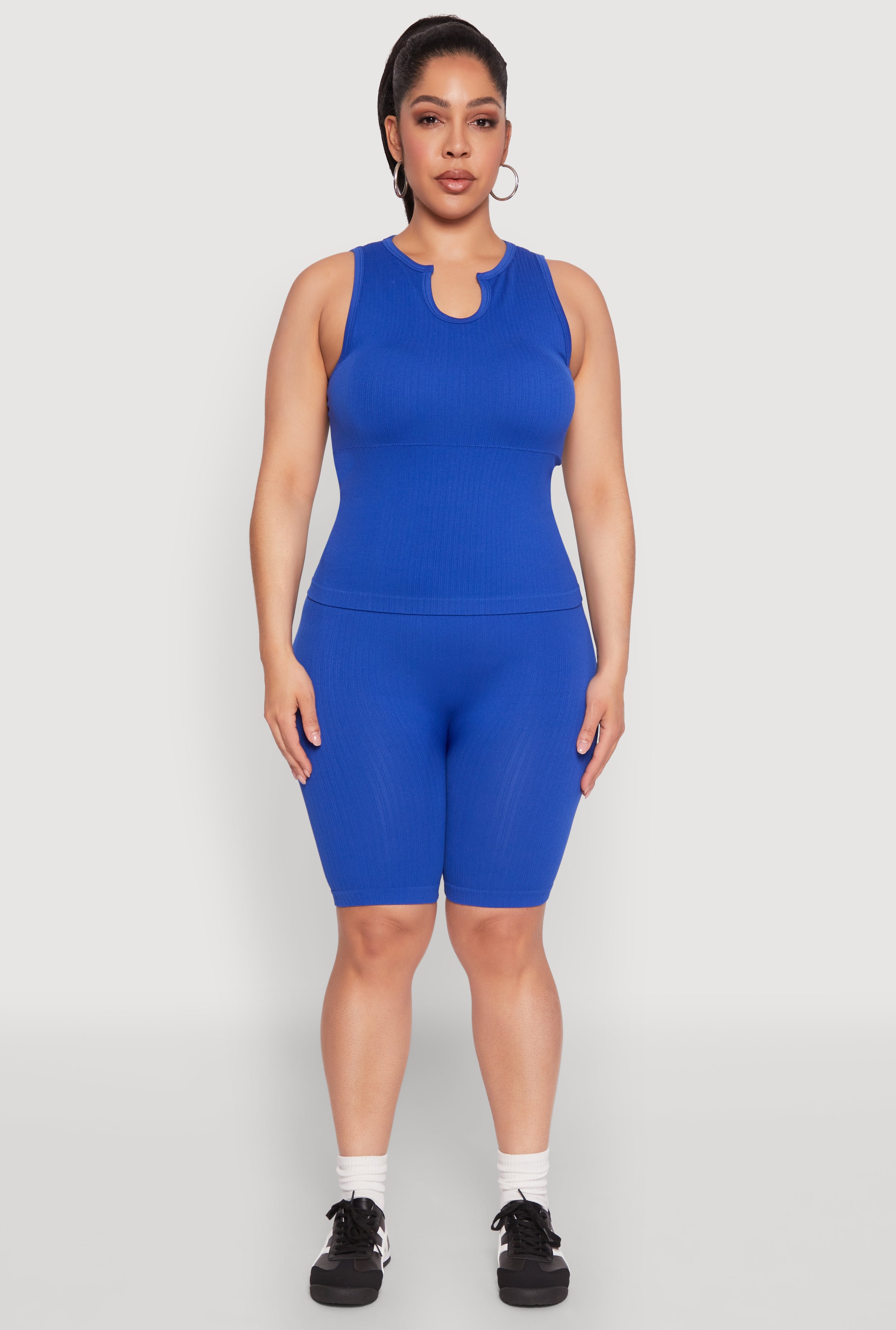 Upgrade your wardrobe with our Plus Size Seamless Ribbed Notch Neck Tank Top, the perfect blend of comfort and style. Designed with a classic fit and timeless silhouette, this sleeveless tank is your go-to for activewear or casual sets. The built-in shelf bra and removable padding make it feel like a custom fit every time. Whether you're hitting the gym or lounging at home, this versatile top has got you covered.