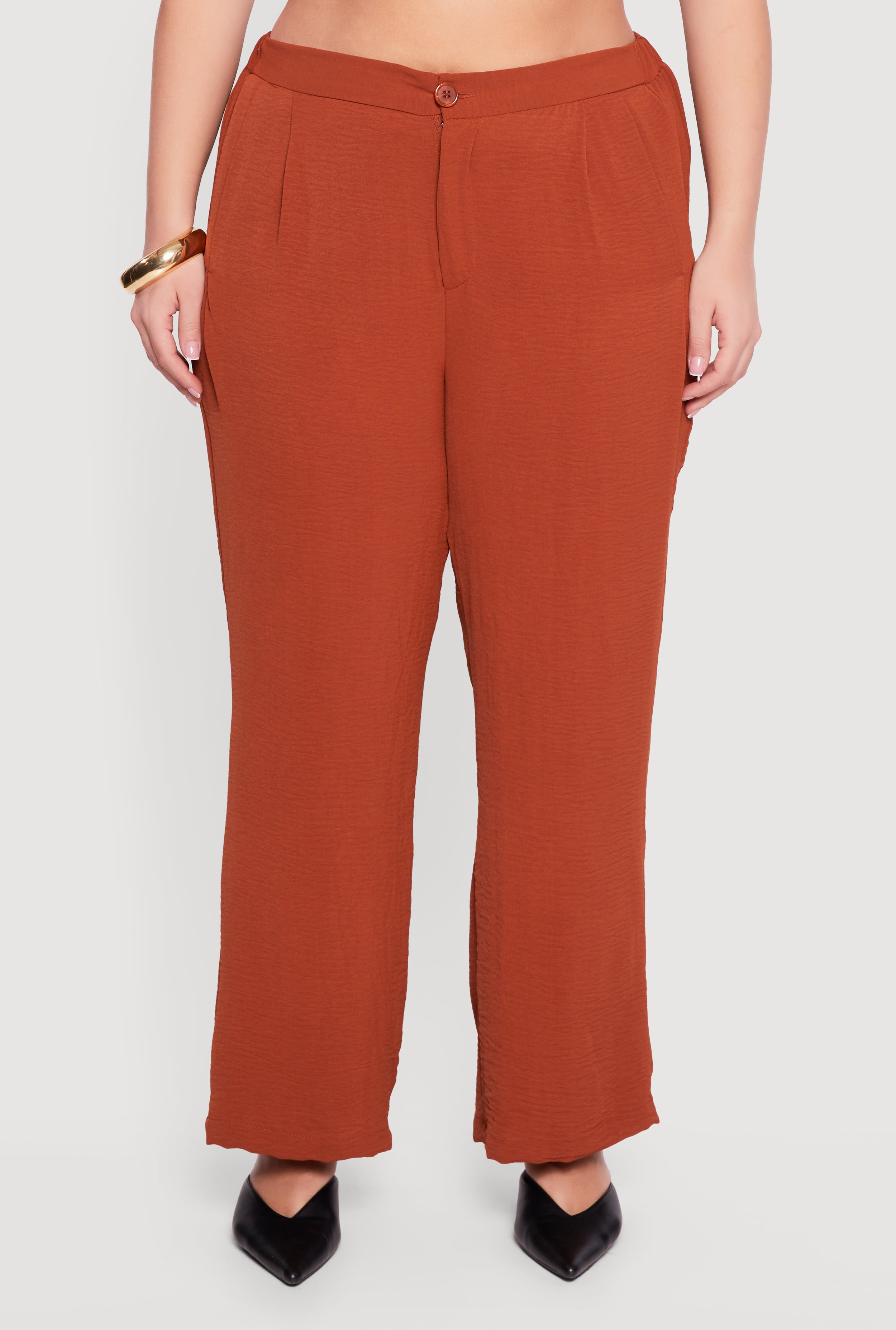 Step up your style game with these Plus Size Crepe Knit High Waist Straight Leg Pants designed to flatter every curve. Crafted from soft crepe knit fabric, they offer a comfortable classic fit that moves with you all day long. The high waist and straight leg silhouette create a sleek, elongating look perfect for casual outings or dressing up with your favorite top. With a smooth zipper closure and solid color, these pants are your new go-to for effortless chic vibes.