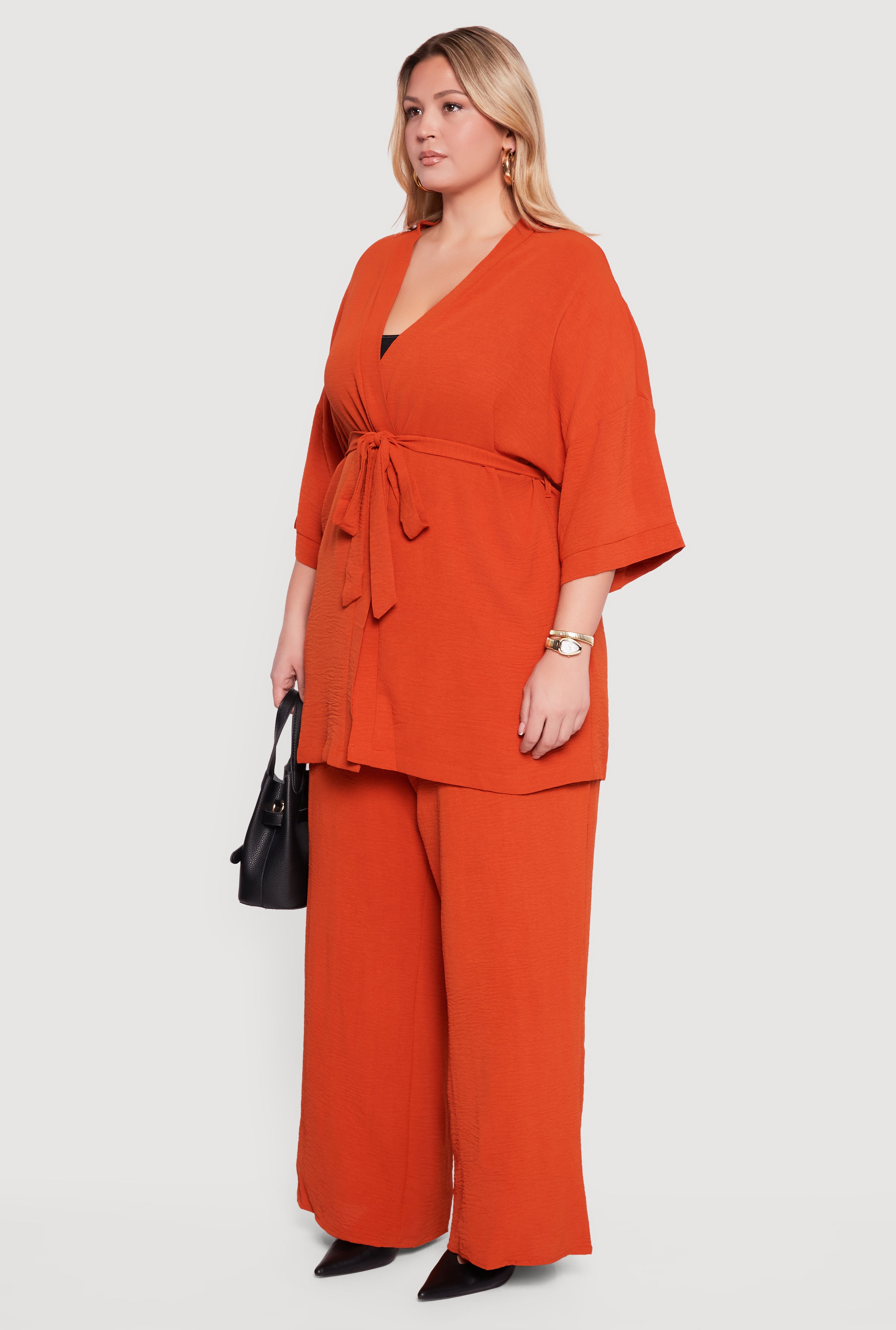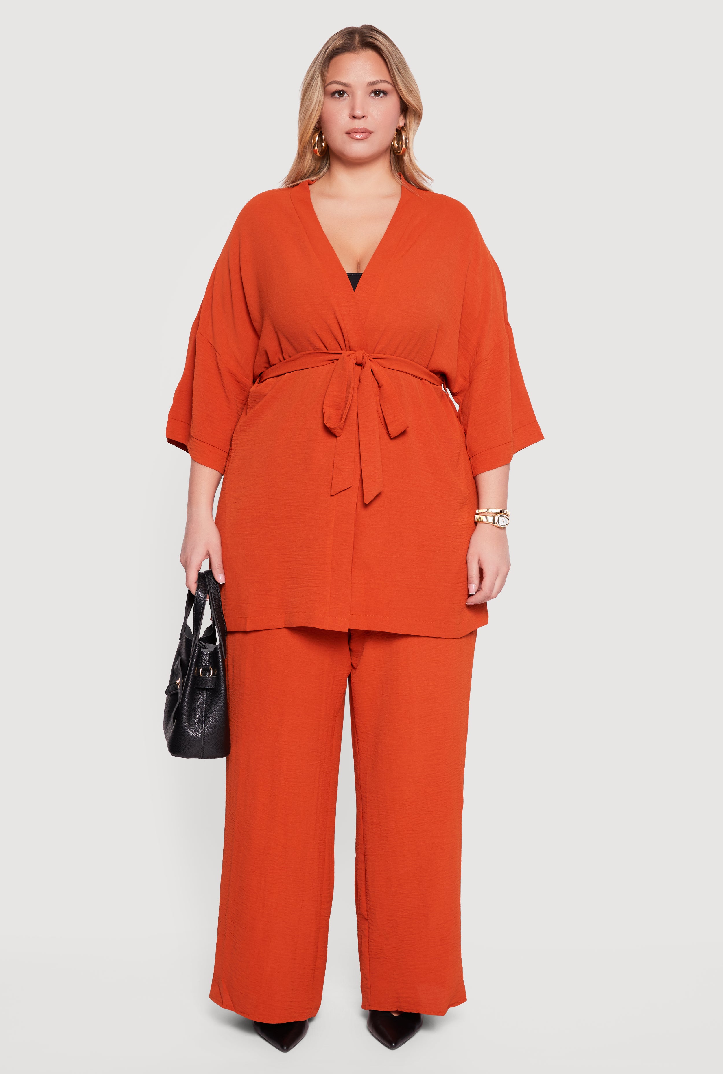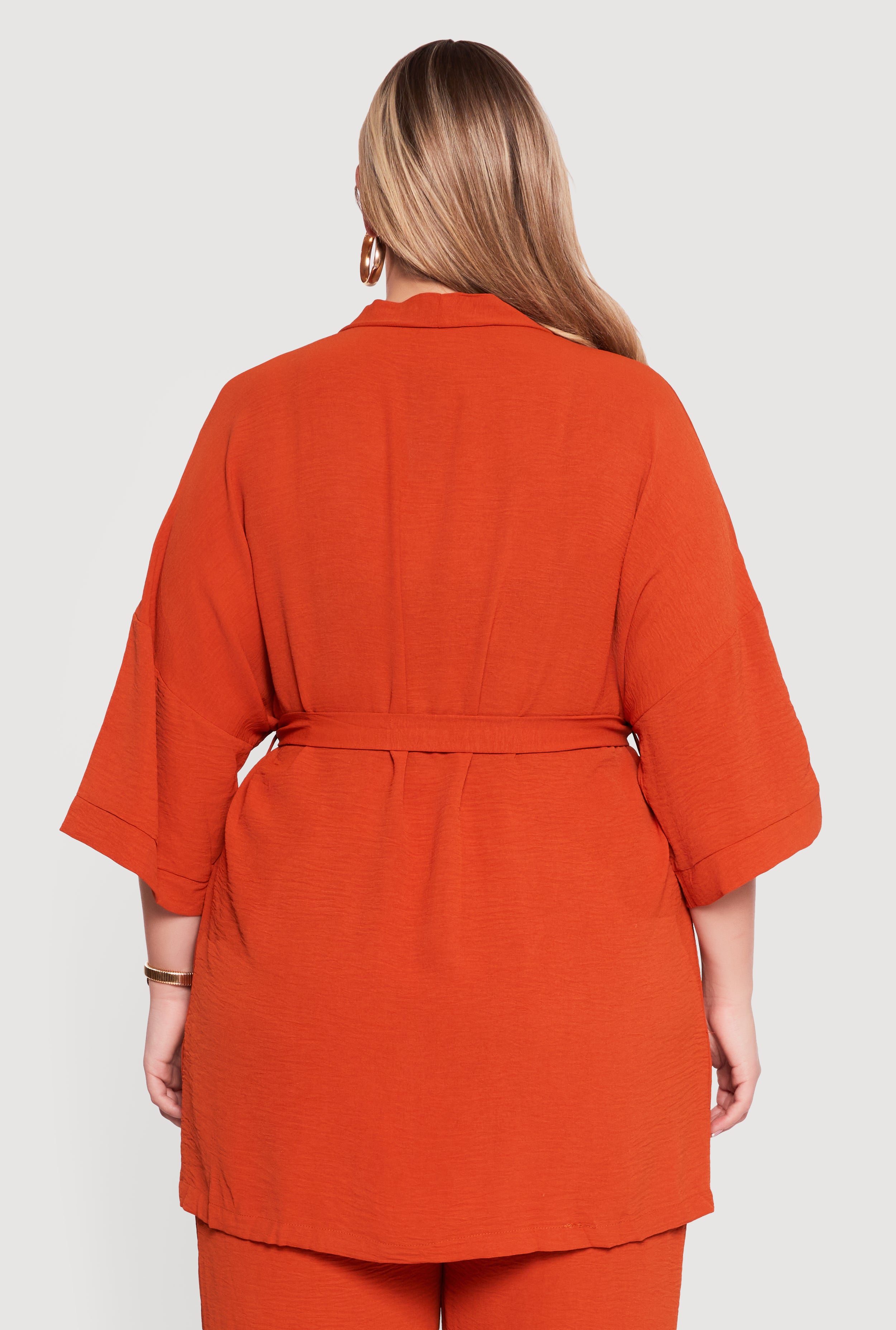 Step into effortless style with this Plus Size Crepe Knit Kimono featuring a flattering plunge neckline and a chic tie waist belt to cinch your silhouette. Designed with 3/4 dolman sleeves and a classic fit, this kimono blends comfort and casual cool for your everyday adventures or vacation vibes. The soft crepe knit fabric drapes beautifully, making it your go-to layering piece that adds a touch of laid-back sophistication to any outfit.