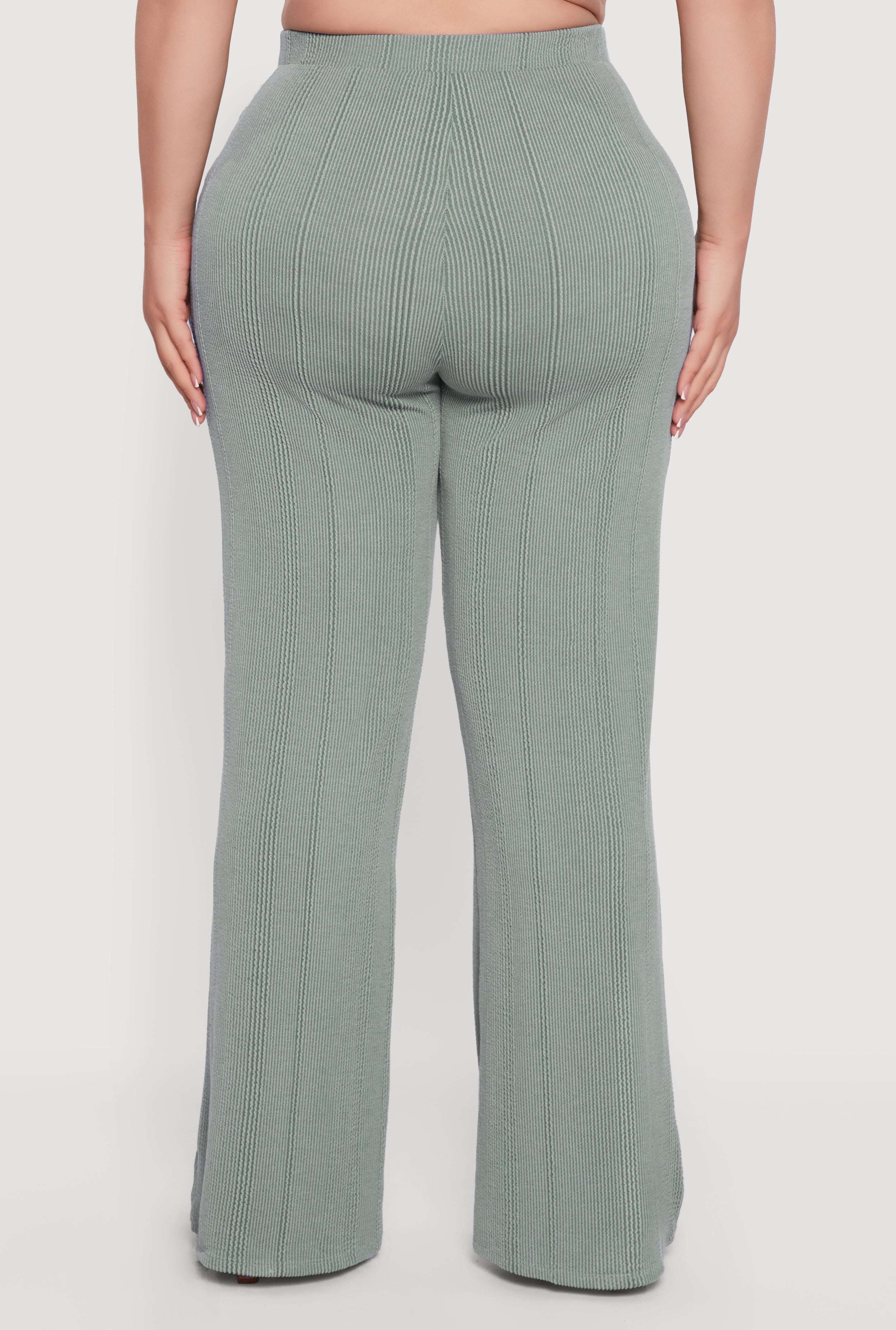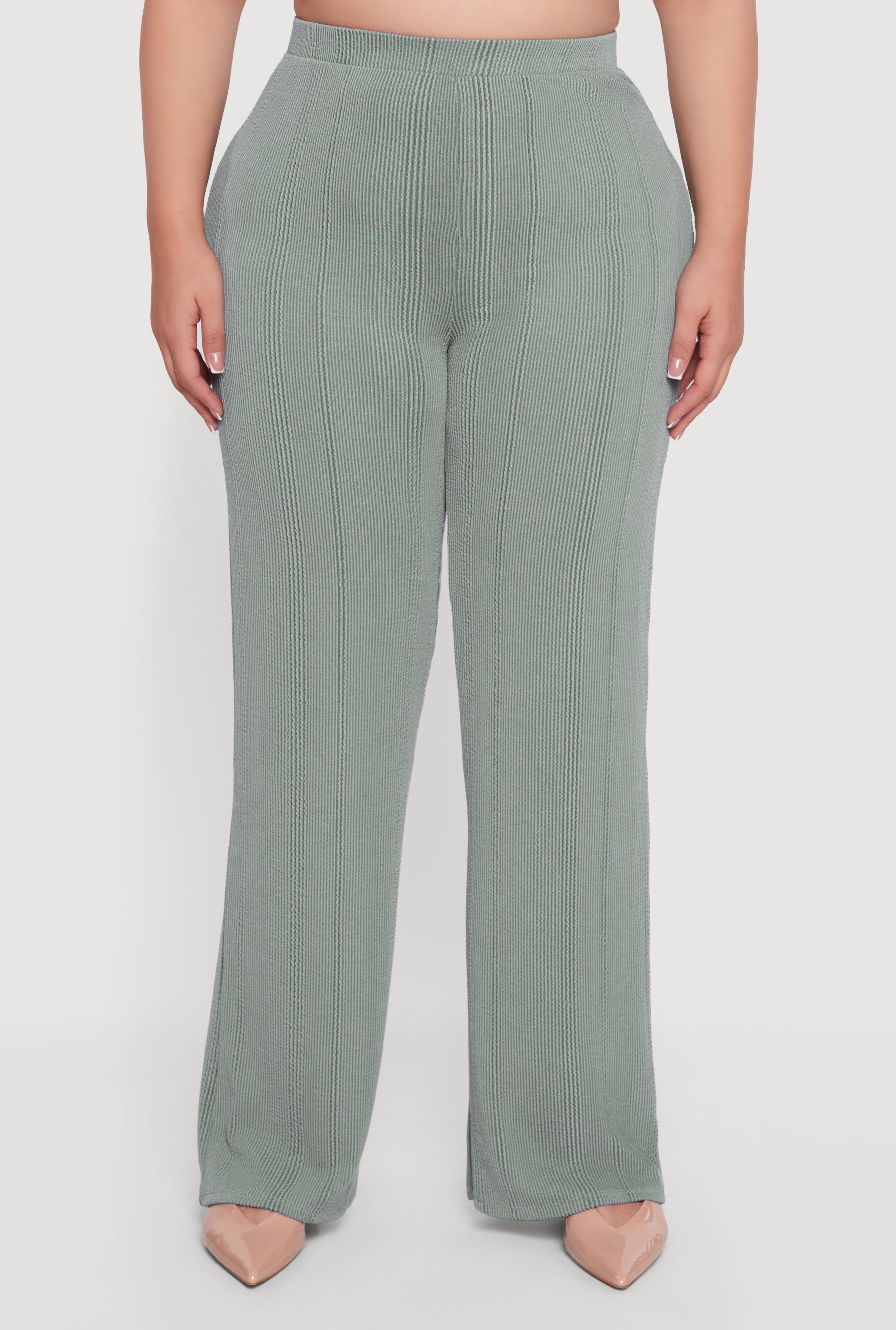 Step into effortless style and comfort with these Plus Size High Waisted Ribbed Knit Casual Pants. Designed to flatter your curves, these pants feature a high waist that enhances your silhouette and a straight-leg cut for a timeless look. Crafted from soft ribbed knit fabric, they offer all-day comfort whether you're lounging at home or out on a casual vacation. The solid color makes them easy to mix and match with your favorite tops, making these pants a versatile addition to your wardrobe.