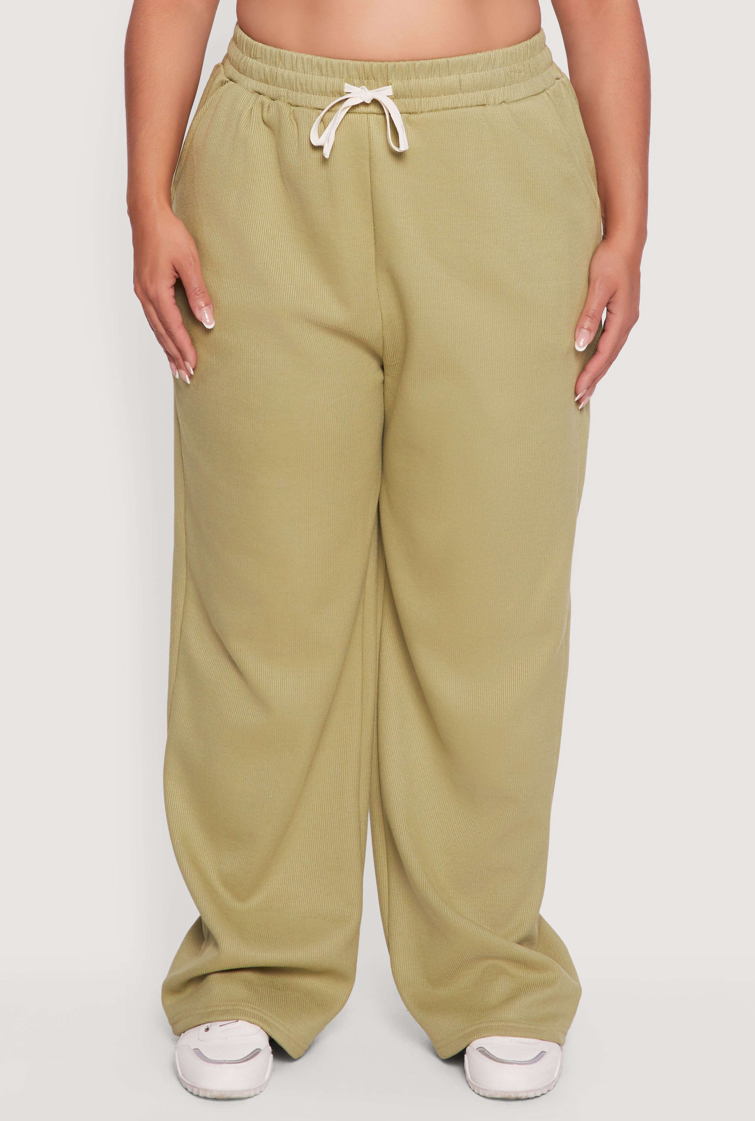 Step up your cozy game with these Plus Size Plush Lined Ribbed Knit High Waisted Sweatpants. Designed for ultimate comfort and style, these sweatpants feature a flattering high waist and a relaxed wide-leg fit that moves with you. The soft plush lining keeps you warm without sacrificing breathability, while the ribbed knit texture adds a trendy touch to your casual look. Perfect for lounging, running errands, or casual outings, these sweatpants combine athleisure vibes with a laid-back leisure feel. Adjustable drawstring closure ensures the perfect fit every time.