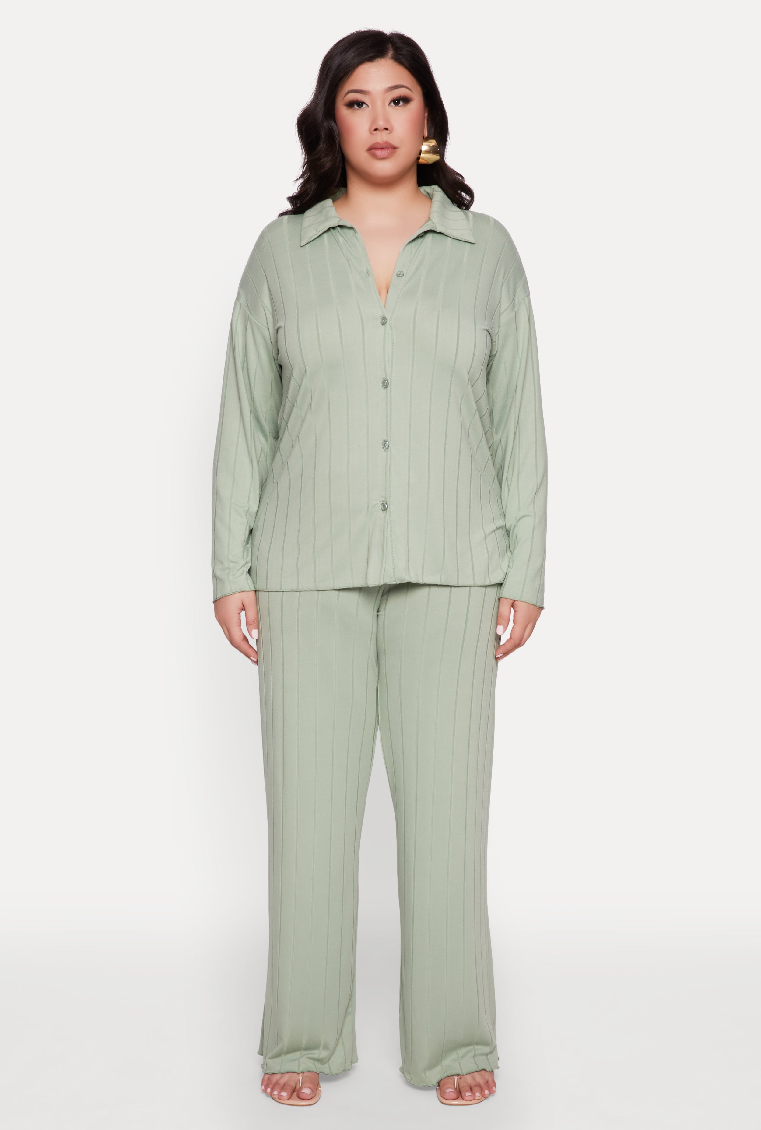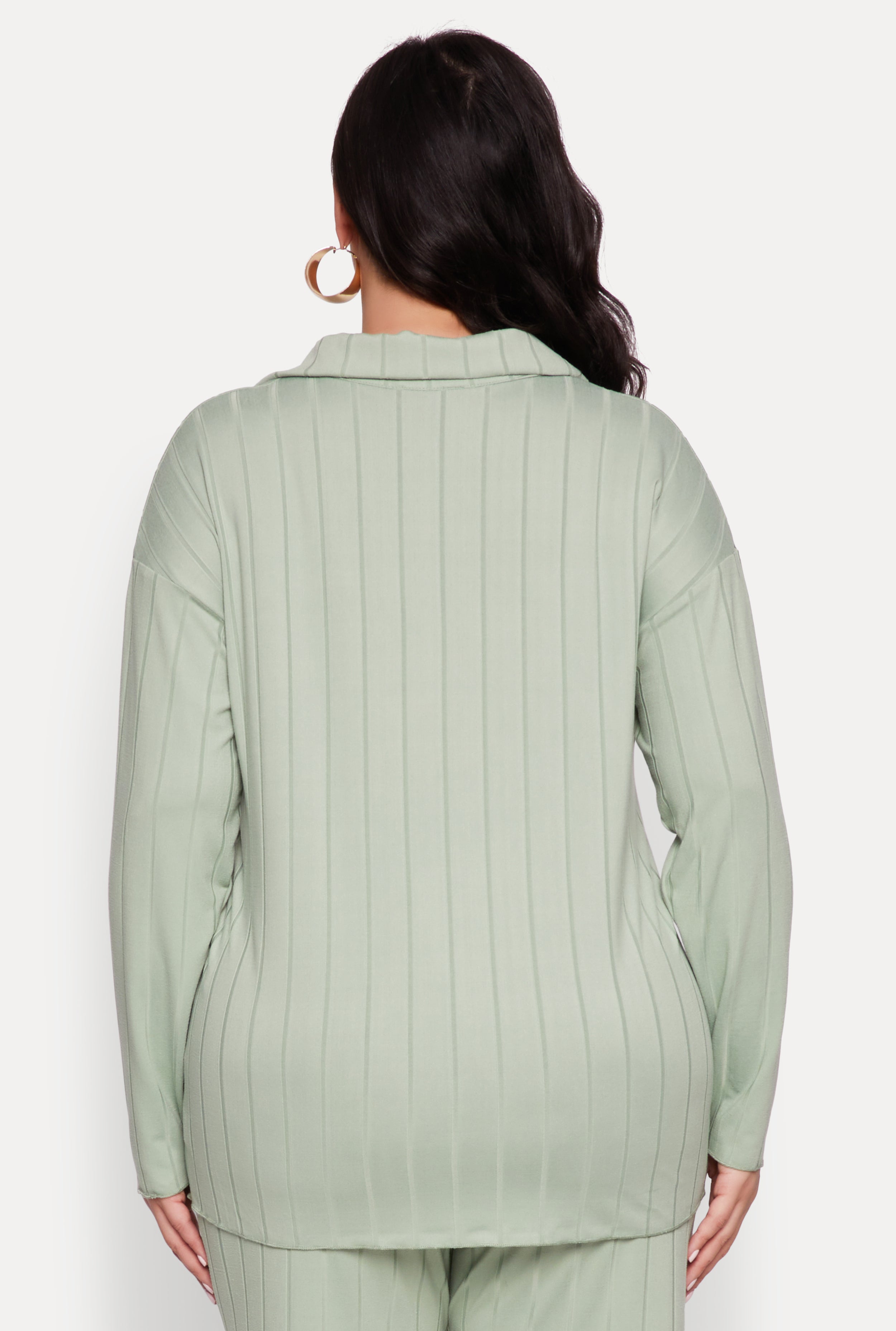 Meet your new go-to top for effortless style and all-day comfort. Our Plus Size Ribbed Knit Button Front Shirt is designed with a classic fit and timeless silhouette that flatters every curve. Featuring long sleeves, a chic shirt collar, and a cute lettuce edge detail, this versatile piece is perfect for dressing up or down. Whether you're lounging at home or heading out with friends, this shirt adds a touch of laid-back sophistication to any outfit. Affordable, stylish, and made to fit, it’s the must-have addition to your wardrobe.