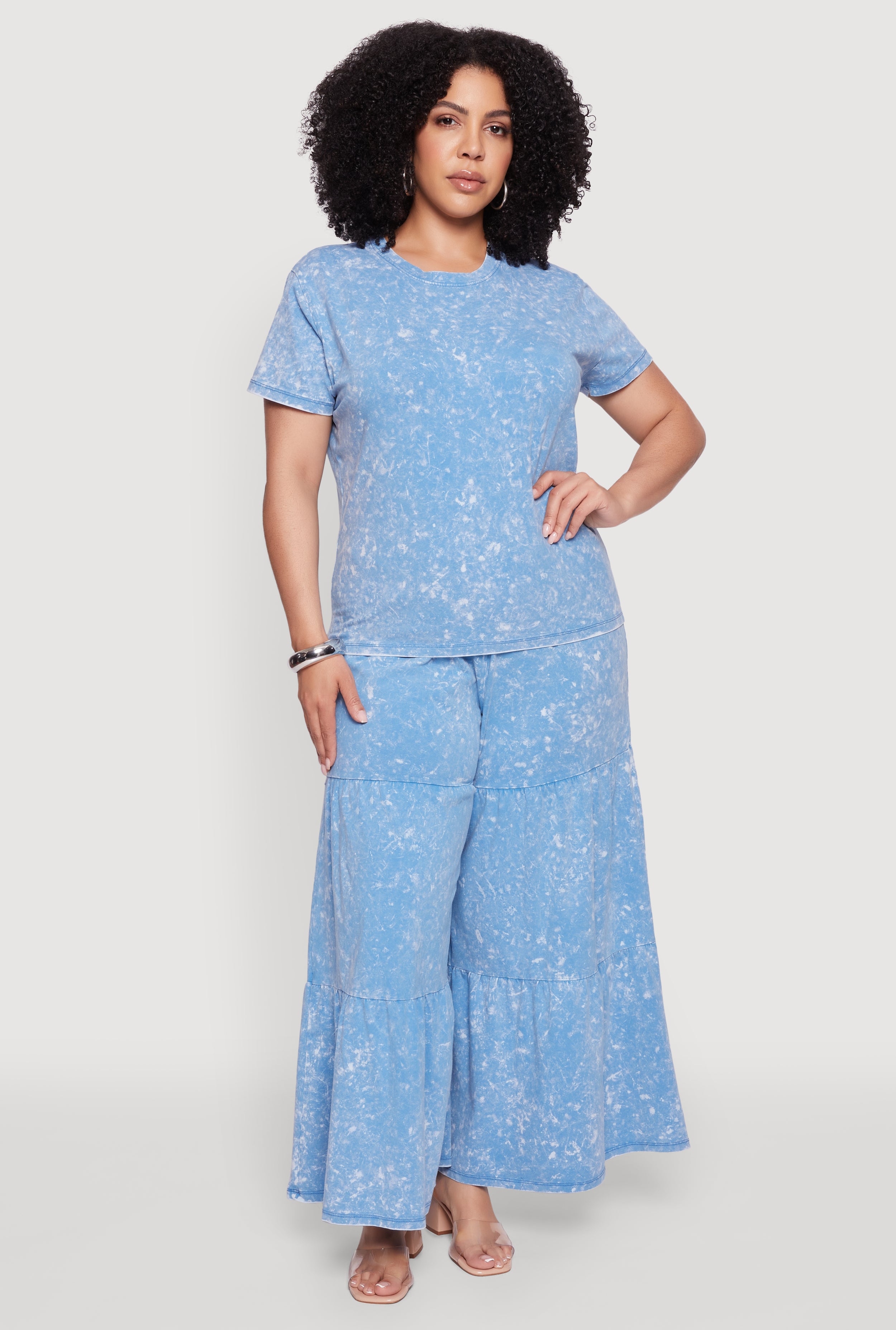 Plus Size Acid Wash Crew Neck Short Sleeve T-Shirt