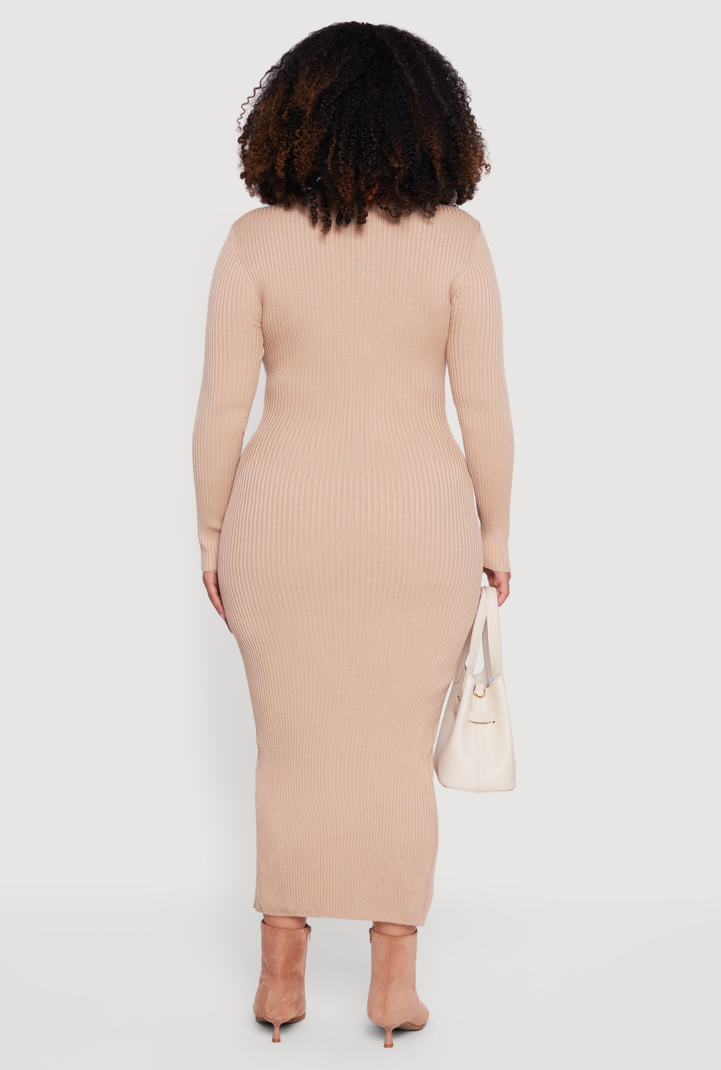 Step out in style with the Plus Size Almost Famous Rib Knit Slit Front Sweater Dress. This mid-length, curve-hugging dress is designed to flatter your silhouette while keeping things effortlessly chic. The ribbed knit fabric offers cozy stretch and comfort, perfect for casual days when you want to look put together without trying too hard. Featuring a trendy slit front and a classic collared neckline with faux button details, this sweater dress is your new go-to for laid-back vibes with a touch of flair.