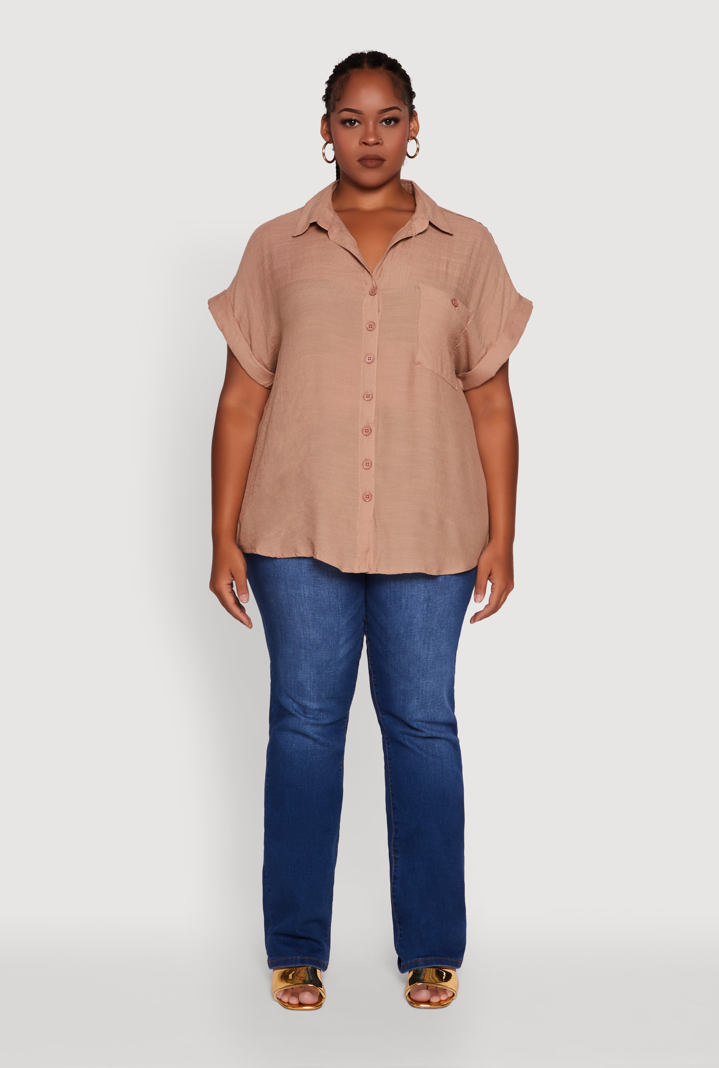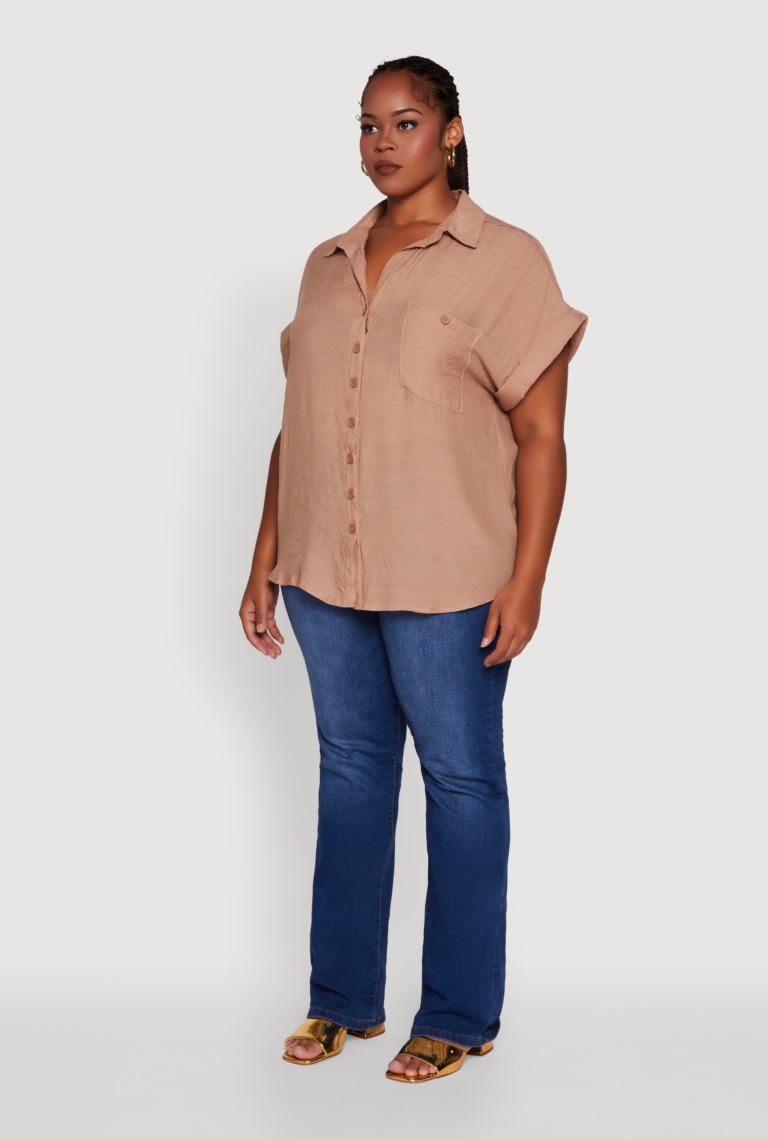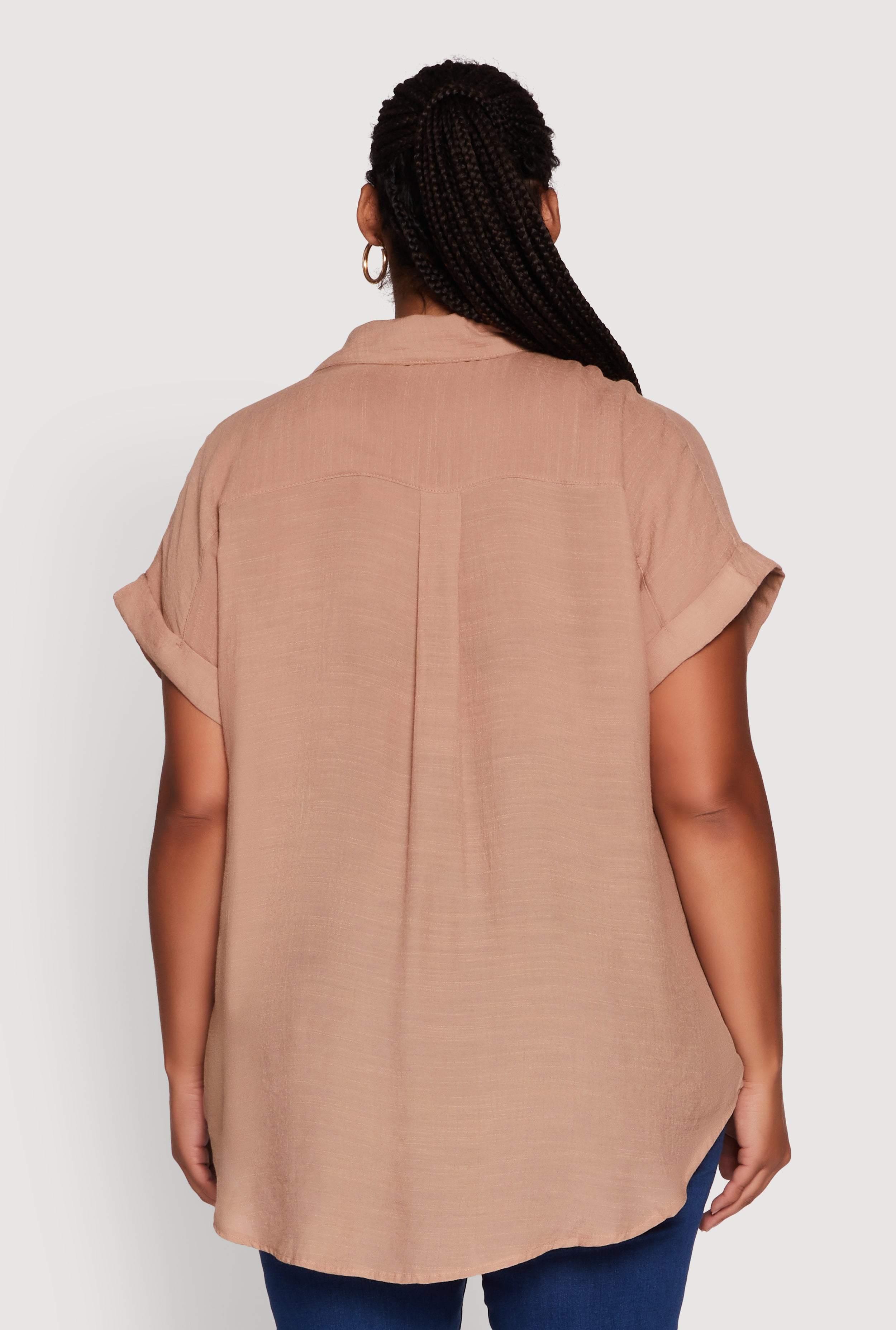 Plus Size Gauze Knit Button Front Dolman Sleeve Shirt