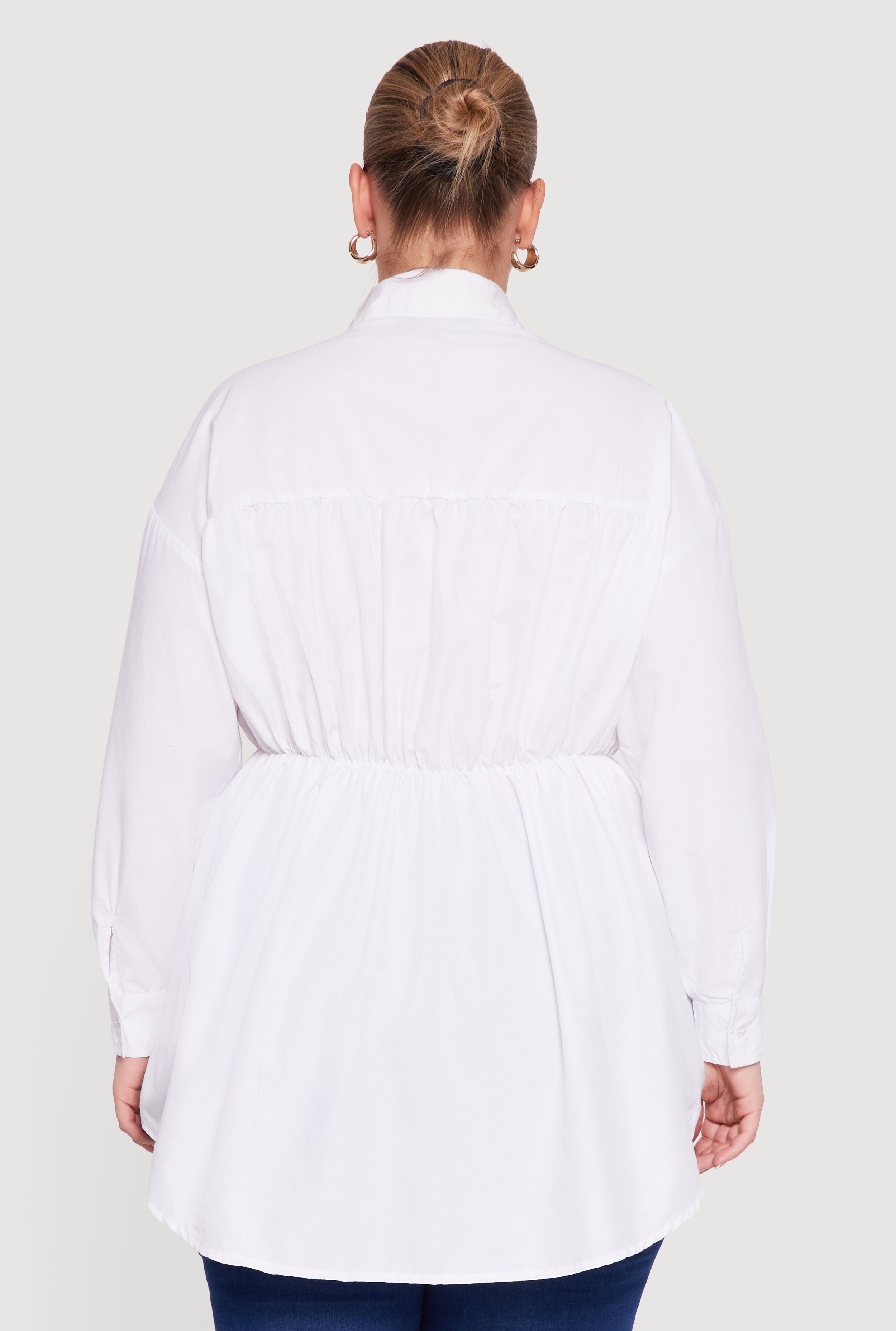- Tunic hem provides a relaxed, flattering length