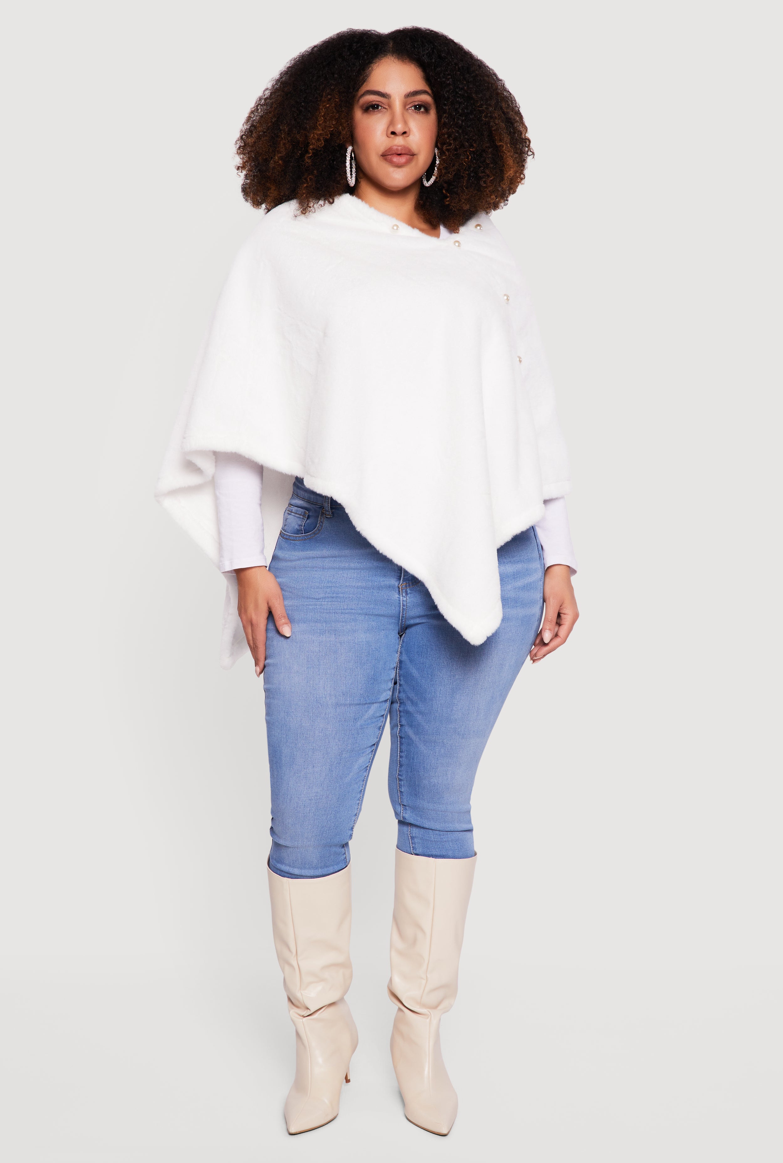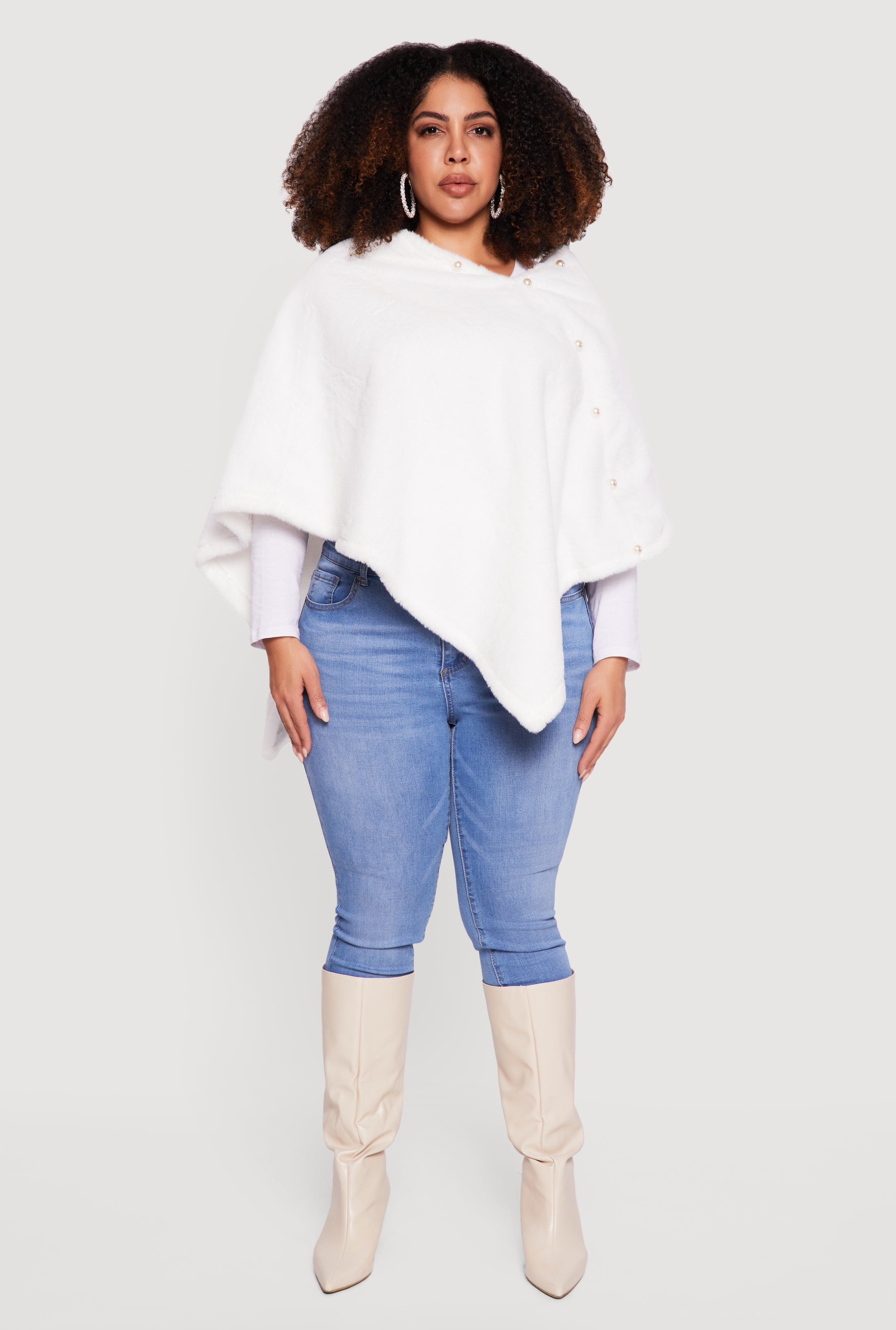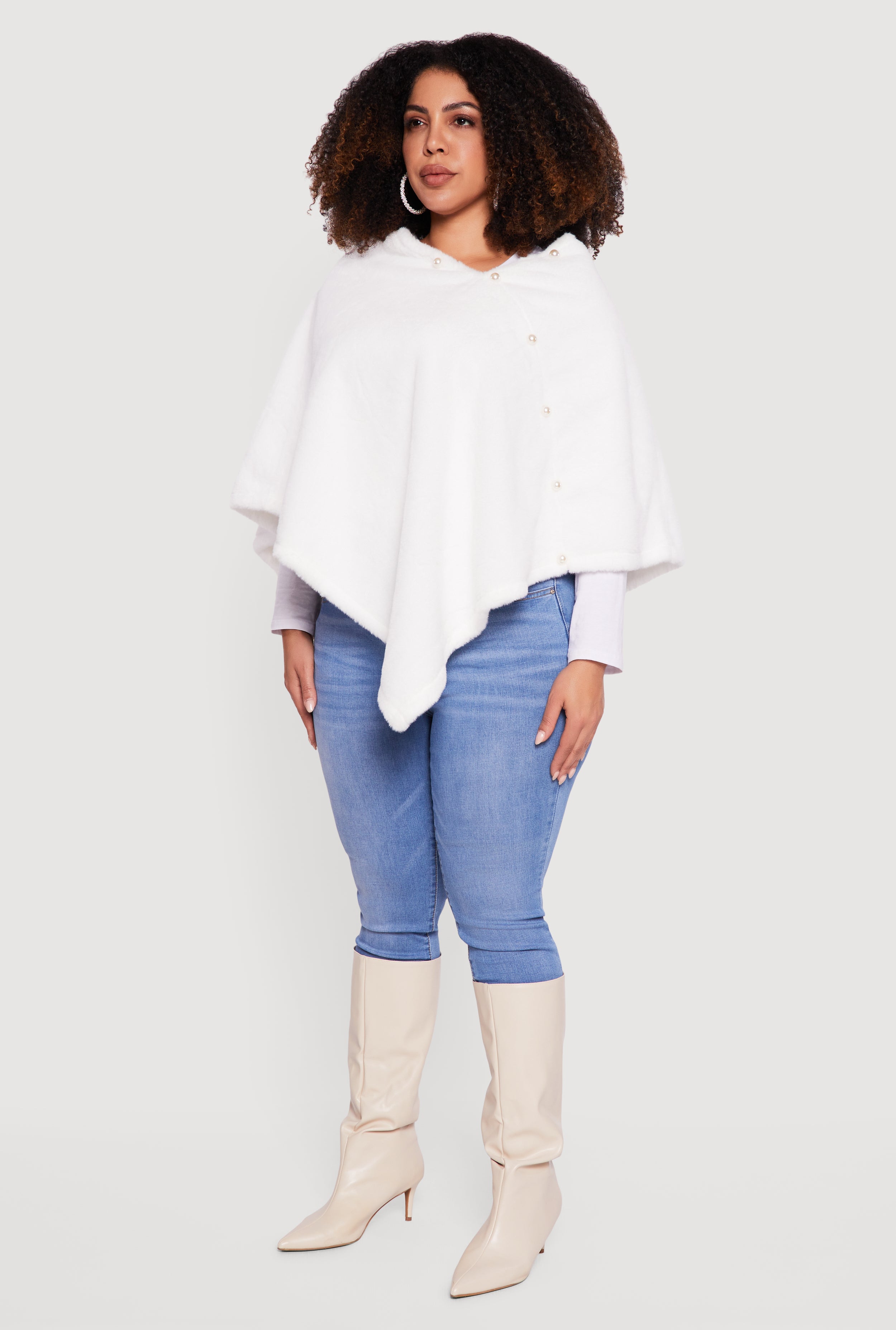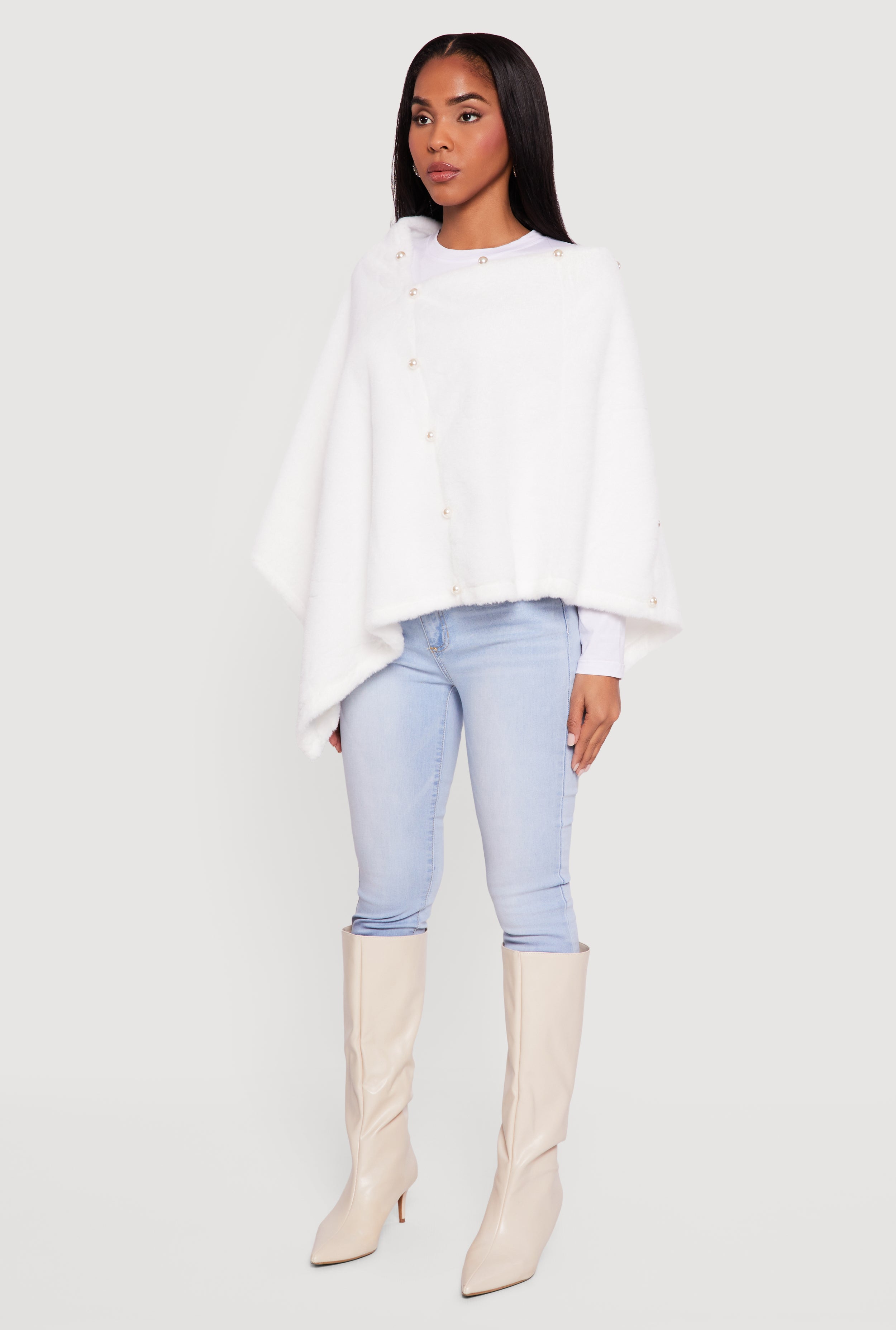 Step out in style and cozy comfort with this Faux Pearl Detail Faux Fur Poncho. Designed with a classic fit and a chic high neck, it’s your go-to layering piece for casual days when you want to feel effortlessly cool. The soft faux fur adds a touch of luxe without breaking the bank, while the delicate faux pearl accents bring a subtle sparkle that elevates your look. Perfect for those who love fashion that feels as good as it looks.