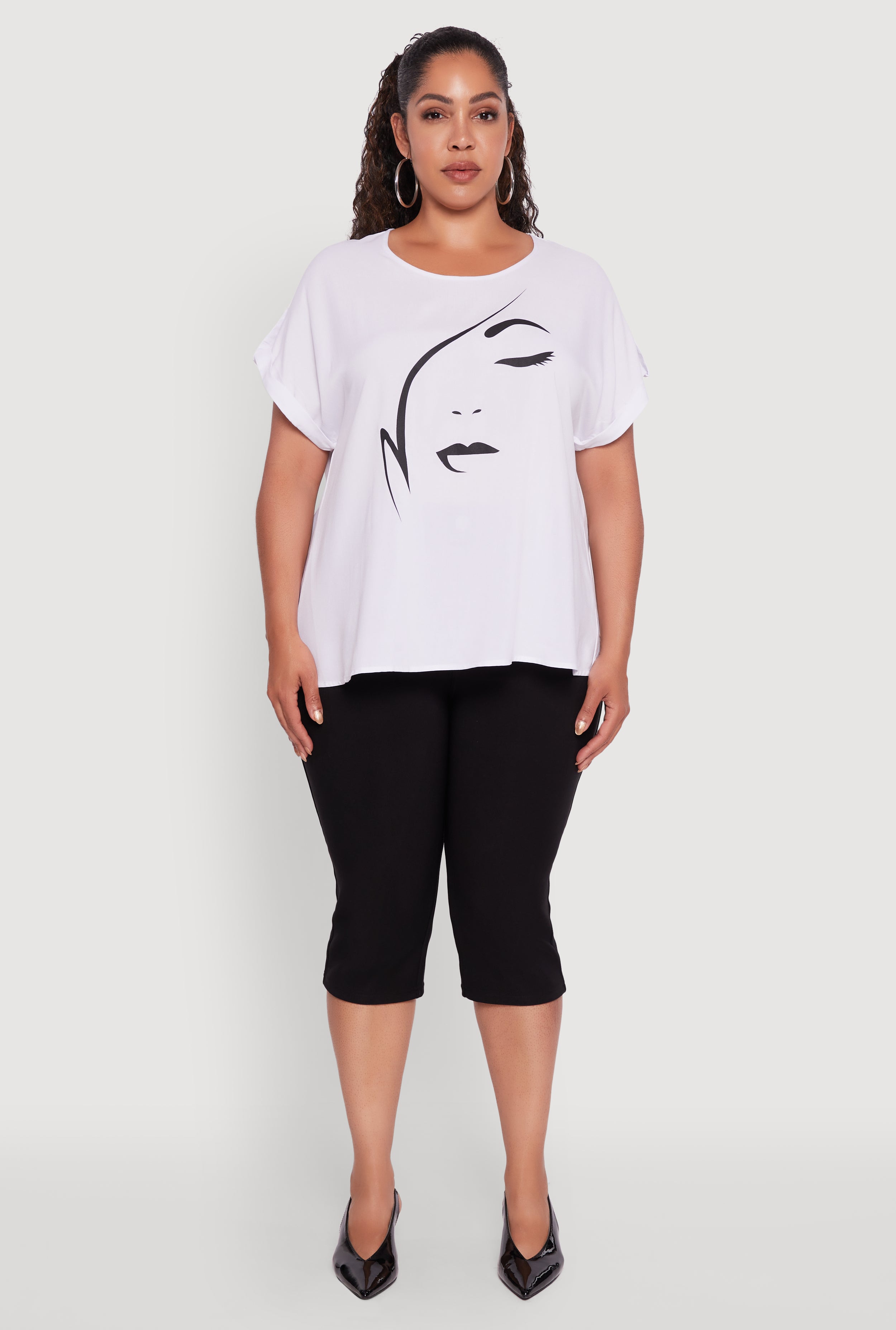 Step up your casual style game with the Plus Size Abstract Face Graphic Tabbed Sleeve Tee. This classic fit tee brings a fresh artistic vibe to your everyday look with its bold abstract face print. Designed with comfy short tabbed sleeves and a timeless crew neck, it’s perfect for those who want to stay effortlessly cool and confident all day long. Whether you’re out with friends or chilling at home, this tee has your back and your style covered.