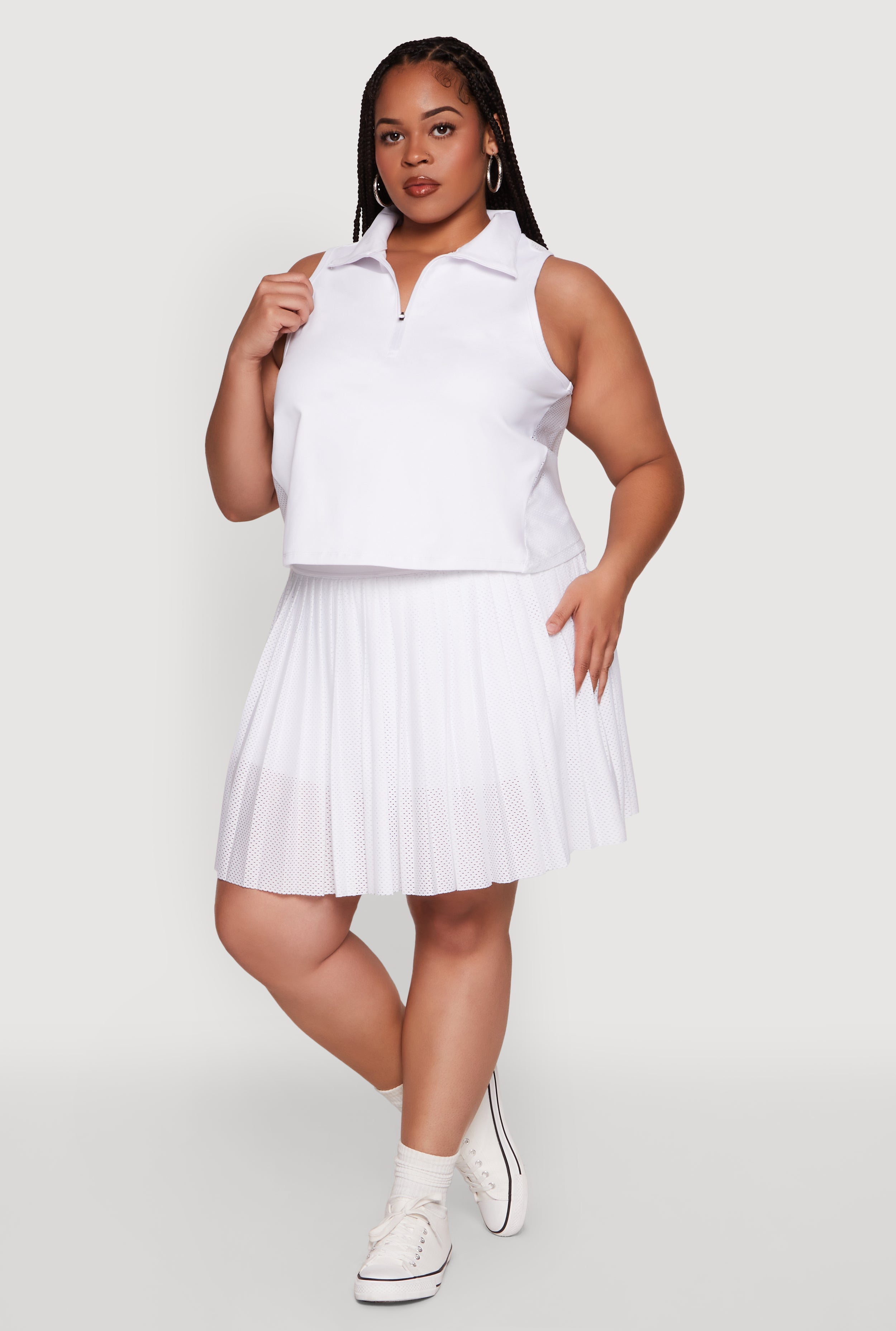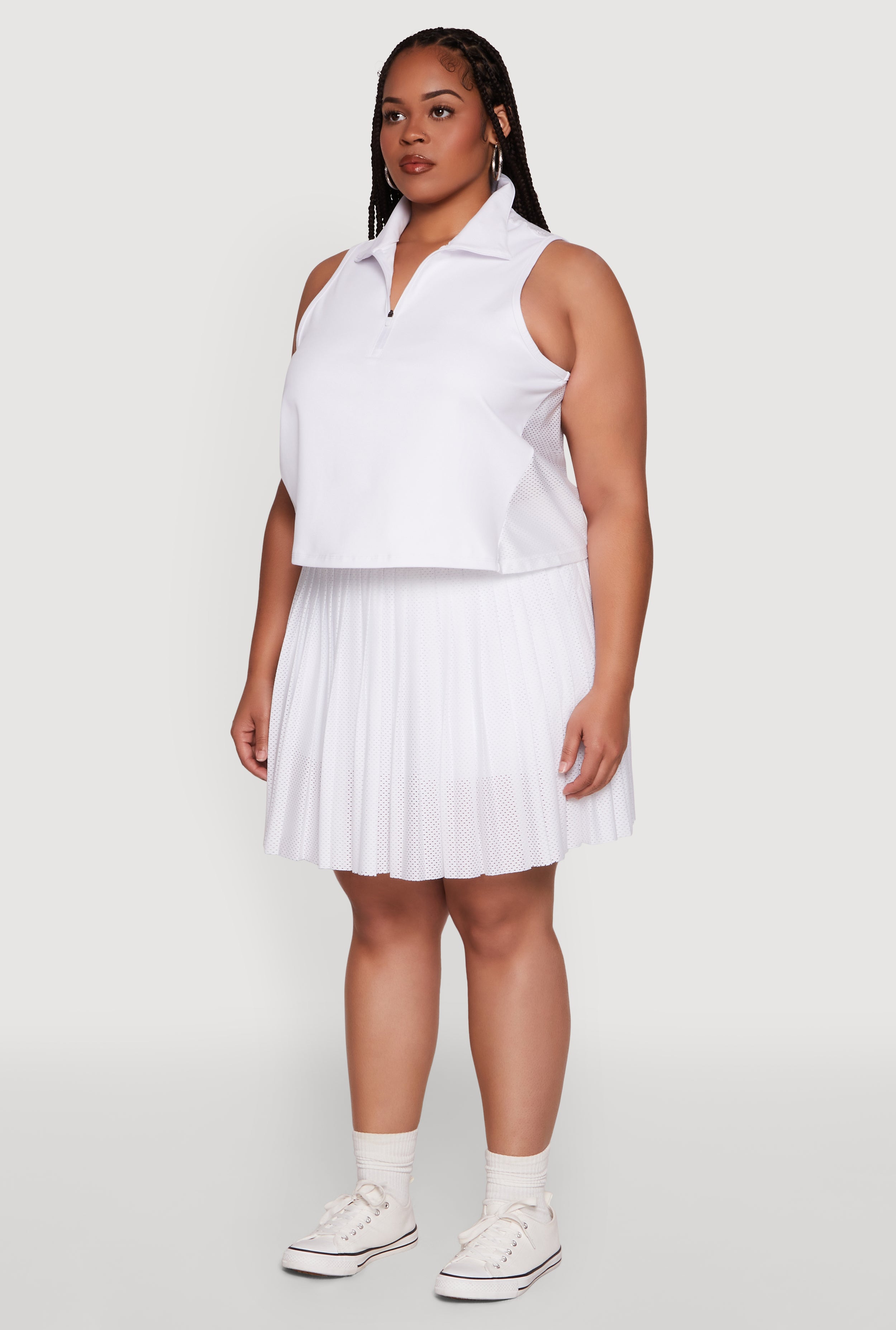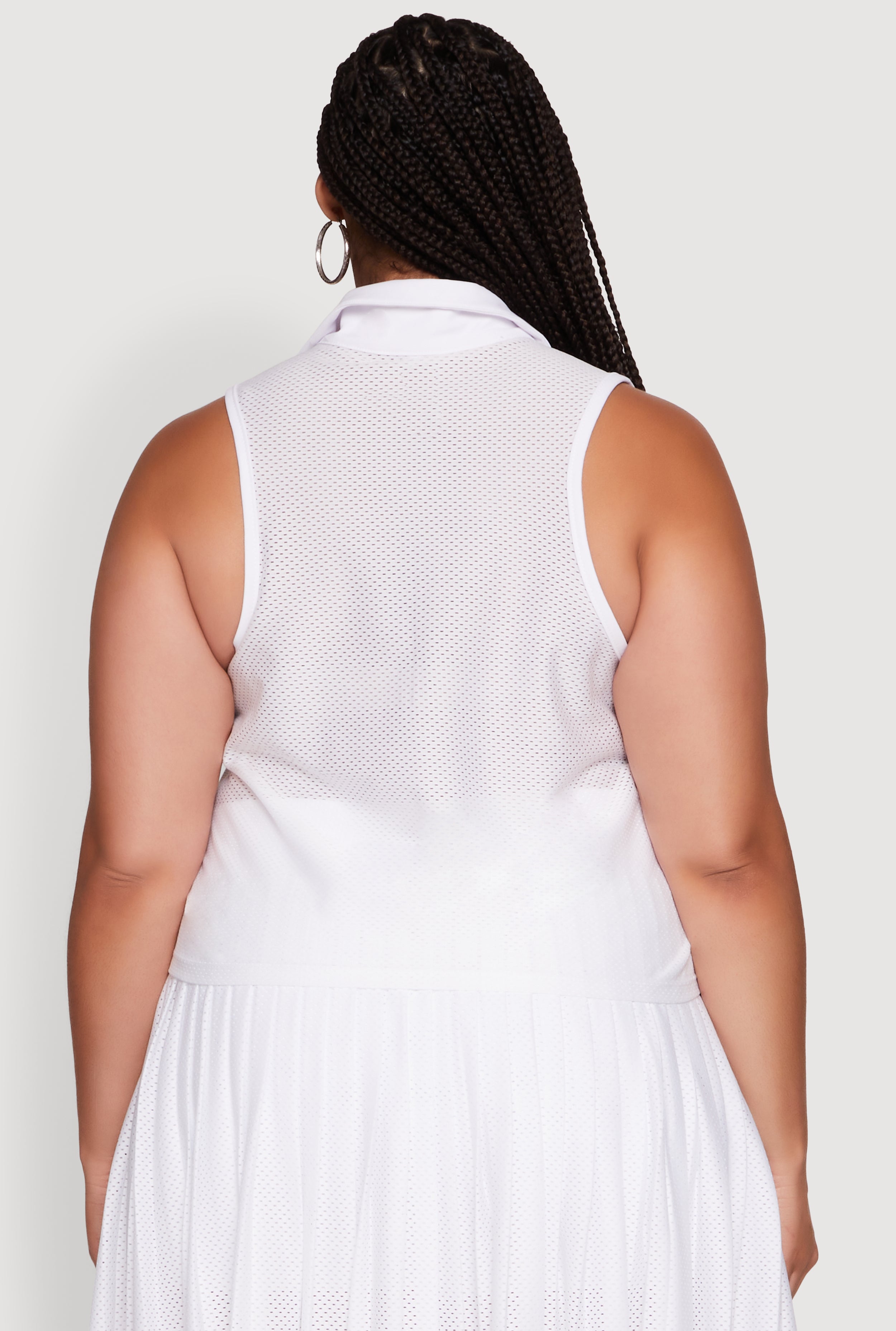 Stay cool and confident during your active days with our Plus Size Active Racerback Jersey Mesh Back Polo Shirt. Designed for comfort and style, this sleeveless polo features a classic fit that never goes out of fashion. The breathable jersey mesh back keeps you feeling fresh, whether you're hitting the gym or running errands. With its timeless silhouette and cropped hem, this top is a versatile addition to your wardrobe that effortlessly combines sporty chic with everyday comfort. Perfect for those who want to look good while staying active, this polo is your new go-to for a laid-back yet stylish vibe.