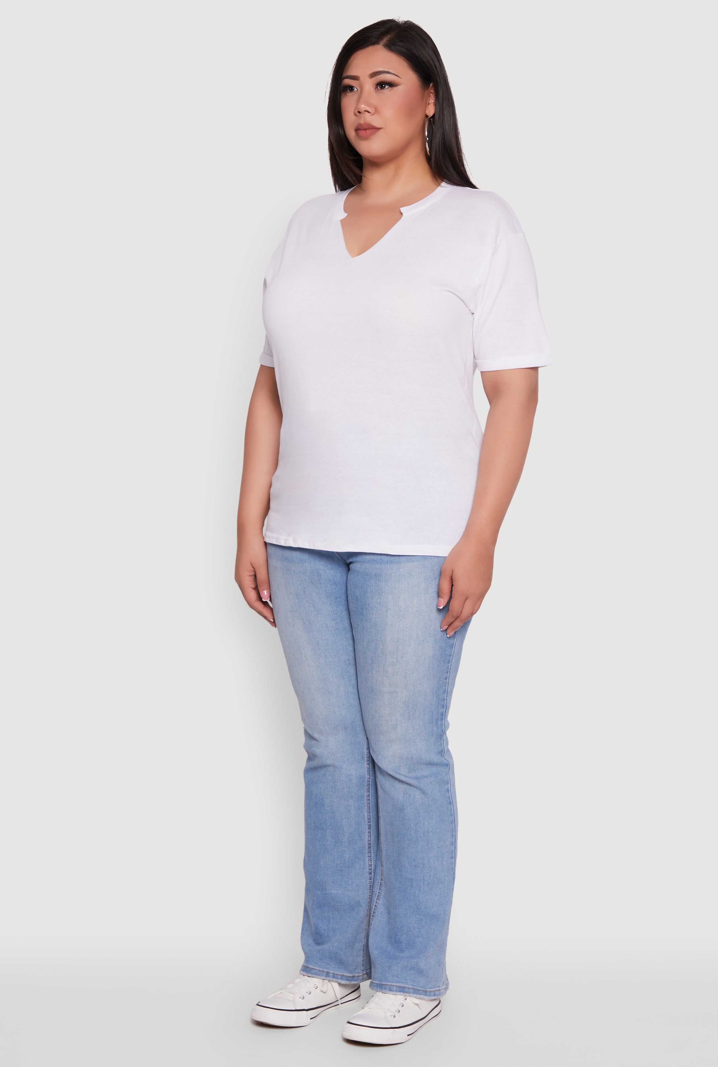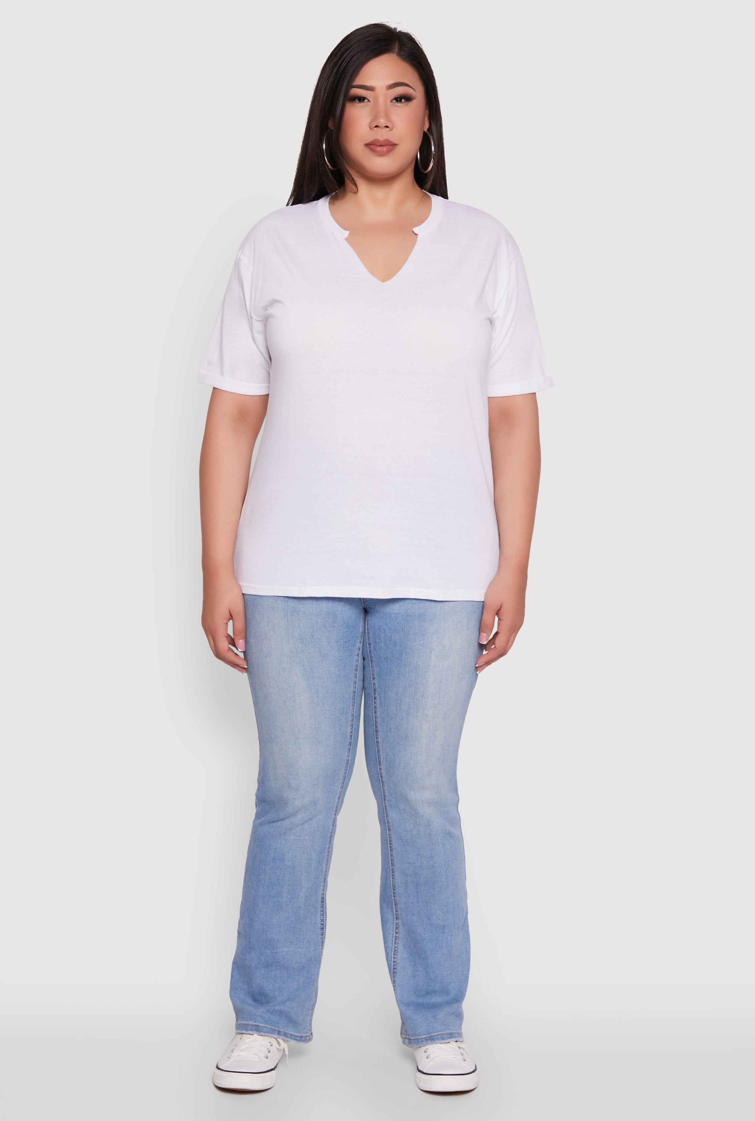 Meet your new everyday essential: the Plus Size Basic Fixed Cuff Notch Neck Tee. Designed with a classic fit that flatters every curve, this tee brings effortless style and comfort to your casual wardrobe. The notch neck adds a subtle twist to the simple silhouette, while fixed cuffs give a polished edge to your short sleeves. Whether you’re running errands or catching up with friends, this tee is your go-to for looking cool and feeling comfy without breaking the bank.