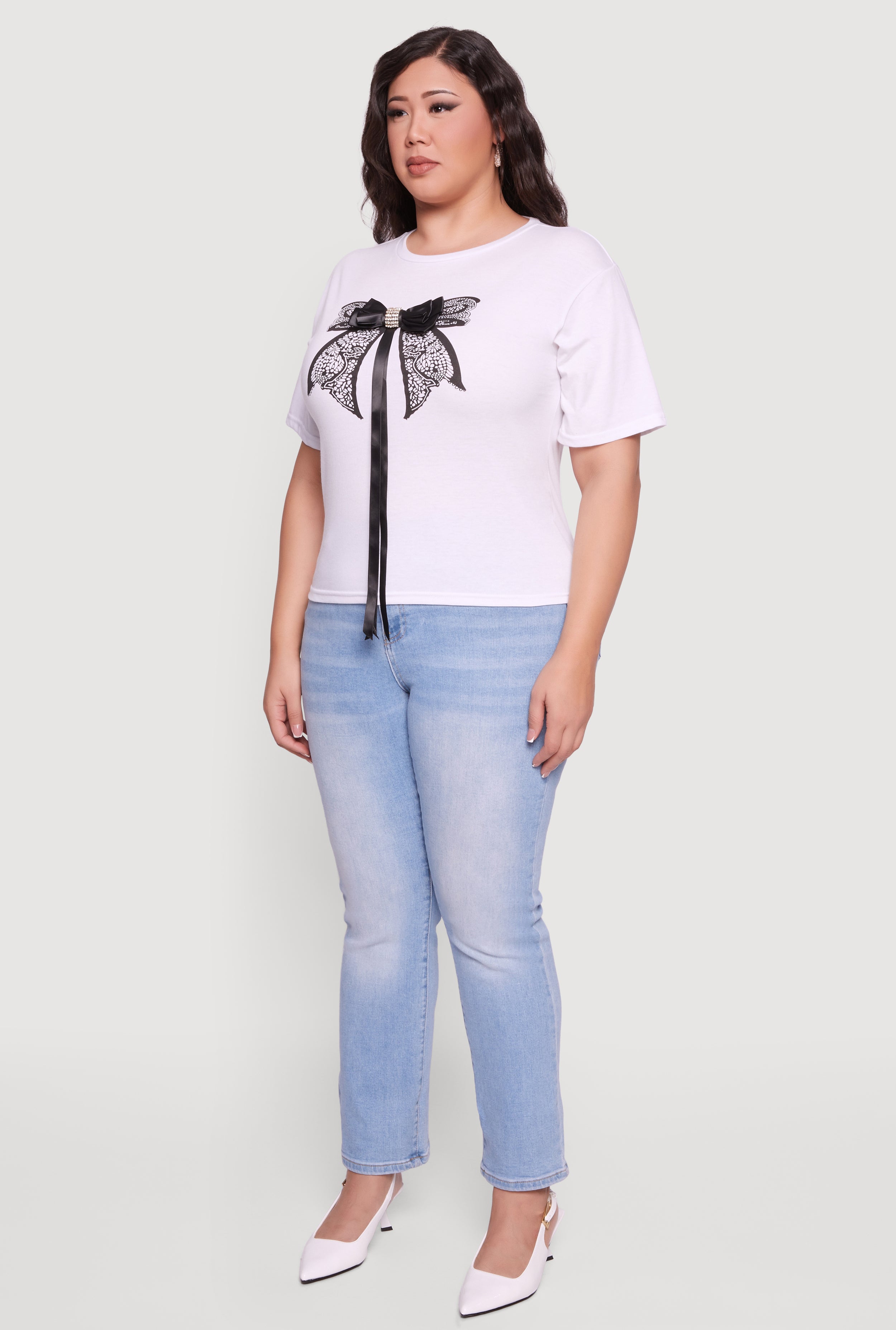 Step up your casual game with this Plus Size Bow Detail Short Sleeve Tee. Designed with a classic fit and a flattering crew neck, it’s the perfect blend of comfort and style. The standout bow detail adds a playful touch that makes this tee anything but basic. Whether you’re running errands or hanging out with friends, this tee keeps your look effortlessly cool and cute.