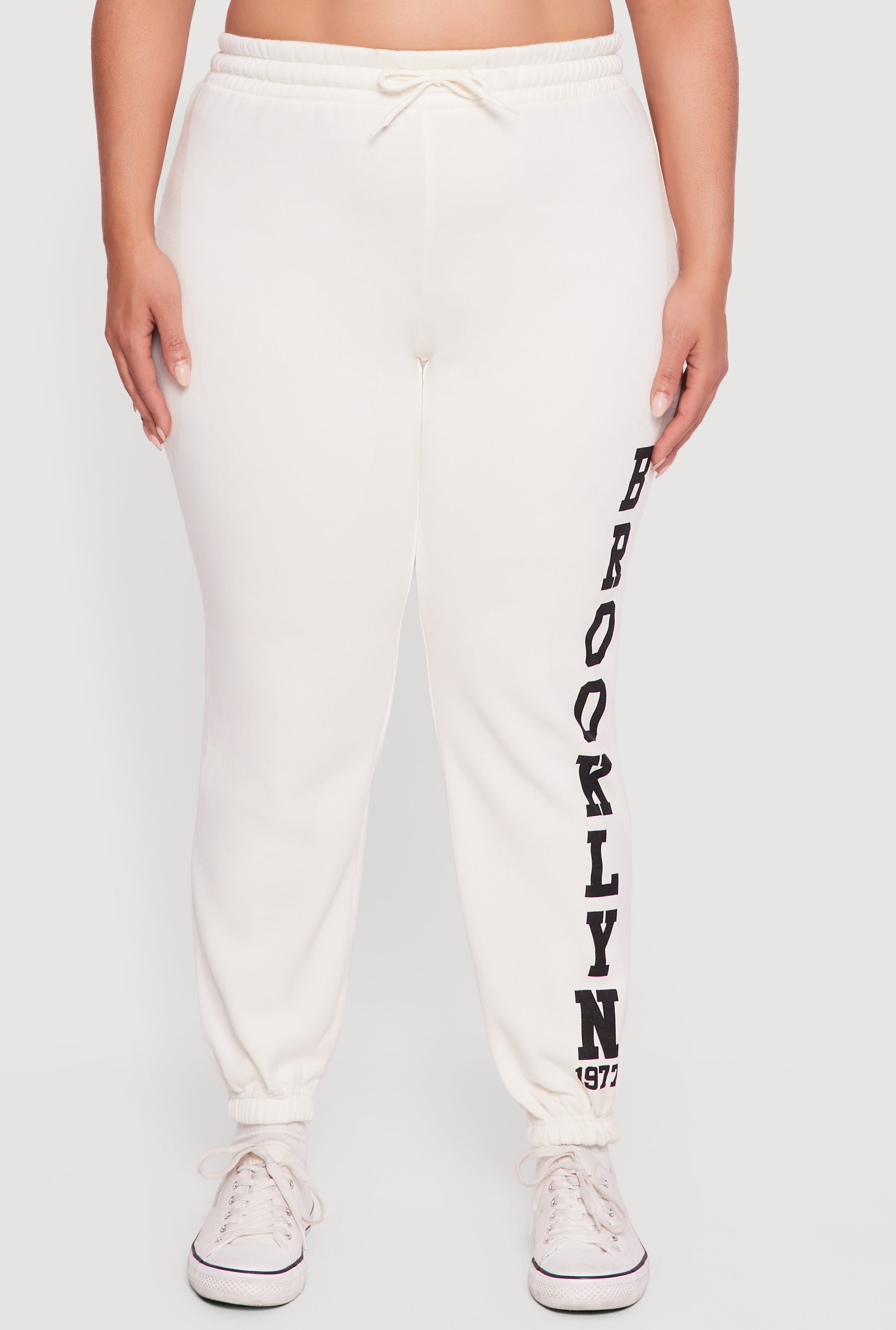 Step into cozy vibes with the Plus Size Brooklyn 1977 Sweatpants, your new go-to for casual days and chill nights. These high-waisted, fleece-lined sweatpants feature a trendy Brooklyn 1977 graphic that adds a cool, vintage touch to your laid-back look. The tapered ankle cut and relaxed fit make them perfect for lounging or running errands in style, while the adjustable drawstring waist ensures a comfy, custom fit every time.