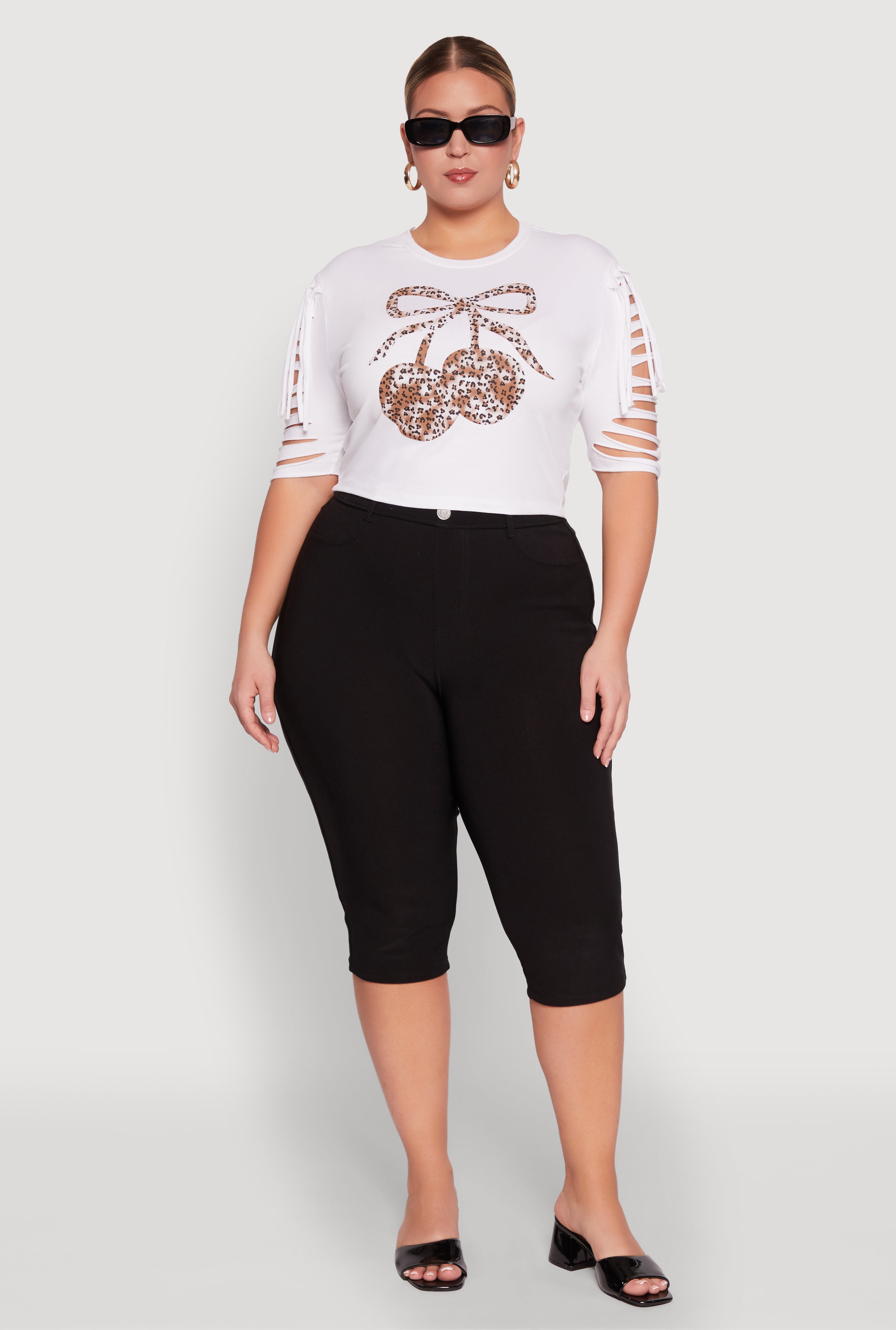 Turn heads and showcase your bold style with our Plus Size Cherry Animal Print Crop Top. Featuring a playful cherry print and trendy slashed sleeves, this top combines fun and fashion effortlessly. Its classic fit and cropped hem make it a versatile addition to your wardrobe, perfect for mixing and matching with your favorite high-waisted pieces. Whether you're out with friends or vibing at a festival, this top is your new go-to for effortless cool.