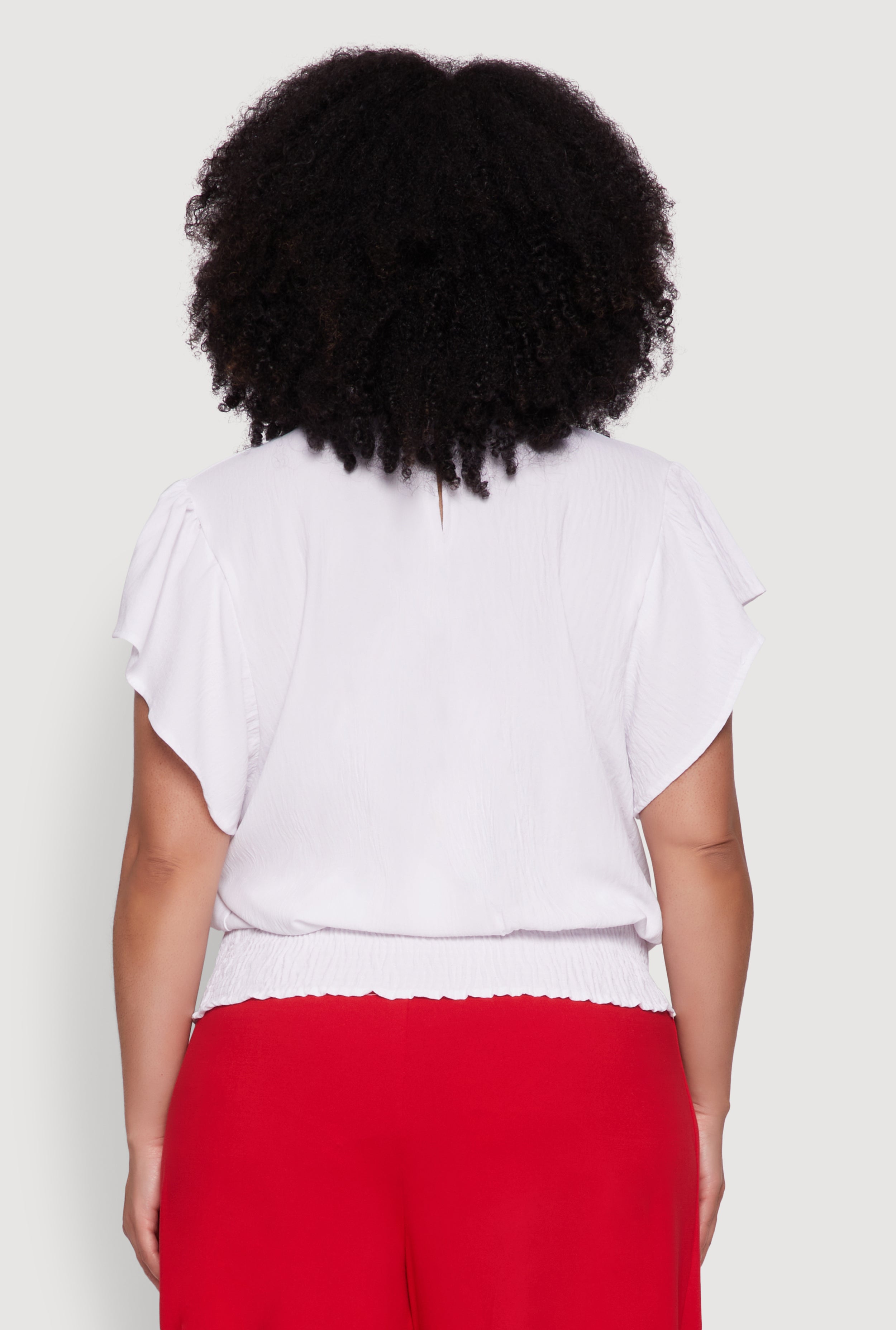 Elevate your wardrobe with our Plus Size Chic Crepe Knit Flutter Sleeves Mock Neck Blouse—where effortless style meets comfort. Designed for the modern woman who loves to stand out, this blouse features a timeless silhouette with playful flutter sleeves and a sleek mock neckline. Perfect for dressing up or down, it’s your new go-to for a chic, confident look that’s as versatile as you are.
