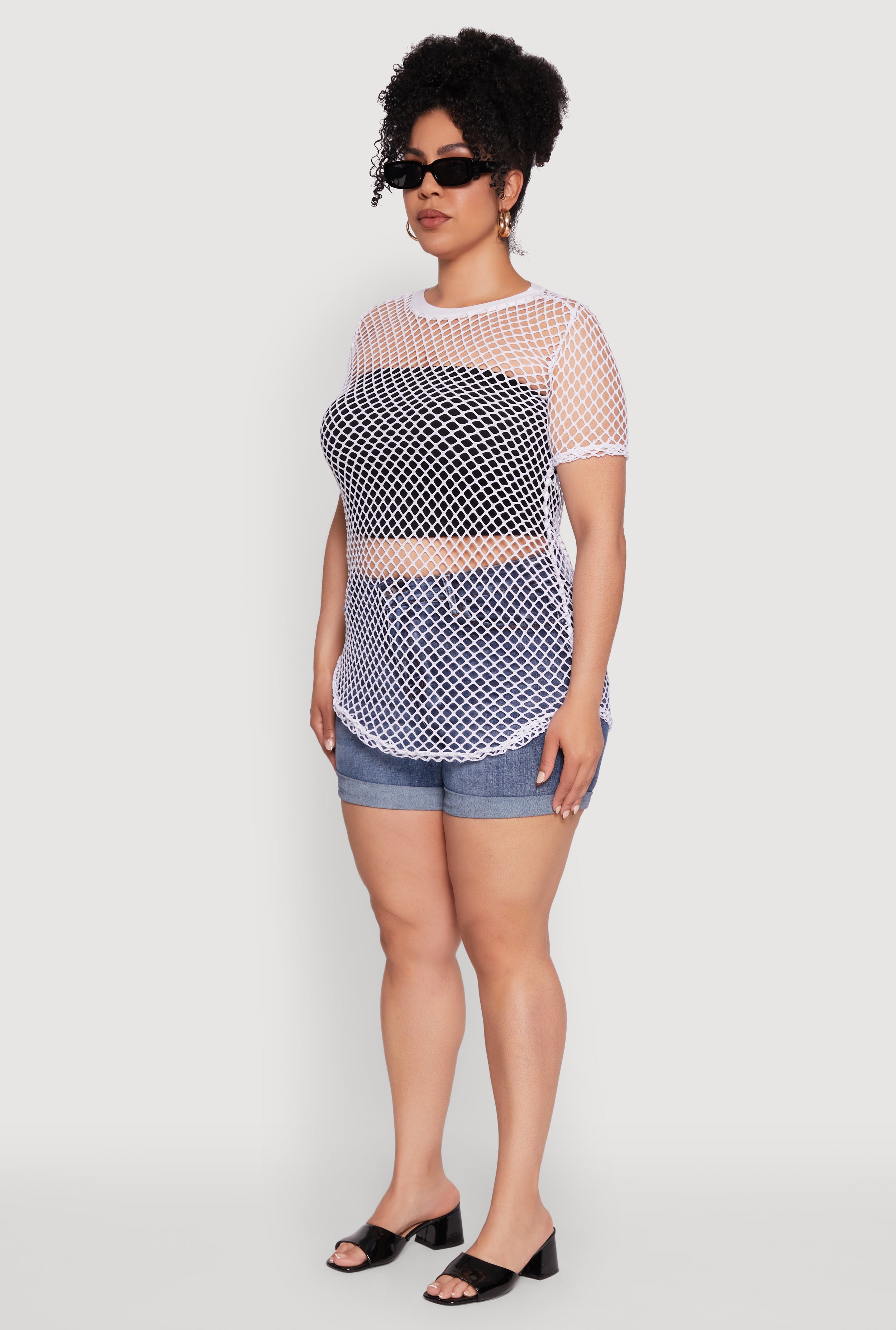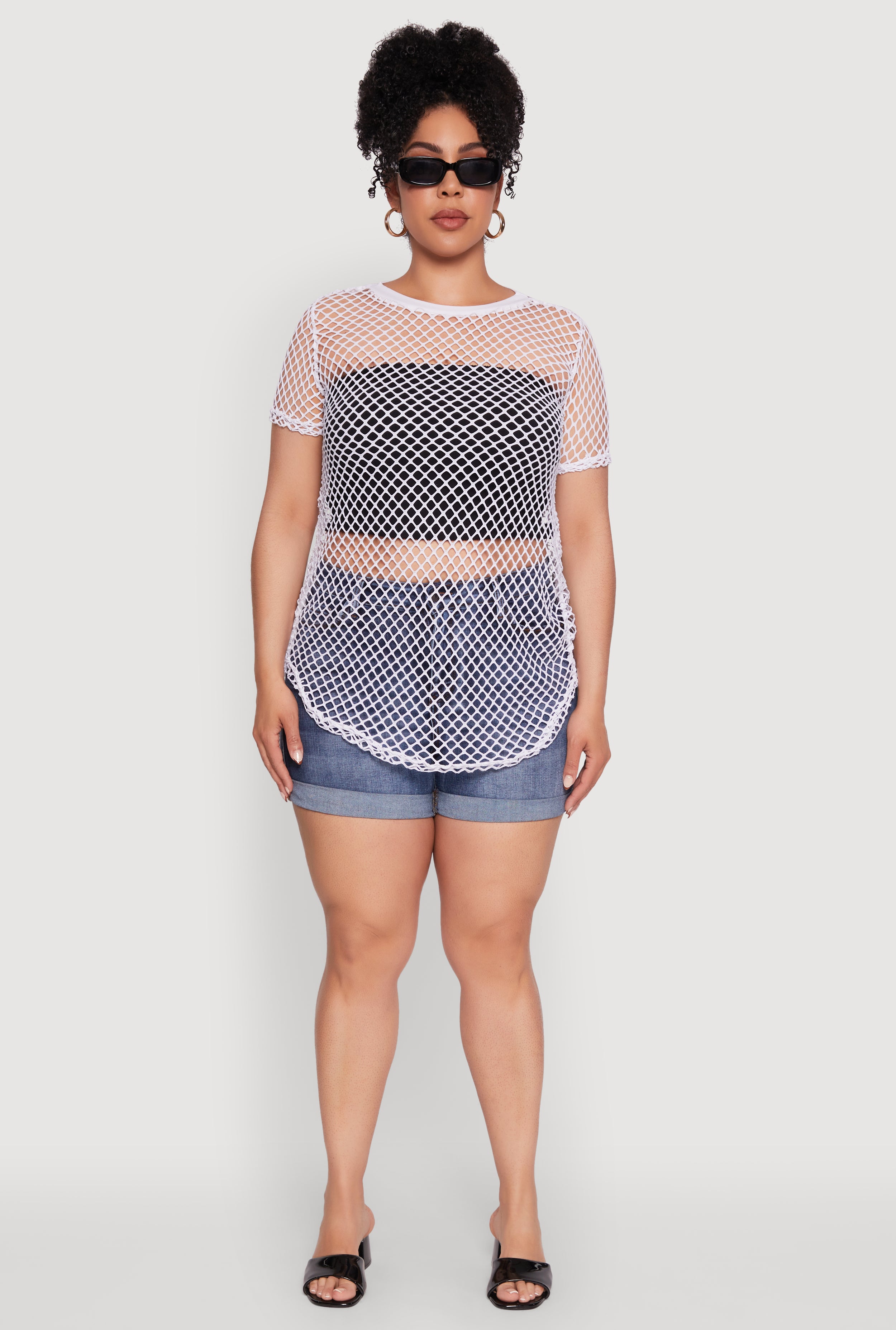Discover the perfect blend of edgy and effortless with our Plus Size Chic Fishnet Crew Neck Tee. Designed for those who love to stand out, this sheer fishnet top adds a daring touch to any outfit. Whether you're layering it under your favorite jacket or rocking it solo for a bold statement, this classic fit tee is your new go-to for everyday style with a twist. Its timeless silhouette and comfy crew neckline make it versatile enough for any occasion, all while keeping you feeling confident and chic.
