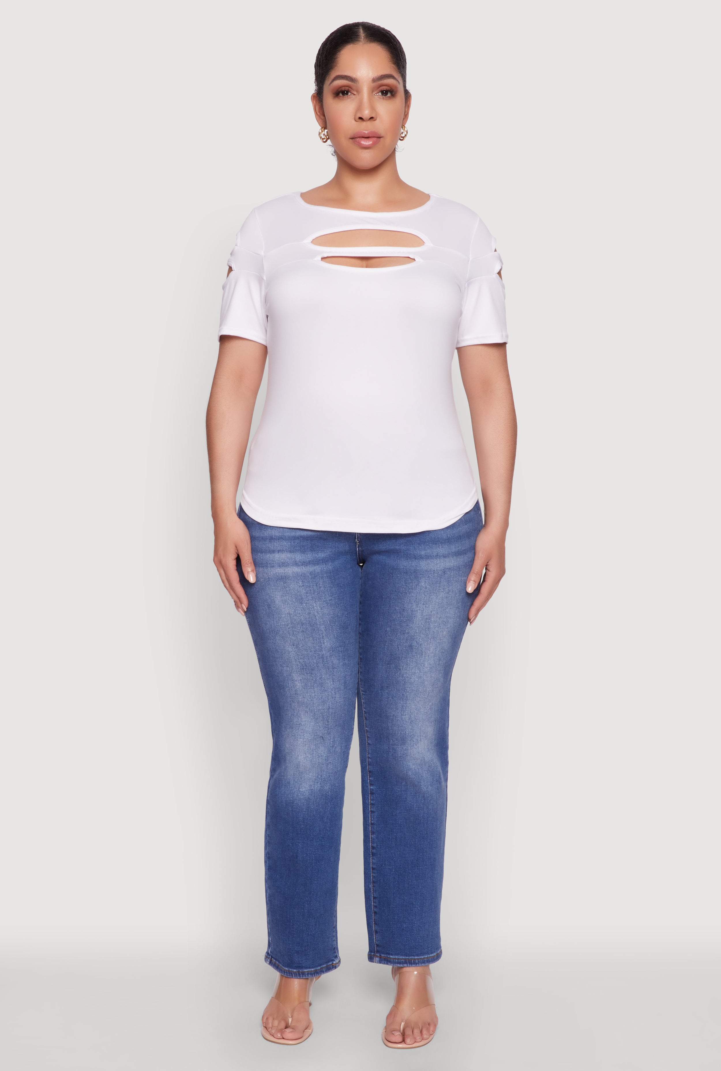 Upgrade your wardrobe with the Plus Size Cut Out Crew Neck Tee, the perfect blend of comfort and style for your everyday look. Featuring a classic fit and a trendy keyhole detail, this tee adds just the right touch of flair to your casual outfits. Whether you're heading out for a deal or just want to stay cool and chic, this top is your new go-to. Embrace effortless fashion that fits your vibe and makes you feel confident all day long.
