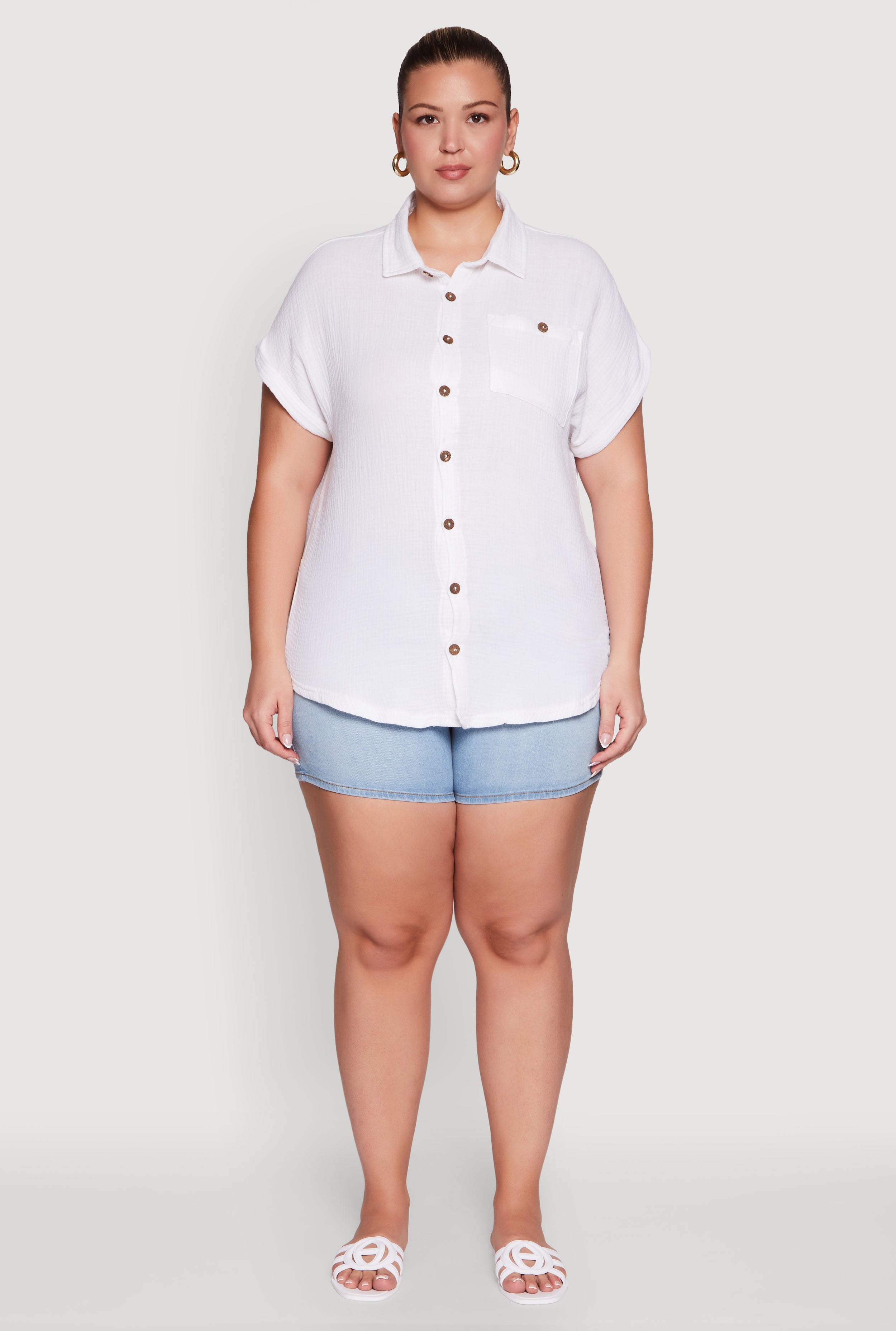 Step into effortless style with the Plus Size Dolman Sleeve Classic Button Front Shirt. This timeless piece combines a flattering classic fit with trendy dolman short sleeves, making it your go-to for casual days or office vibes. The crisp collar and solid color keep it polished, while the easy button front adds a touch of cool confidence. Perfect for those who want comfort and style without the fuss.
