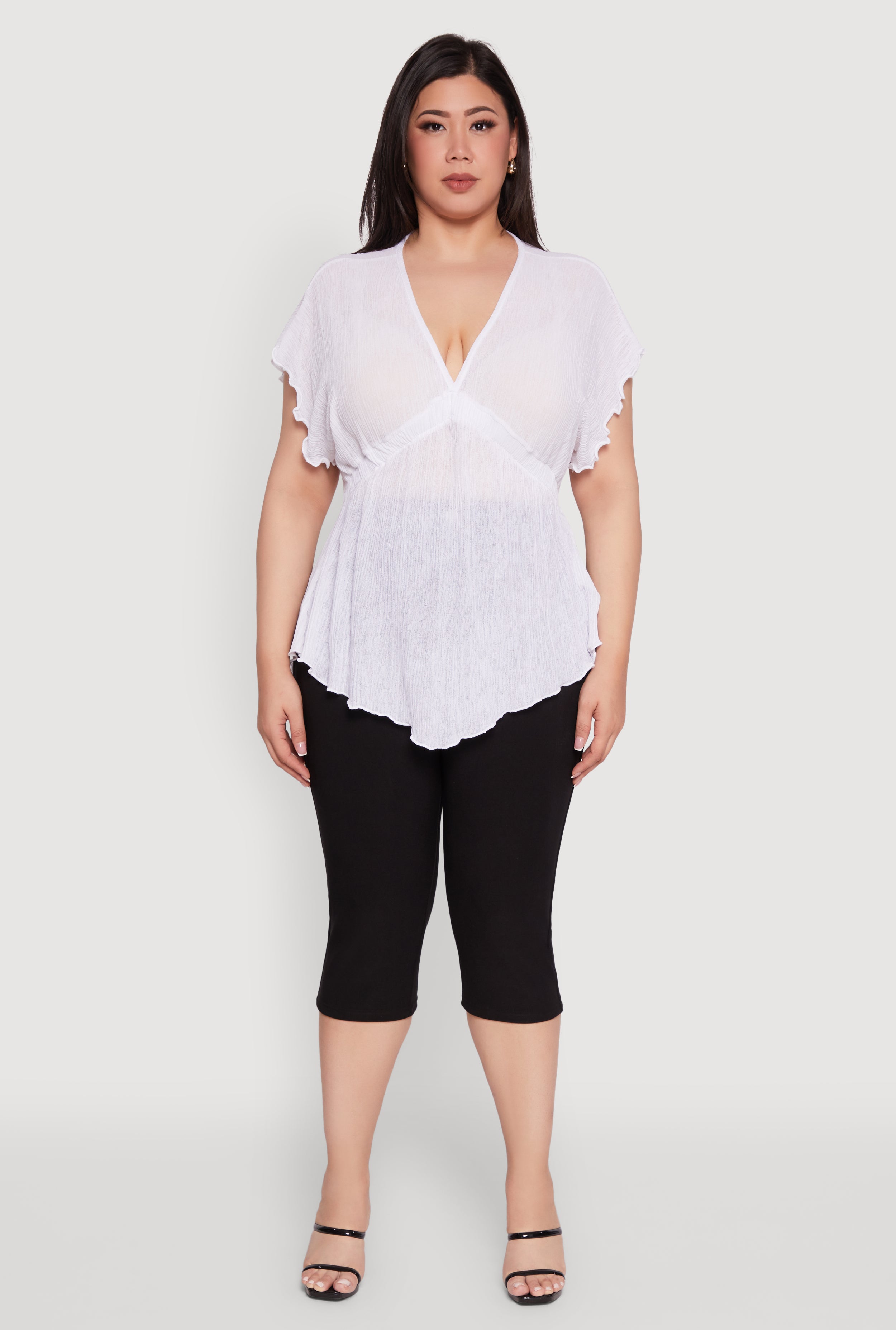 Upgrade your wardrobe with our Plus Size Dolman Sleeve Lettuce Edge Blouse, a perfect blend of comfort and chic. Featuring a classic fit and timeless silhouette, this blouse is designed to make you feel confident and stylish wherever you go. The delicate lettuce edge detail adds a playful touch, while the V-neck and dolman sleeves create a flattering silhouette. Whether you're dressing up or down, this versatile piece is a must-have for your collection. Pair it with your favorite accessories and enjoy effortless style every day.