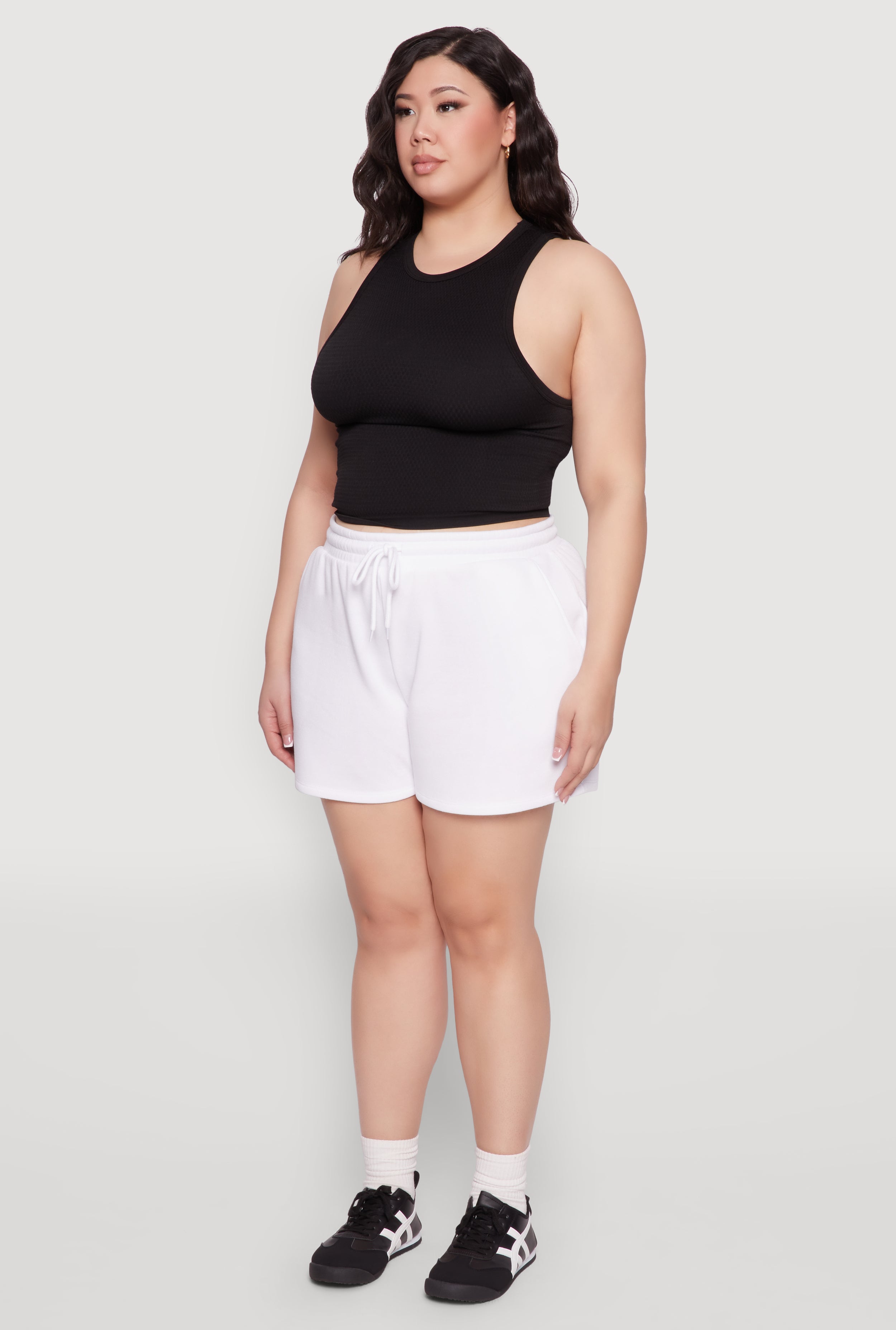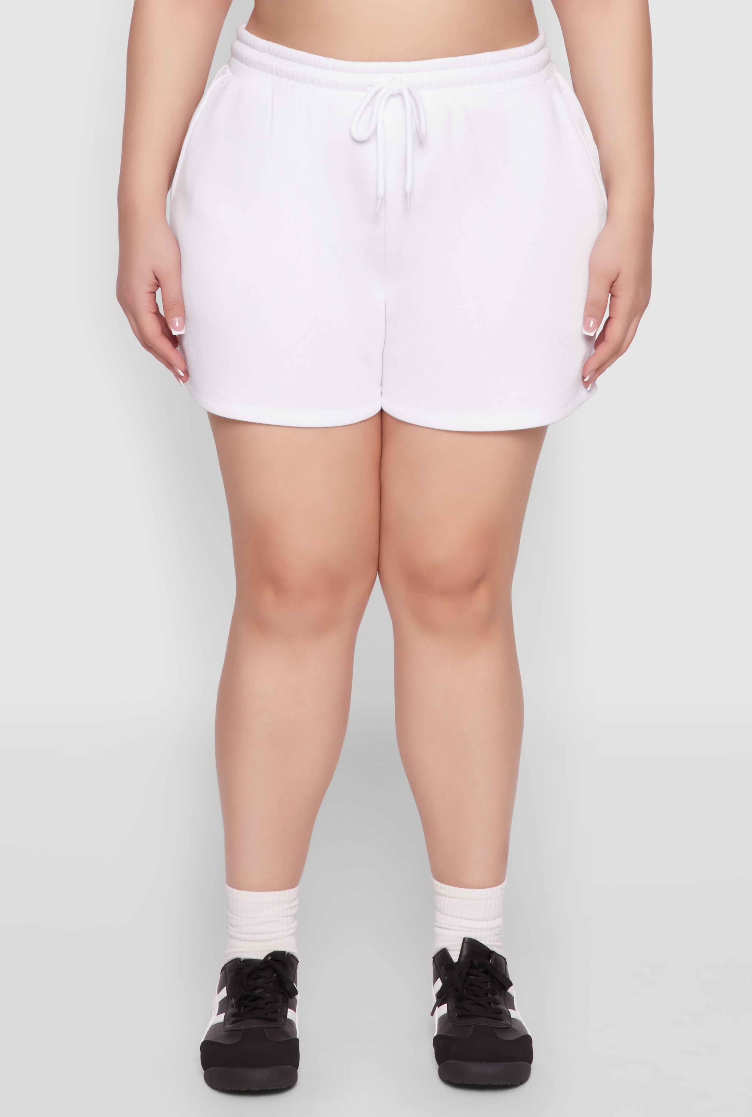 Looking for the perfect blend of comfort and style? Our Plus Size Drawstring Sweatshorts are your new go-to for activewear or just relaxing in style. Made with cozy fleece, these high-waisted sweatshorts are designed to move with you and keep you feeling confident all day long. The adjustable drawstring waist adds a personalized fit, making them as functional as they are fabulous. Whether you're hitting the gym, running errands, or lounging at home, these sweatshorts are your new best friend.