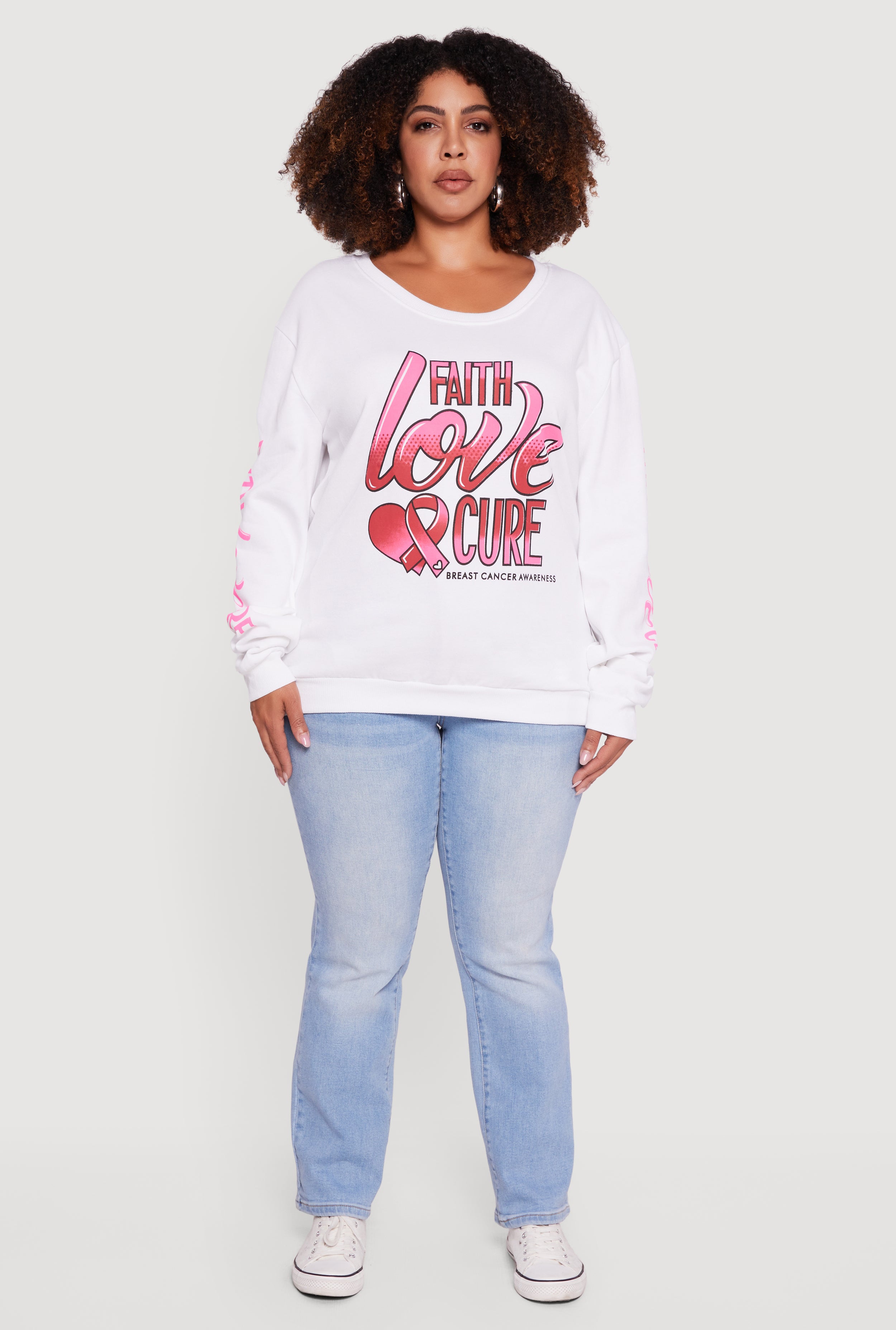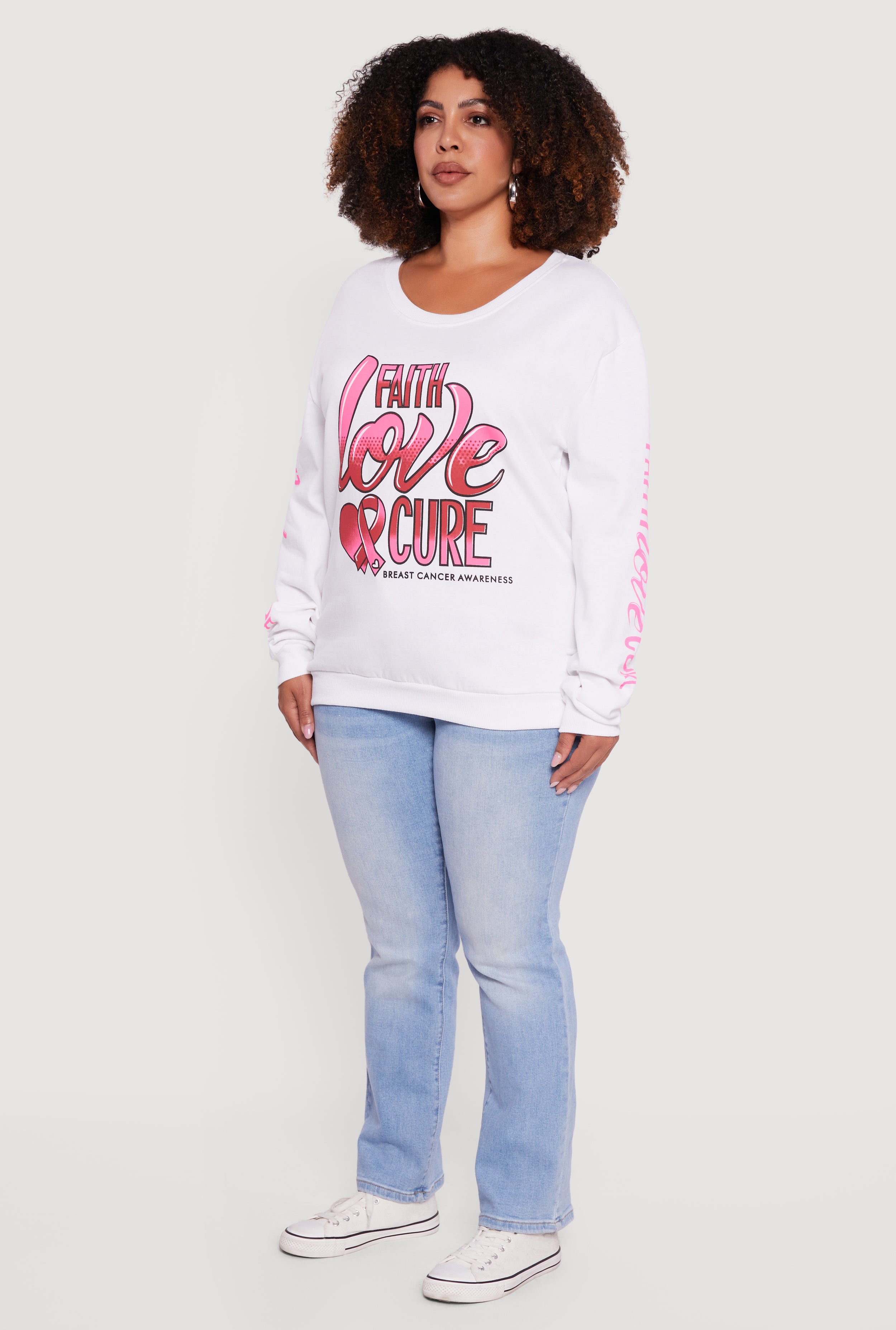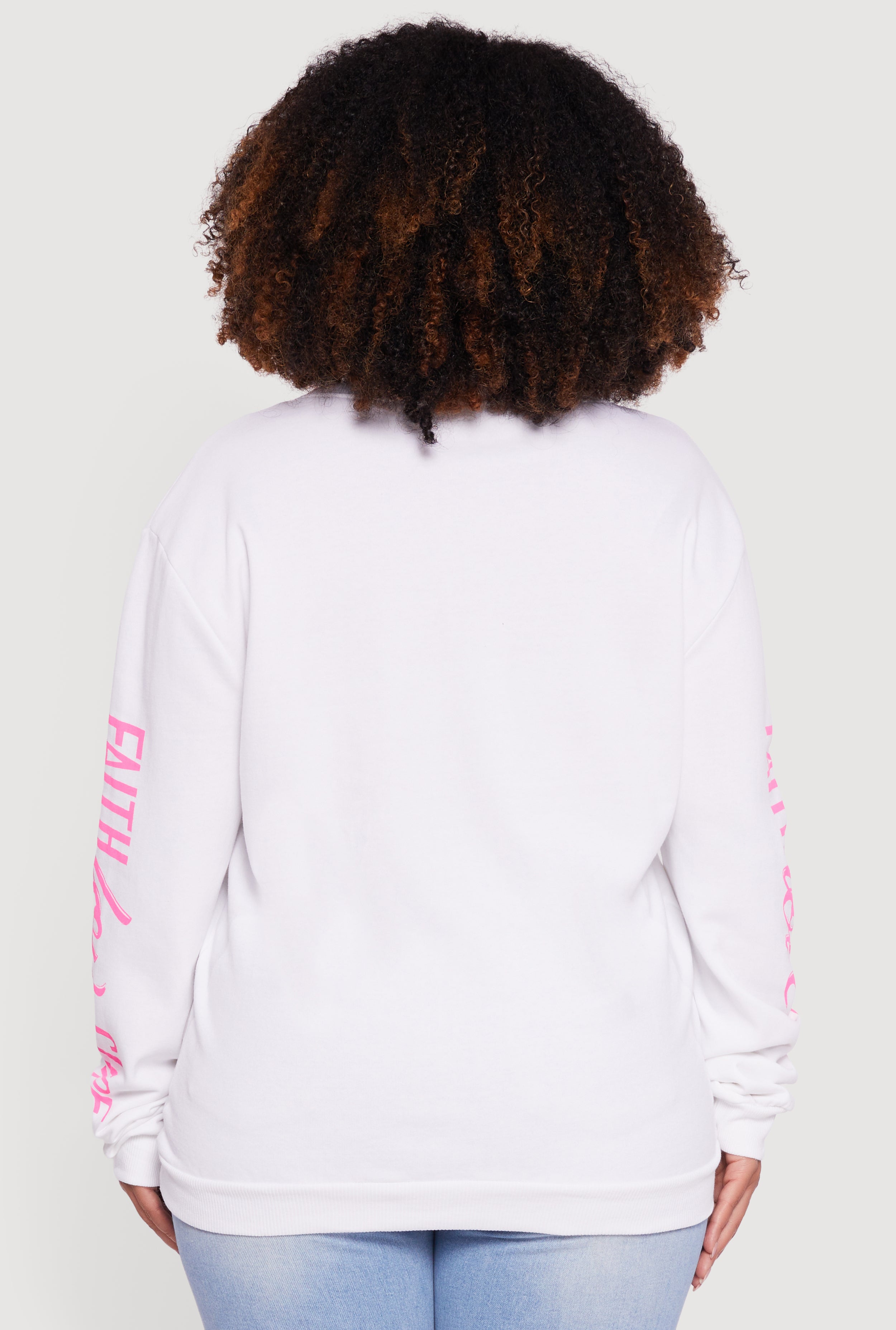 Wrap yourself in cozy vibes and meaningful style with our Plus Size Faith Love Cure Graphic Sweatshirt. This classic fit crew neck sweatshirt features a powerful breast cancer awareness graphic that speaks volumes while keeping you comfy in soft fleece. The drop shoulder design adds a relaxed, effortlessly cool touch perfect for casual days or layering up your look. Celebrate strength, love, and hope in a piece that’s as bold as you are.