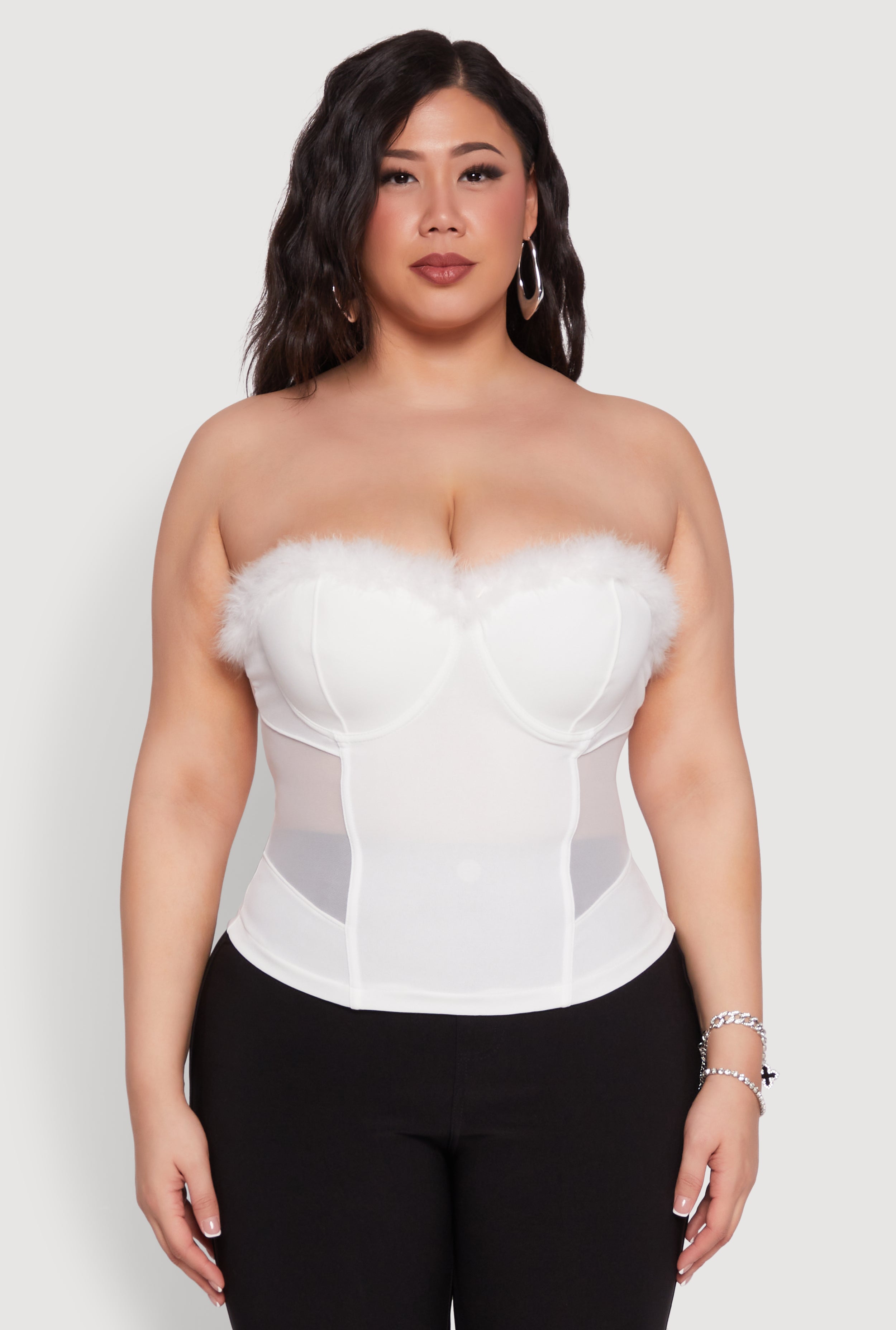 Get ready to turn heads with our Plus Size Faux Fur Sweetheart Bustier Top. This fabulous piece combines a classic fit with a timeless silhouette, perfect for adding a touch of glam to any look. Featuring a plush faux fur trim and a flattering sweetheart neckline, it’s designed to make you feel confident and fabulous. Whether you're dressing up for a night out or adding some chic flair to your everyday style, this top is your new go-to. Plus, with its versatile details like adjustable straps and a zip back, it’s as practical as it is stunning.