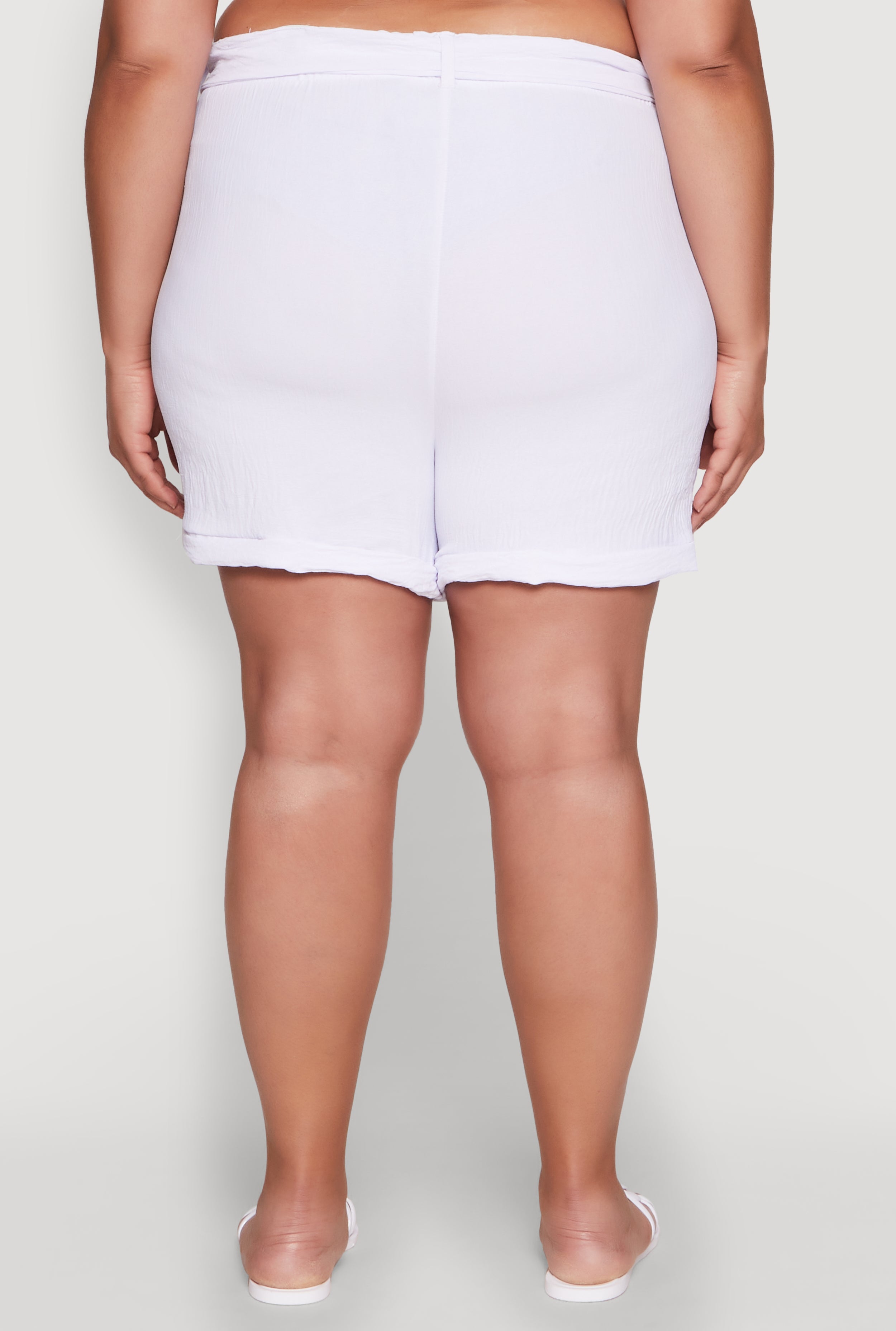 Step up your summer game with these must-have Plus Size Fixed Cuff Shorts with Tie Waist Belt. Perfect for casual outings or just lounging in style, these shorts are all about comfort and flair. The trendy fixed cuffs and adjustable tie waist give you that effortlessly chic look, while the breathable crepe knit fabric keeps you cool and comfy all day long. Whether you're running errands or hanging out with friends, these shorts are your new go-to for laid-back, fashionable vibes.