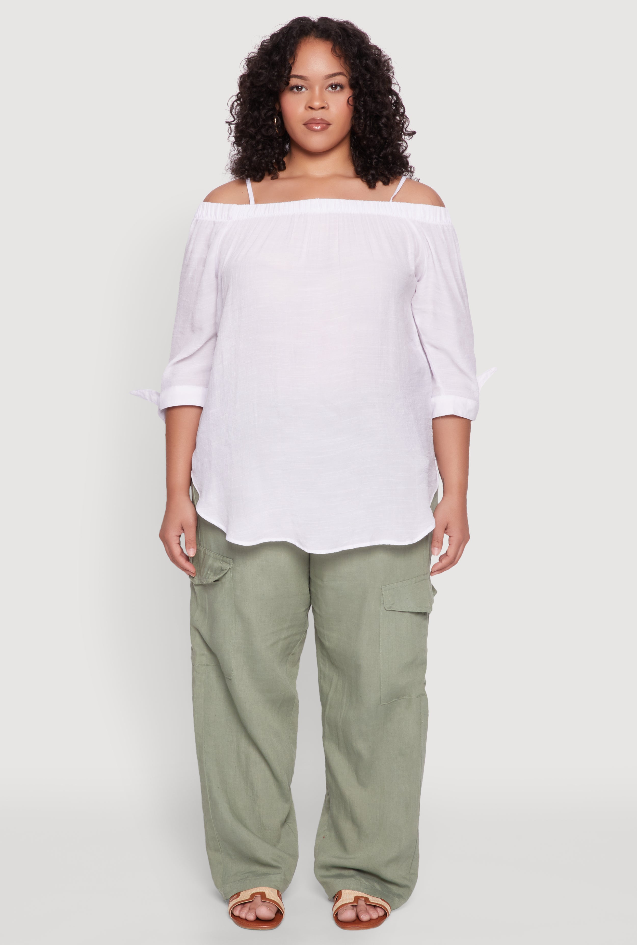 Get ready to turn heads with our Plus Size Gauze Knit Cold Shoulder Blouse. Perfect for adding a touch of effortless chic to your wardrobe, this blouse combines breathable gauze knit fabric with a trendy cold shoulder design. Its classic fit and timeless silhouette make it a versatile staple that flatters every curve. Whether you're heading out with friends or just want to elevate your everyday style, this blouse is your new go-to for comfort and confidence.