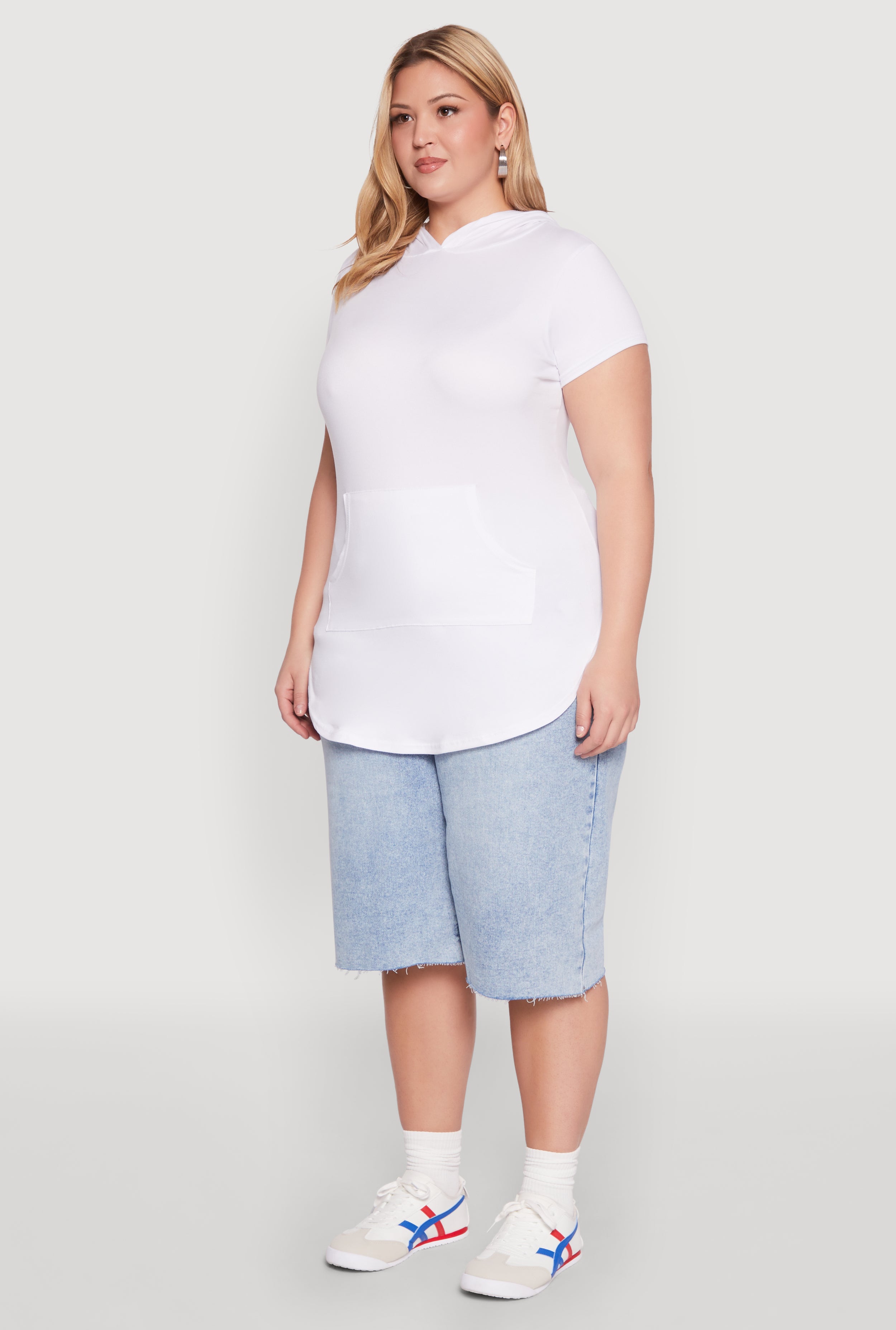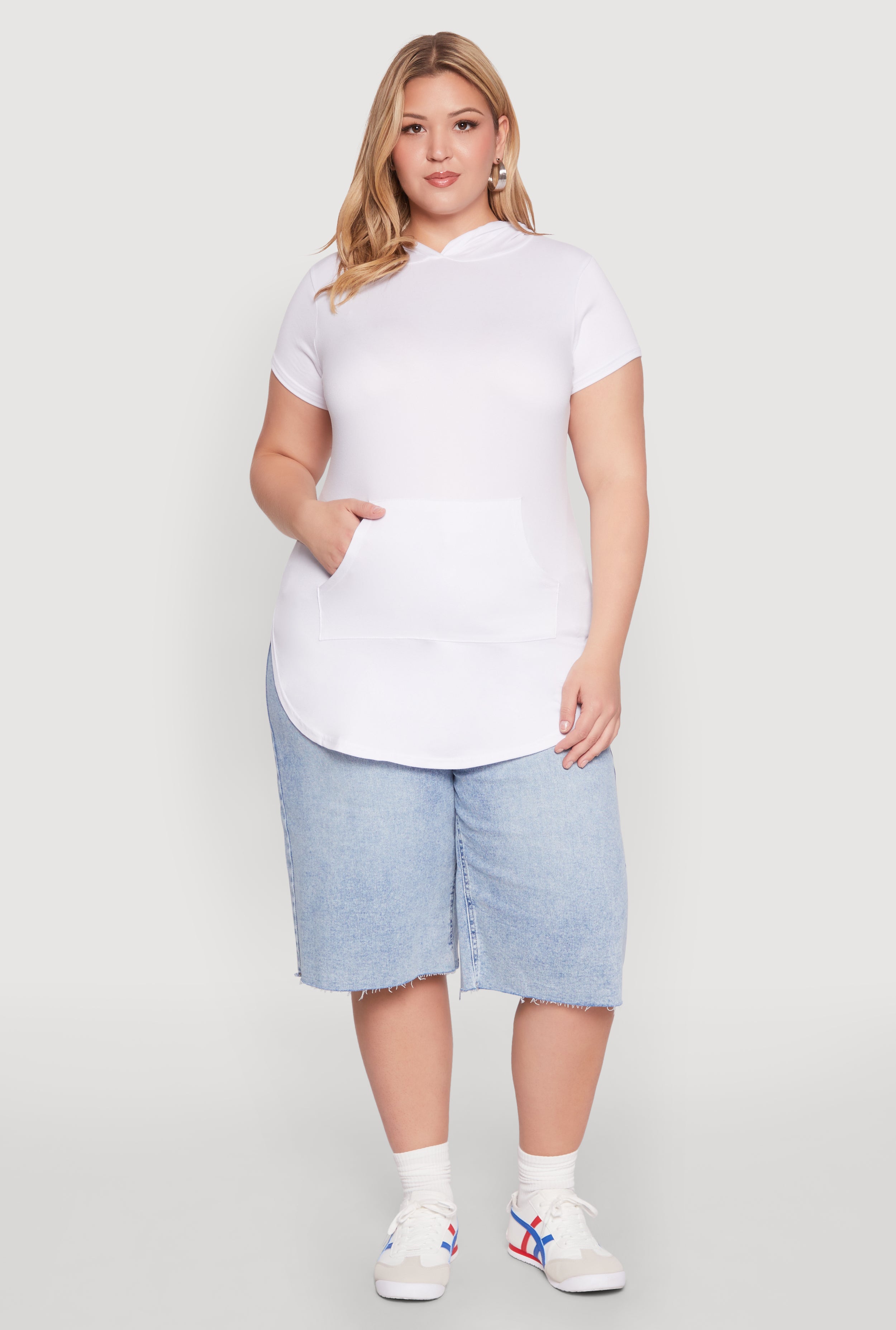 - Features a cozy hood and short sleeves for versatile styling