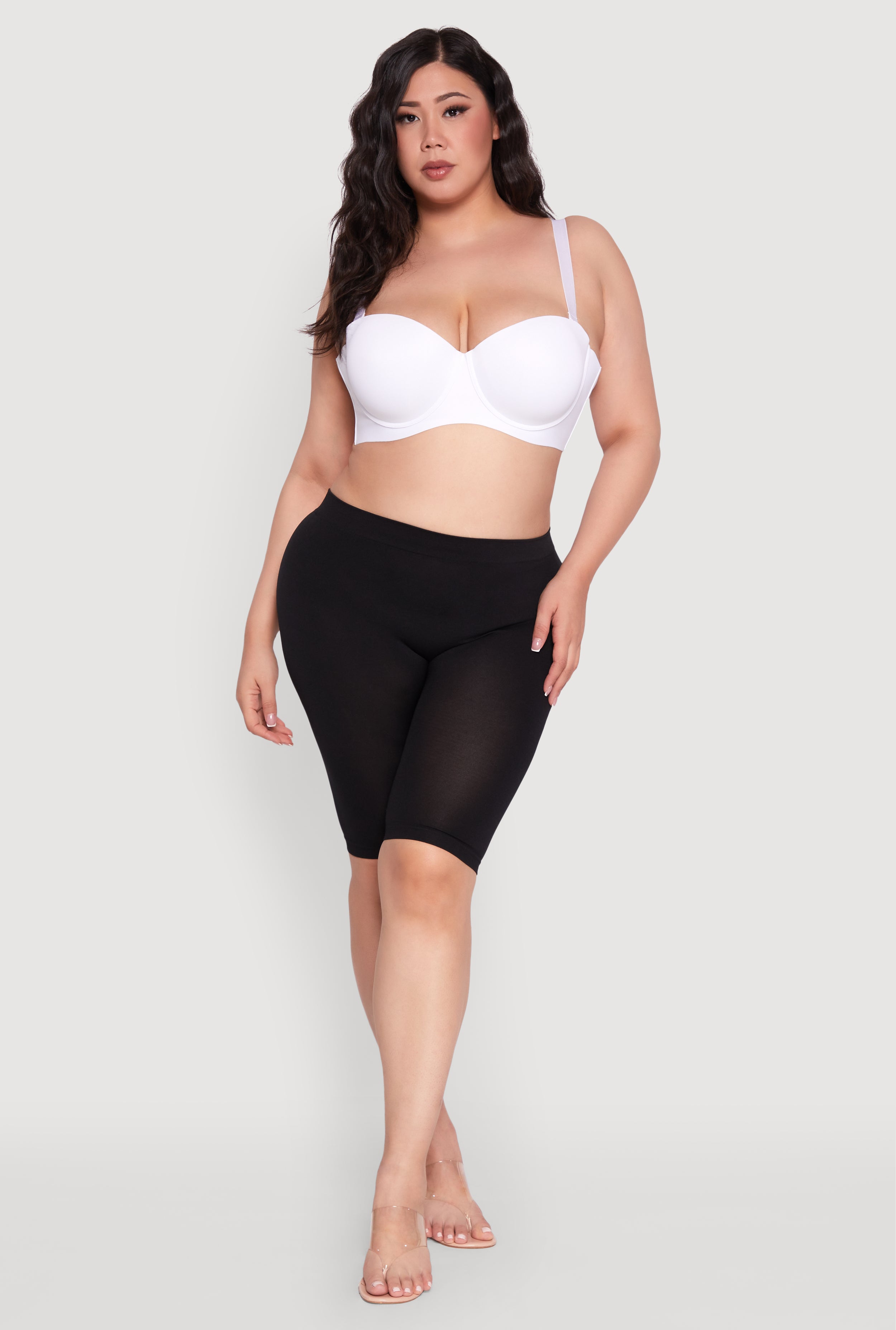A seamless balconette bra designed for plus sizes, featuring a convertible style that easily transitions from regular straps to strapless. It offers structured support with molded cups and underwire, paired with a hook and eye closure for a secure fit. This bra combines smooth lines and versatility for everyday wear or special occasions.