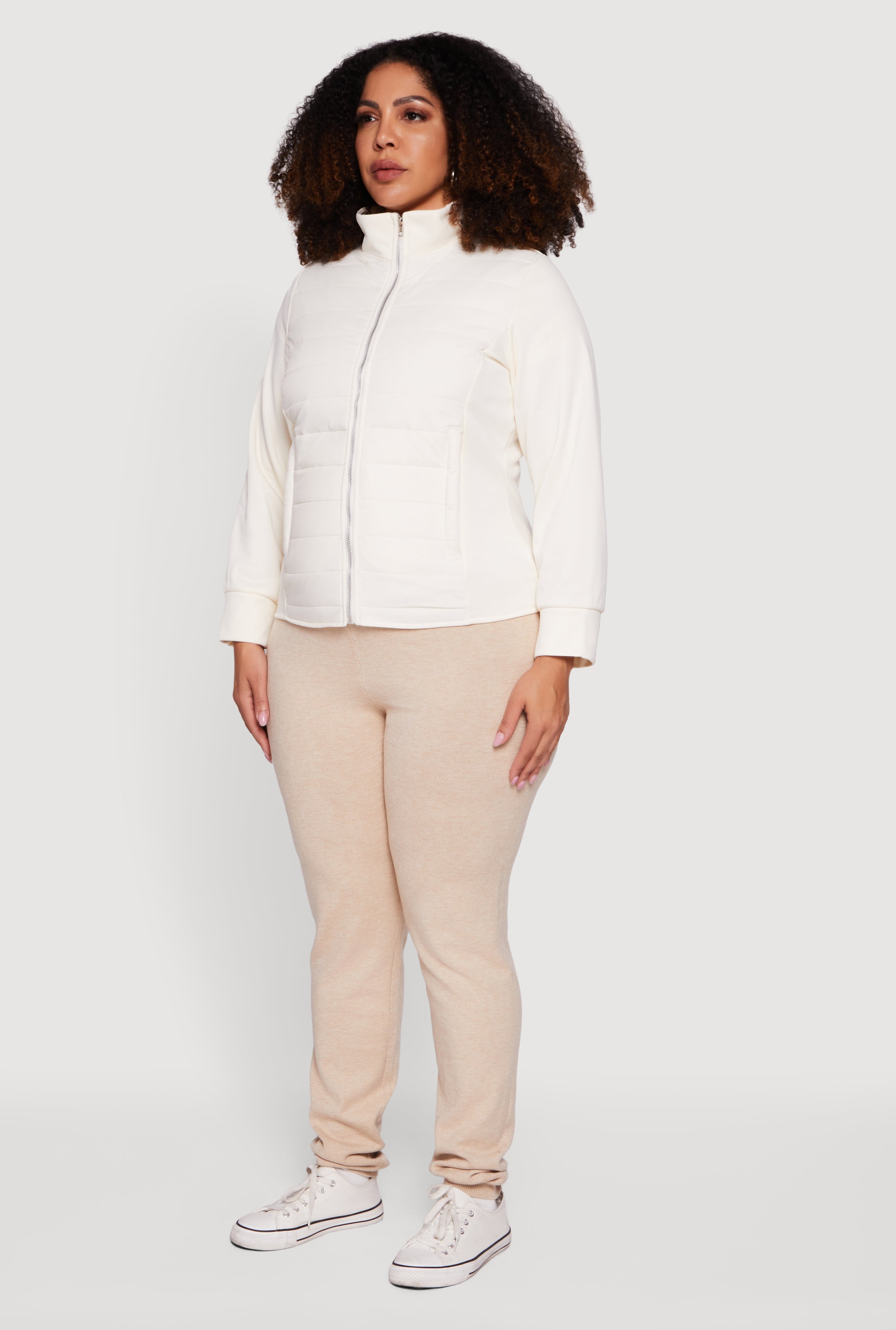 Stay cozy and stylish in this Plus Size Long Sleeve Mock Neck Zip Front Puffer Jacket. Designed to hug your curves with a flattering mock neck and a sleek zip front, this jacket is your go-to for chilly days. The soft fleece material keeps you warm without the bulk, while zip pockets add a practical touch for your essentials. Whether you’re running errands or meeting friends, this solid-colored puffer combines comfort and edge effortlessly.