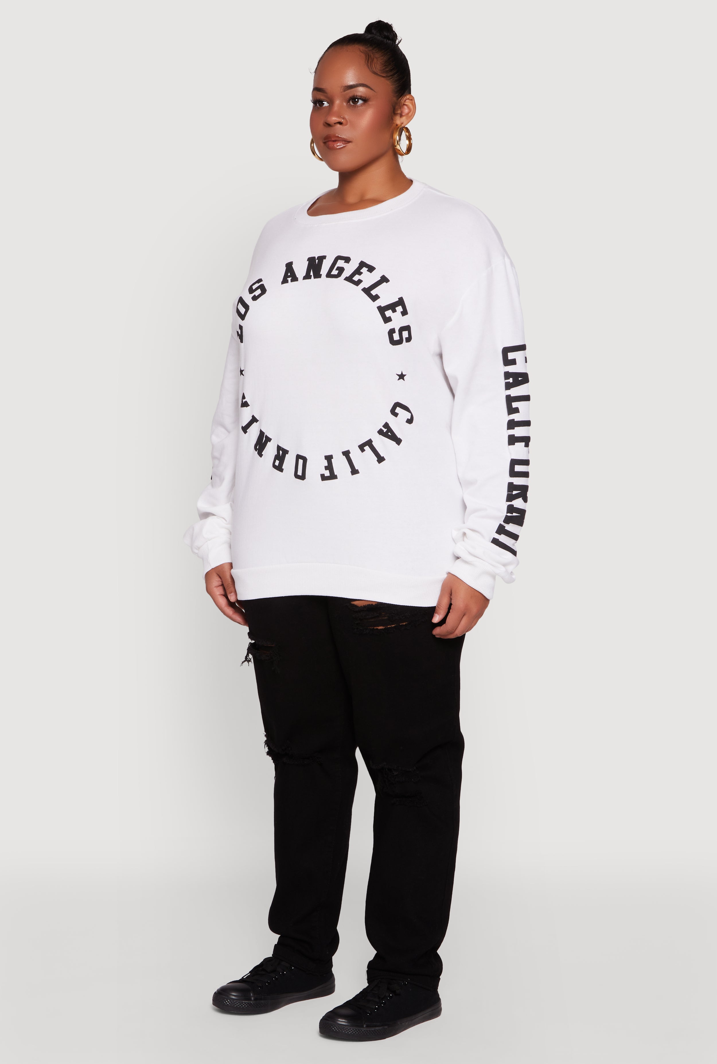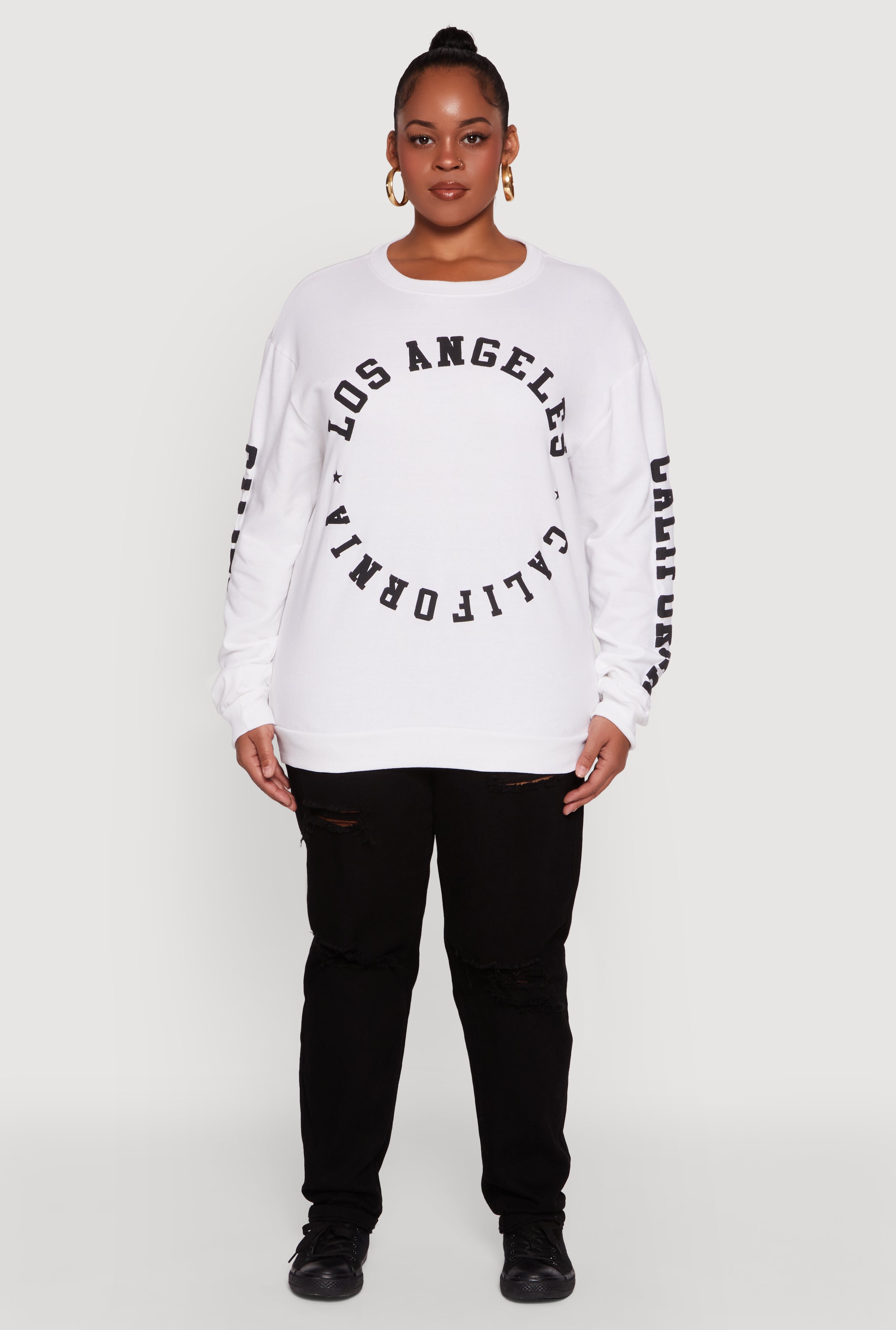 Stay cozy and show off your city pride with this Plus Size Los Angeles California Fleece Pullover Sweatshirt. Designed for ultimate comfort with a relaxed fit and soft fleece fabric, it’s your go-to for casual days and chill vibes. The classic crew neck and long sleeves make it perfect for layering or lounging, while the bold graphic print keeps your style effortlessly cool. Whether you’re running errands or kicking back at home, this sweatshirt brings laid-back Los Angeles energy to your wardrobe.