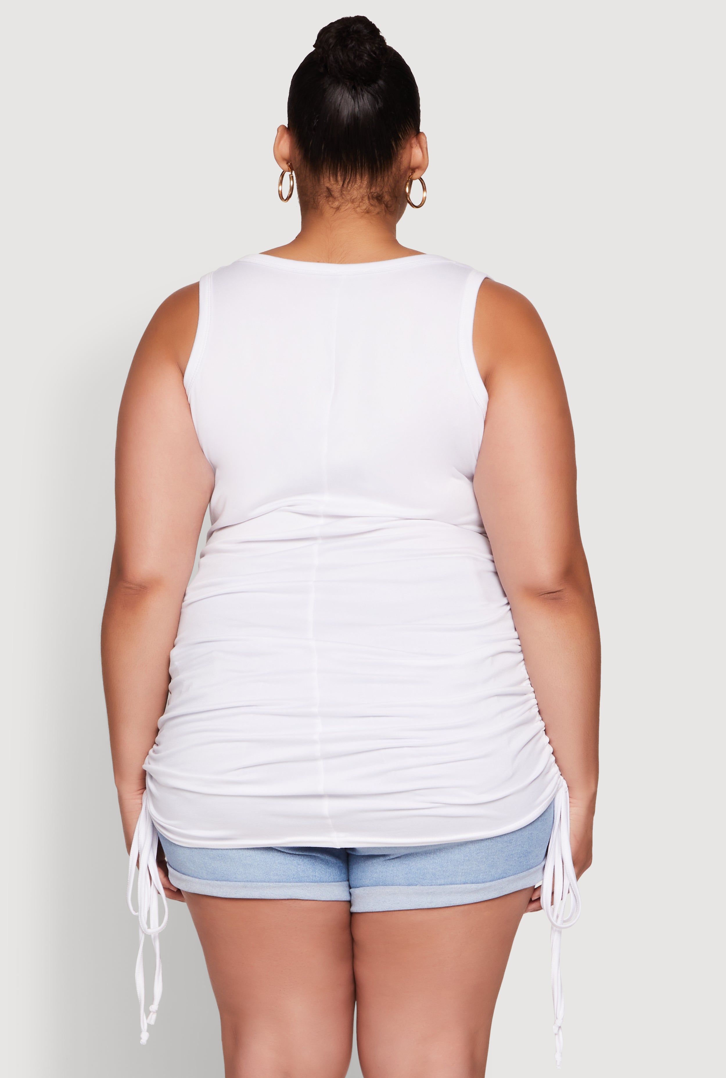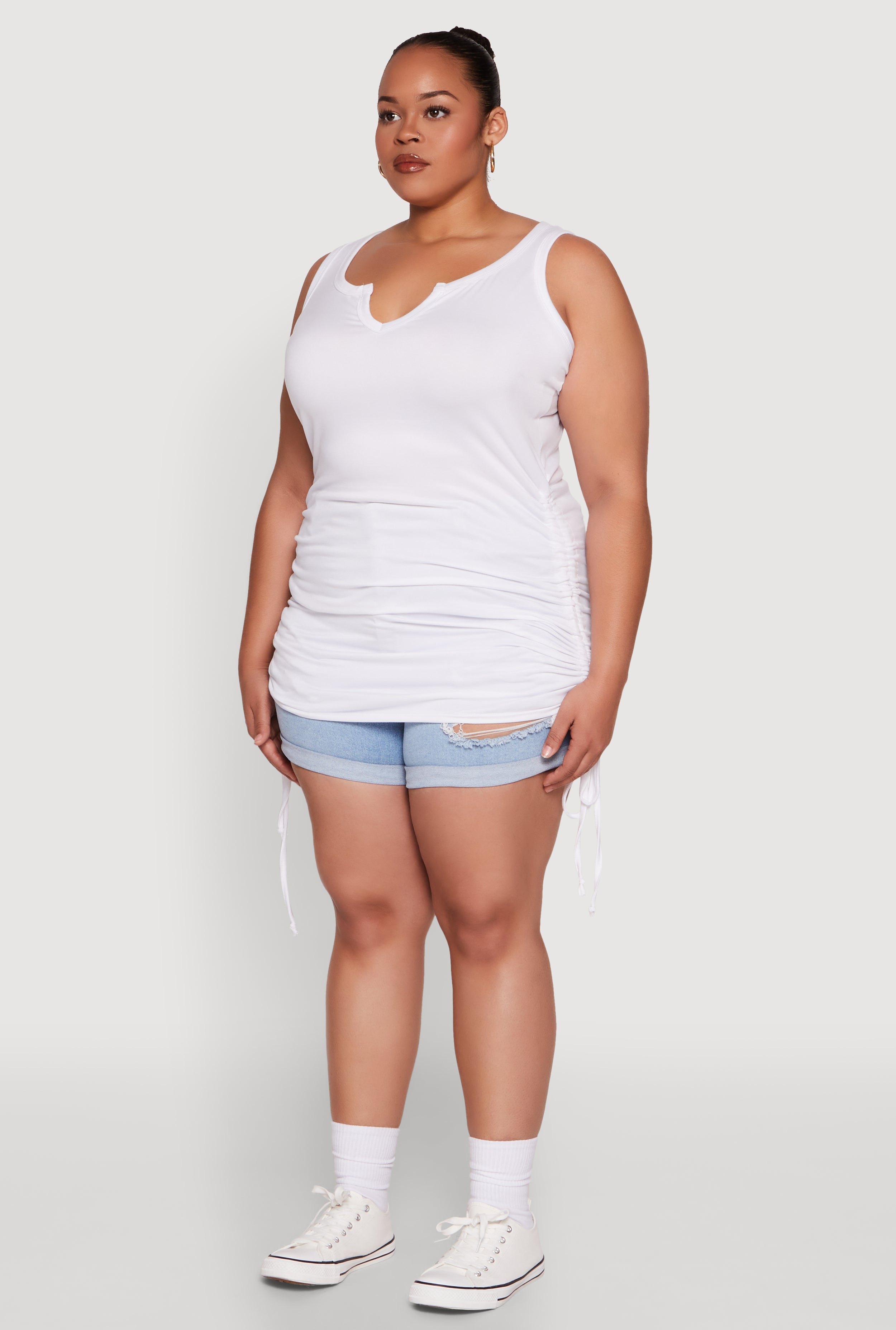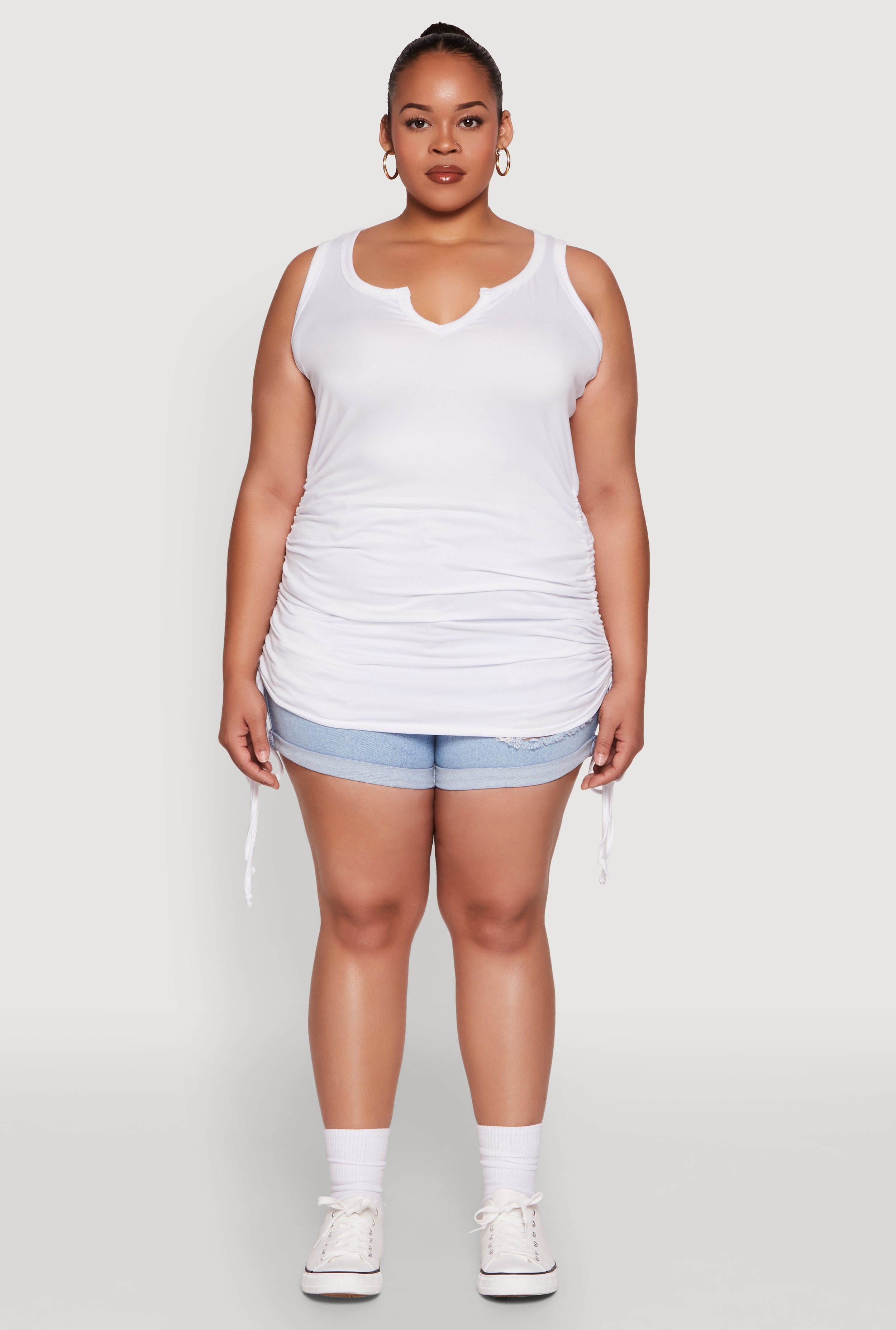 Upgrade your wardrobe with the Plus Size Notch Neck Drawstring Side Tank Top, a perfect blend of style and comfort that keeps you looking fresh and feeling confident. Featuring a classic fit and timeless silhouette, this sleeveless tank is your new go-to for casual days, shopping trips, or just relaxing in style. The drawstring sides add a fun, customizable touch, making it easy to switch up your look. Whether you're layering or wearing it solo, this versatile top is designed to keep you cool and chic all day long.