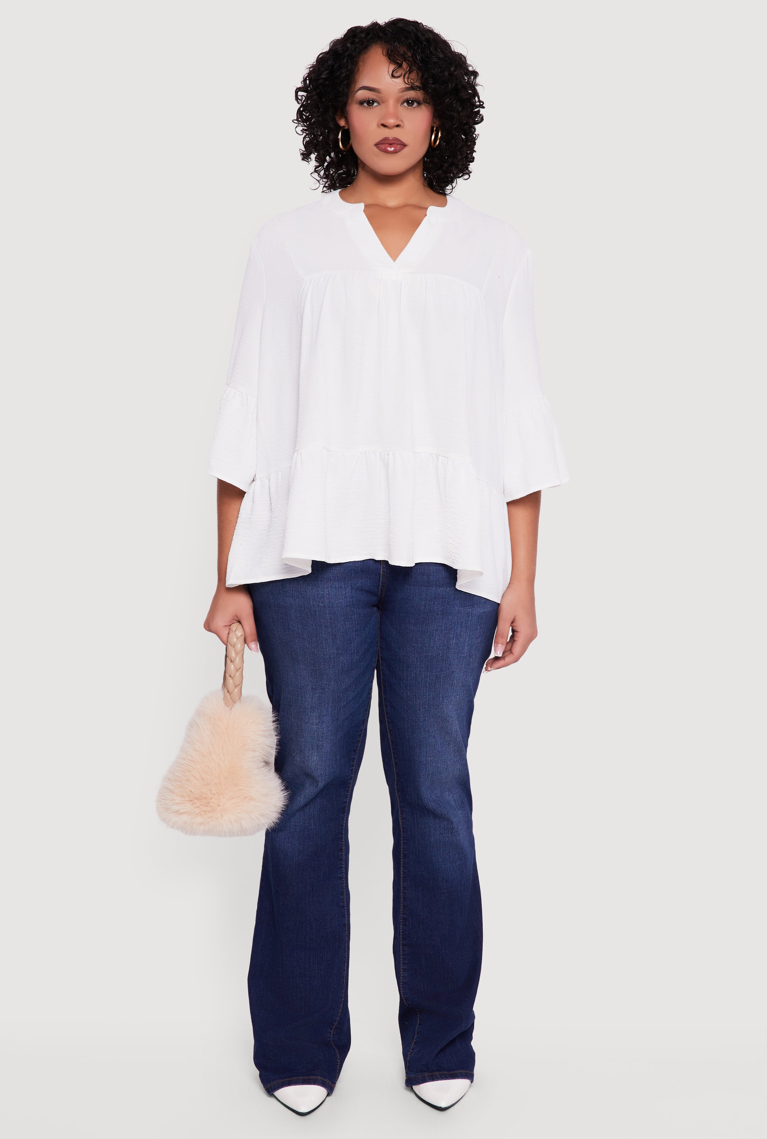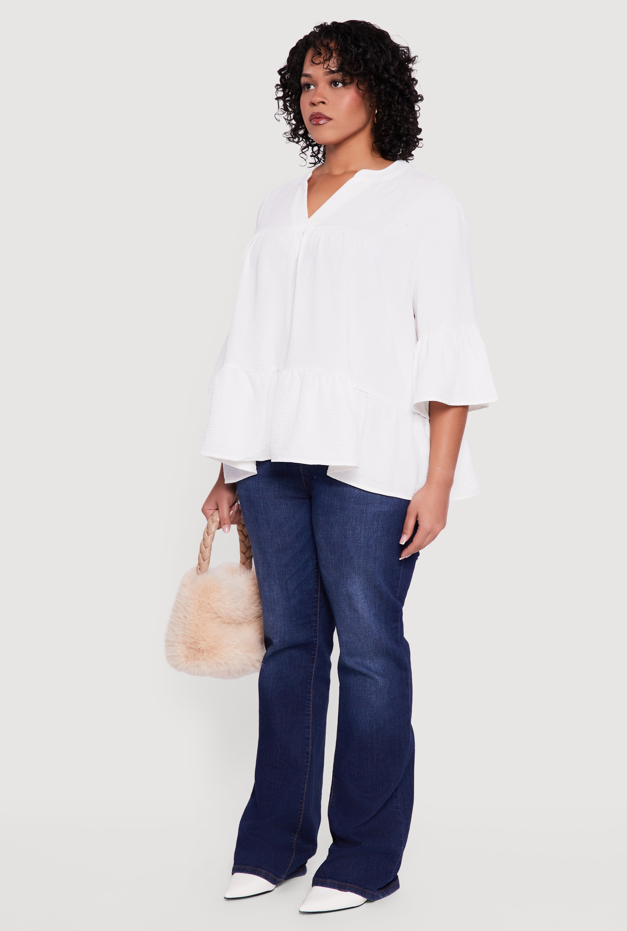Plus Size Notch Neck Peplum Top