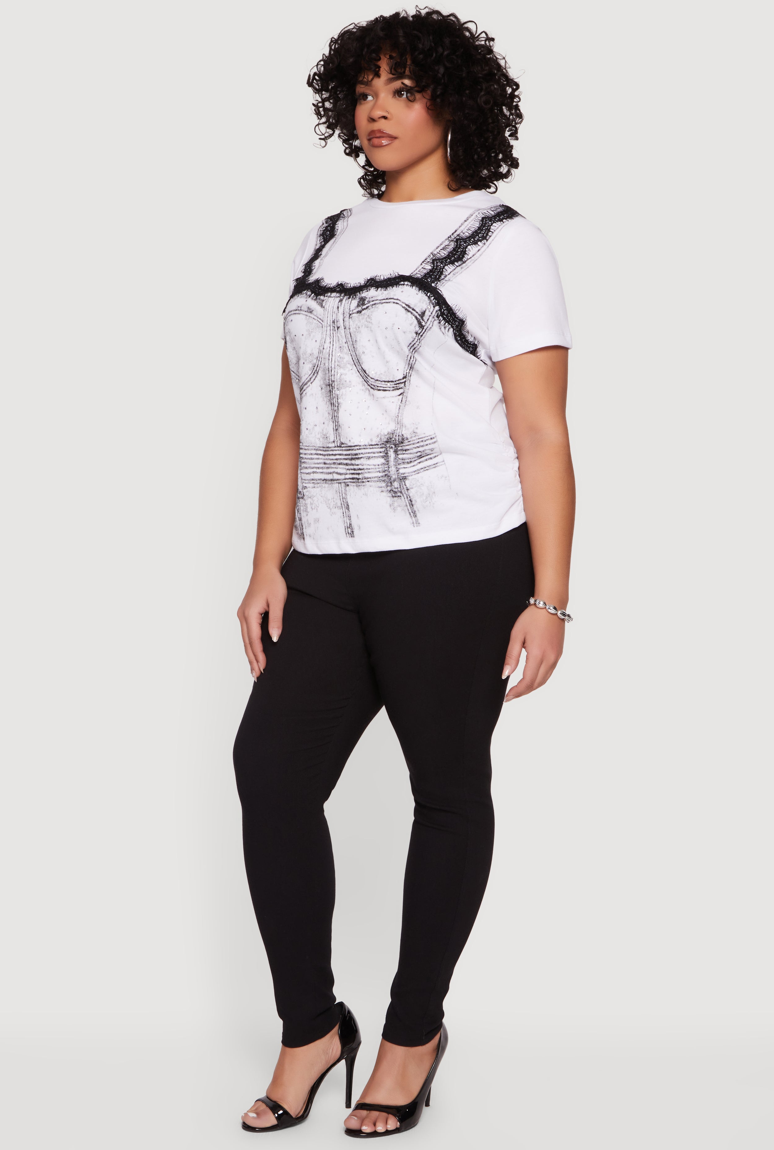 - Graphic print with lace and rhinestone details adds a trendy twist
