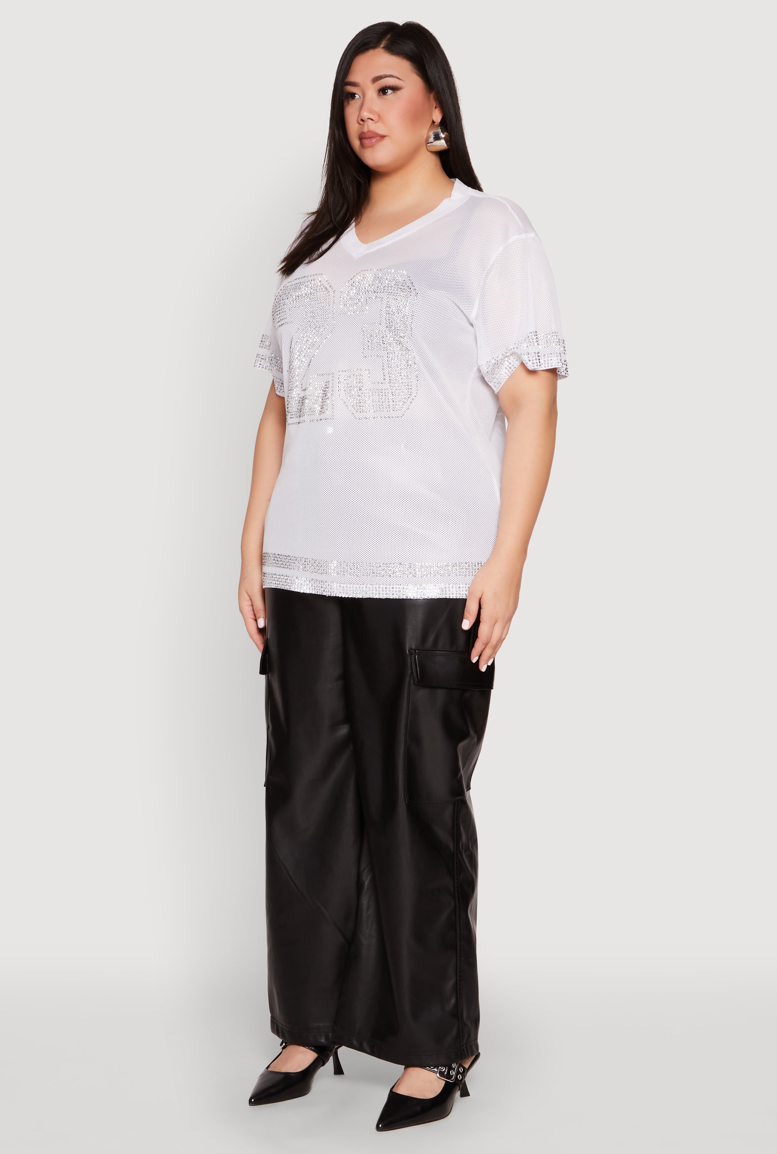 - Features rhinestone embellishments and varsity stripe detail for a trendy, sporty look
