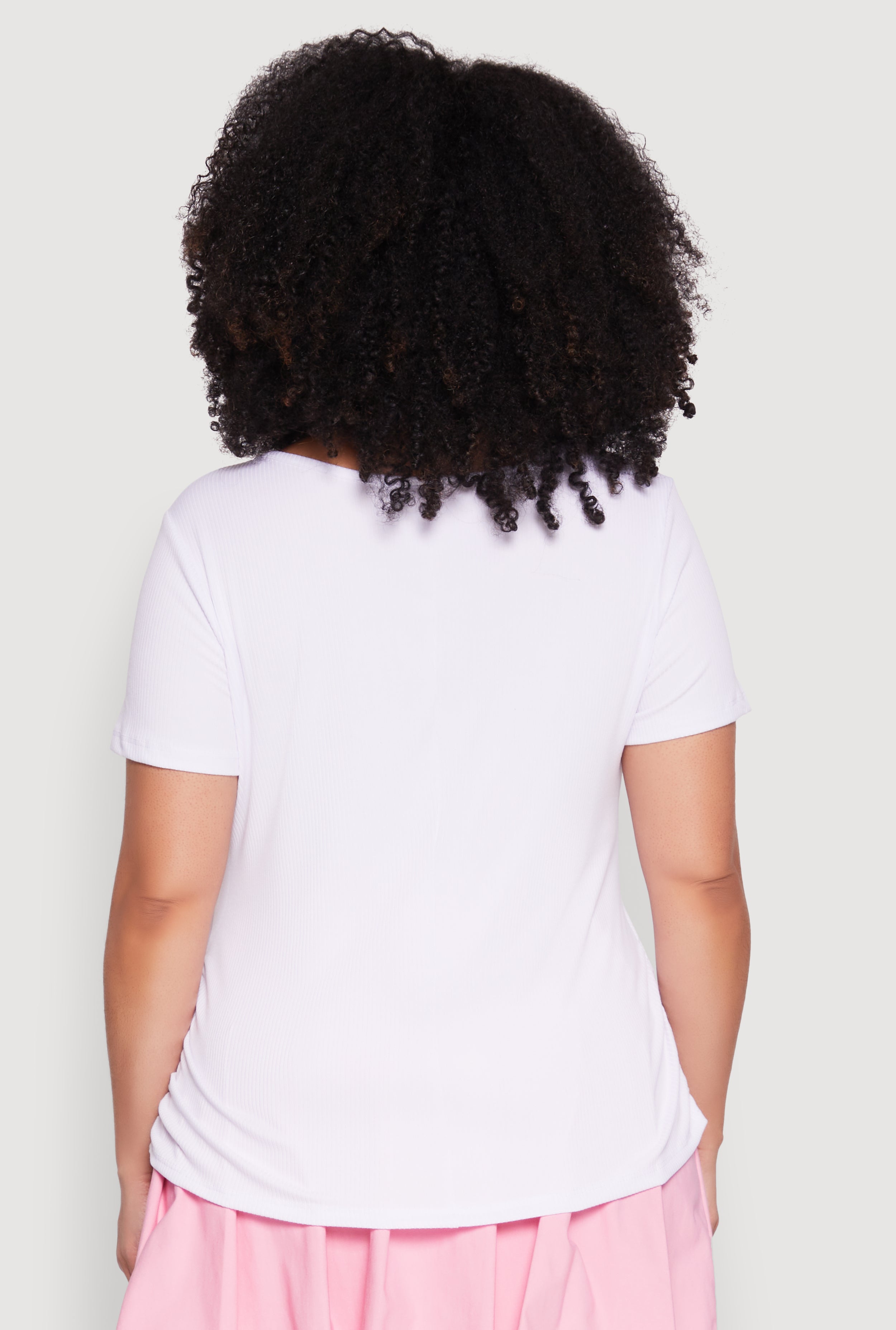 Get ready to turn heads with our Plus Size Ribbed Knit Baddies Graphic Tee. This effortlessly cool top combines a classic fit with a timeless silhouette, making it your new go-to for casual days or chill hangouts. Crafted from soft ribbed knit fabric, it features eye-catching rhinestones and ruching details that add just the right amount of edge. The crew neck and short sleeves make it perfect for layering or wearing solo, ensuring you stay comfy and stylish all day long. Whether you're dressing up or down, this graphic tee is a versatile piece that celebrates your bold style and confidence.