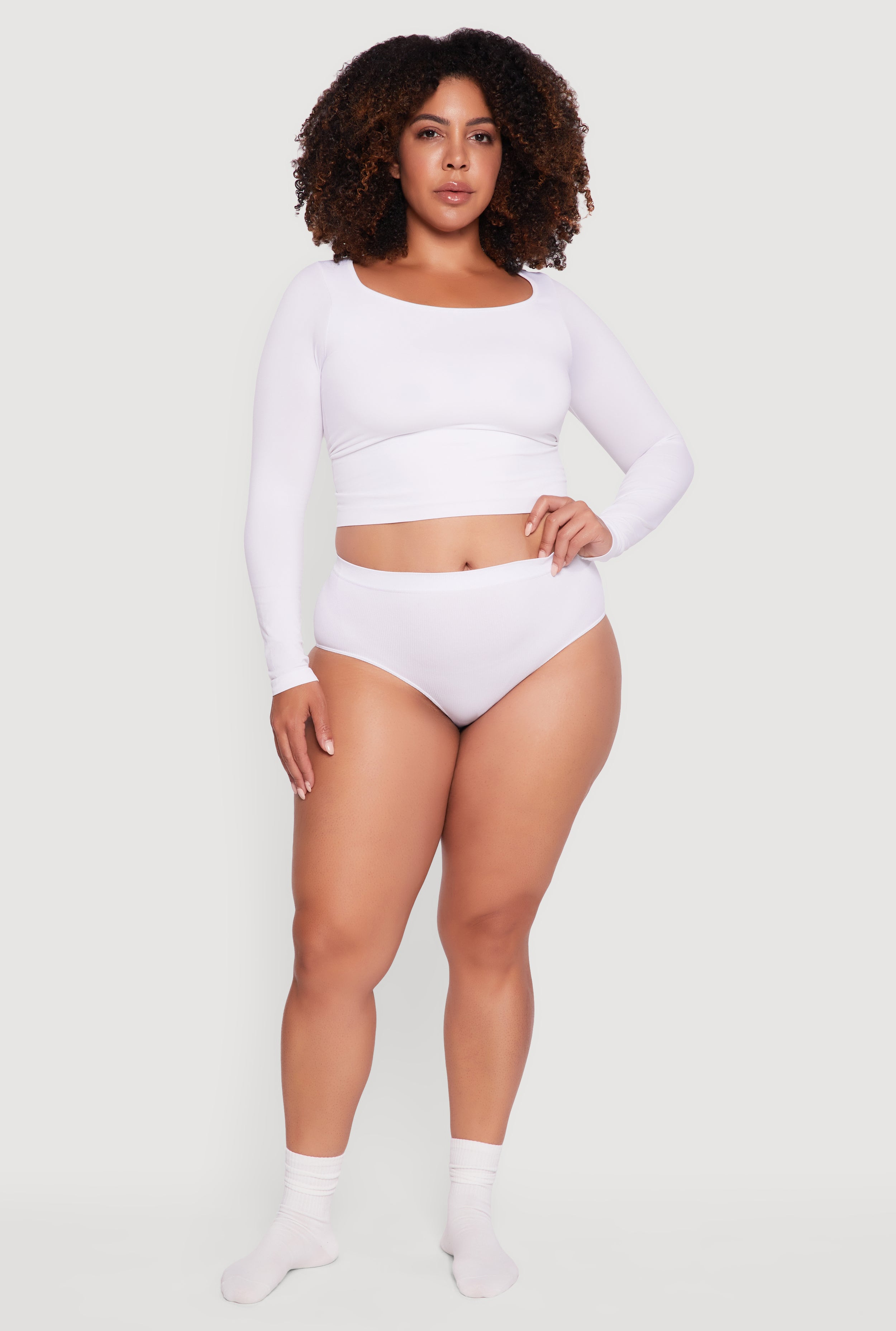 Slip into ultimate comfort with the Plus Size Seamless Ribbed Knit Solid Bikini Panty. Designed to move with you, this seamless wonder offers a smooth, no-show fit that’s perfect for everyday wear. The soft ribbed knit fabric adds a subtle texture that feels as good as it looks, making it your new go-to for confidence and ease. Say goodbye to panty lines and hello to a flawless silhouette that keeps up with your busy lifestyle.