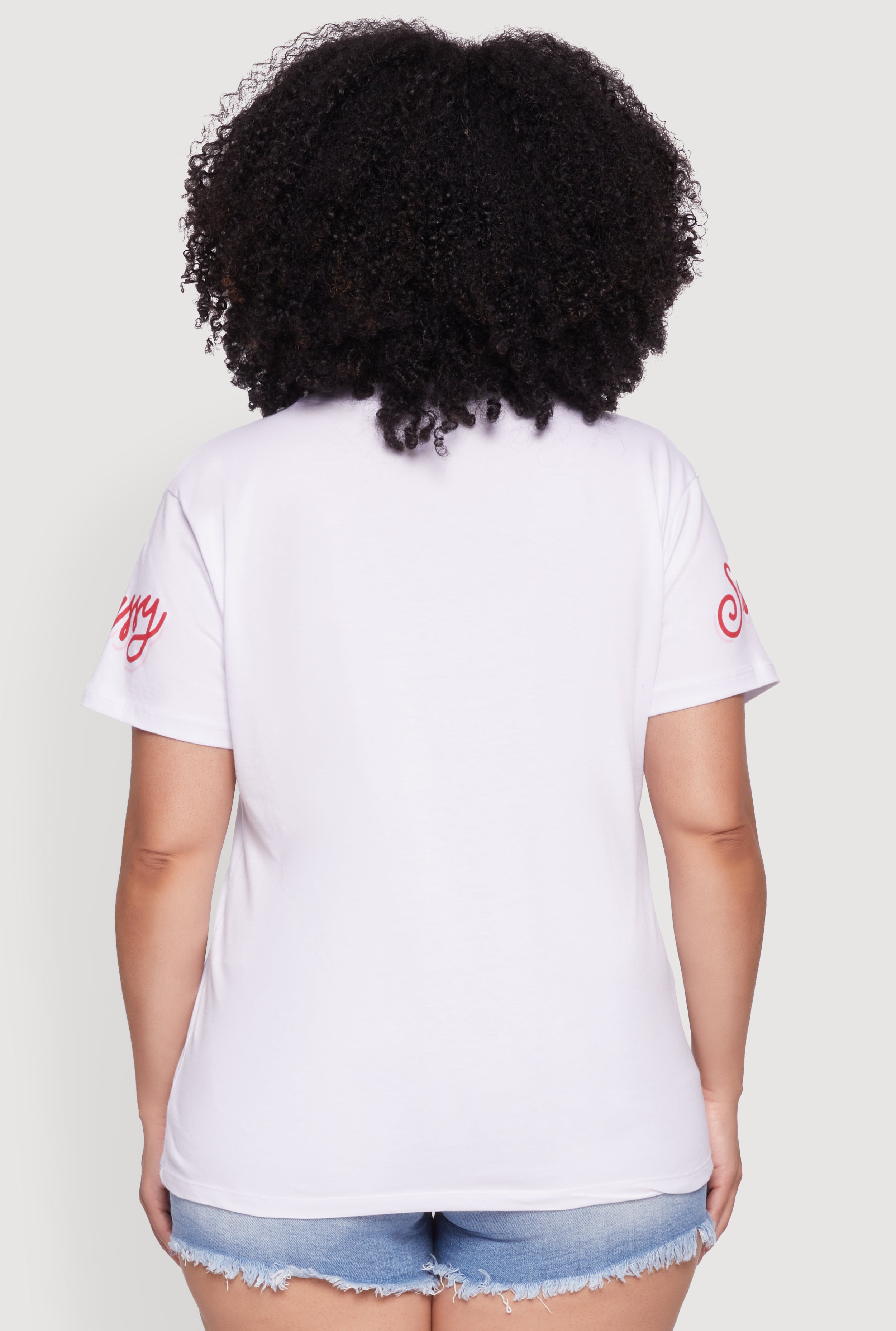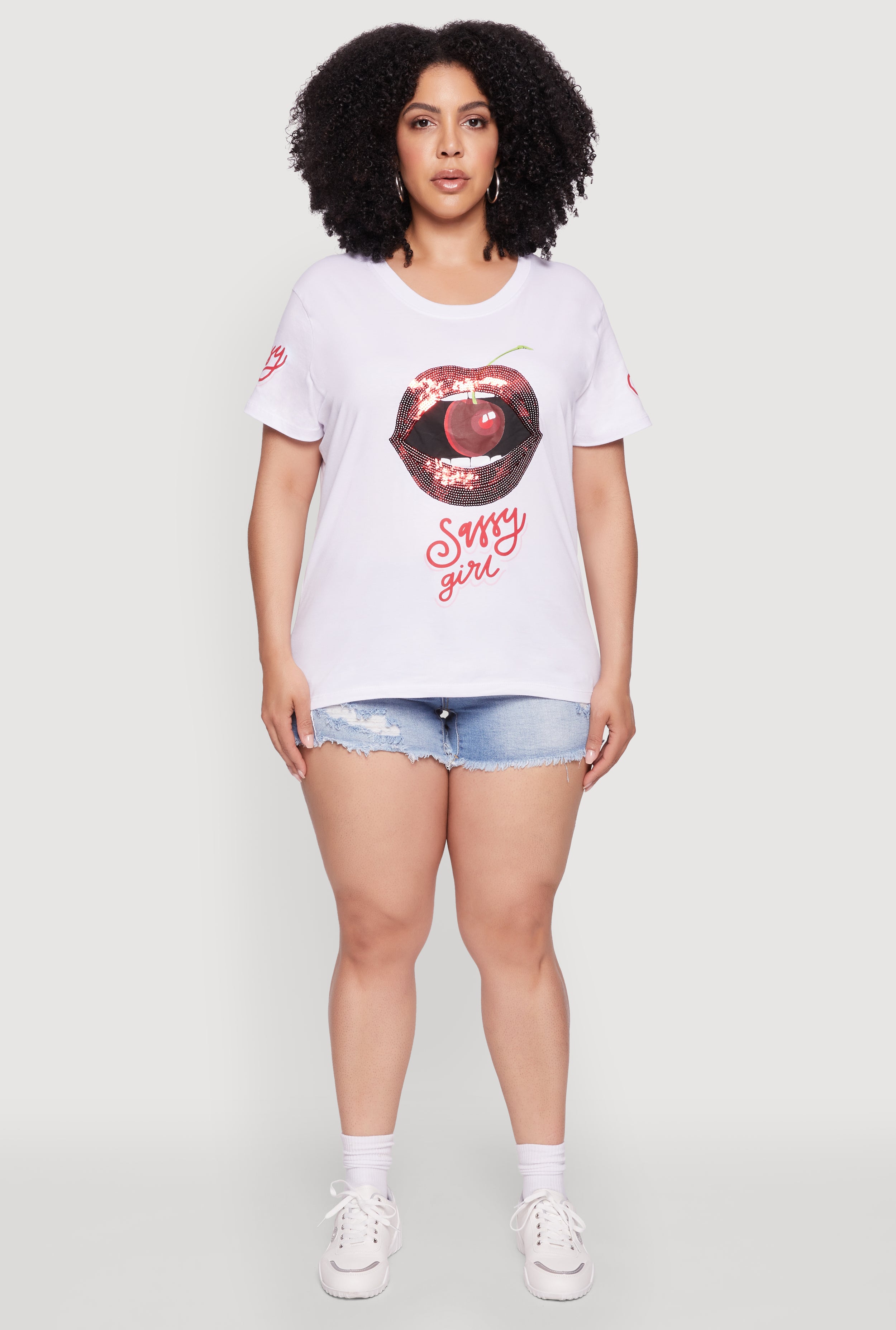 Plus Size Sequin Cherry Lip Sassy Girl Graphic Tee
