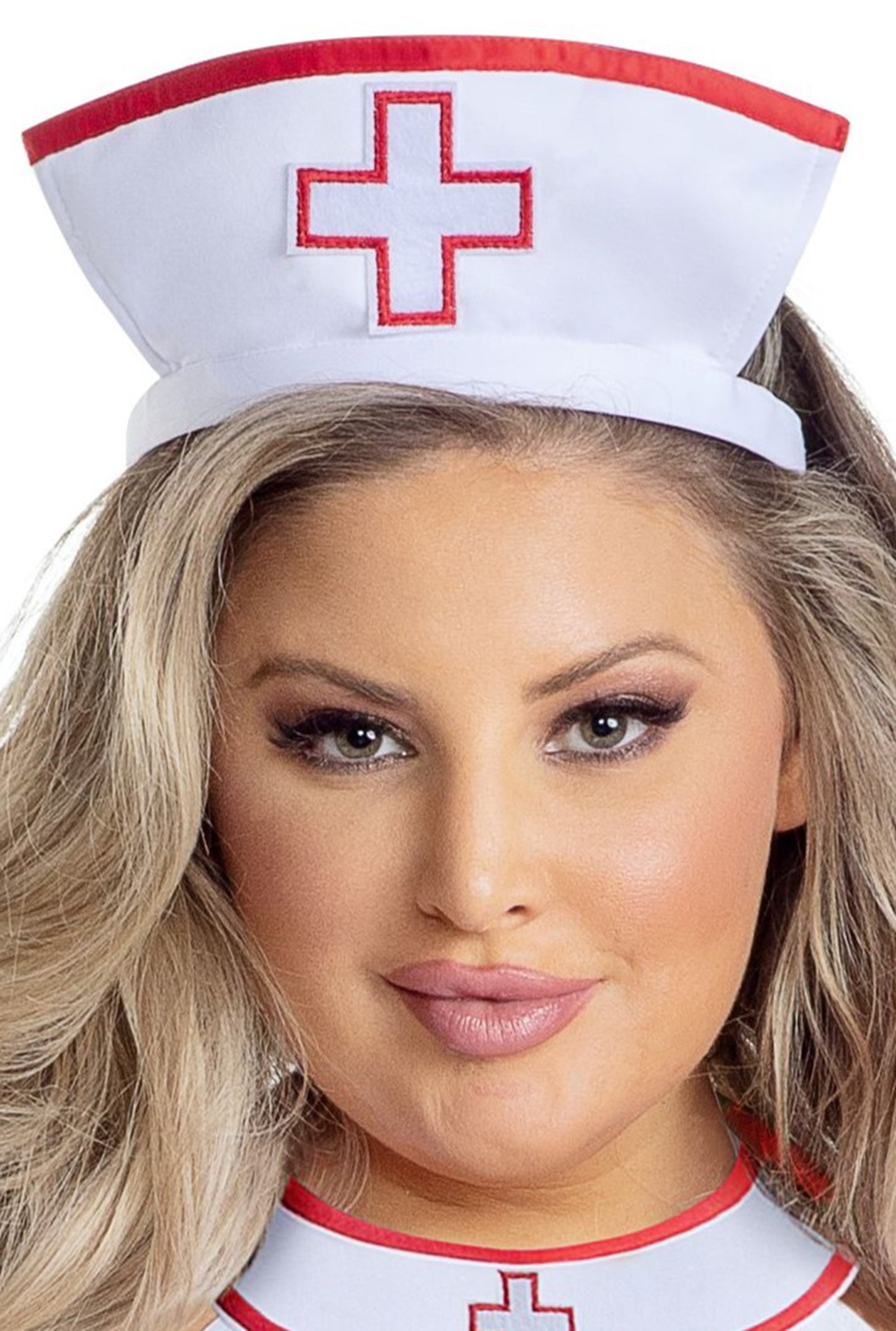 Turn heads and feel confident in this Plus Size Sexy Nurse Costume that’s perfect for any fun themed event or costume party. With a curve-hugging fit and a playful short length, this bodycon dress features a stylish halter neck and contrast trim details that add just the right touch of sass for Halloween. Complete with a matching headpiece, cuffs, and a stethoscope, this 4-piece set makes it easy to channel your inner nurse with a flirty twist. The velcro strap ensures a secure fit, so you can focus on having a good time. Whether you're dressing up for Halloween or a costume party, this look is sure to make a statement and boost your confidence.