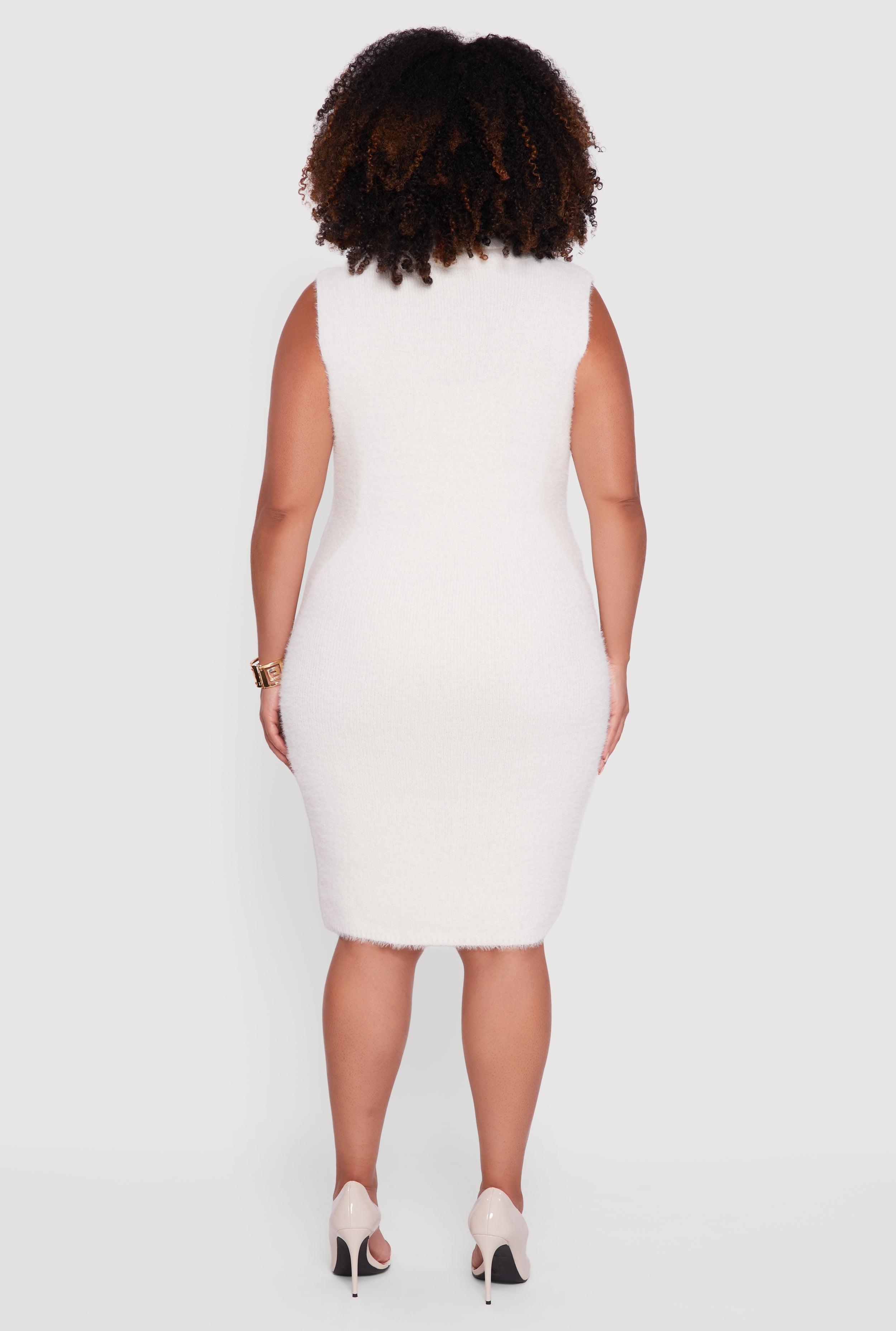 Step into cozy-chic with this Plus Size Sleeveless Eyelash Knit Turtleneck Dress. Perfect for casual days, holiday vibes, or a night out, this short-length sweater dress hugs your curves in all the right places with a classic fit that never goes out of style. The soft eyelash knit adds a touch of texture and warmth while the sleeveless design keeps it cool and versatile. Elevate your wardrobe with a dress that’s as effortless as it is flattering.