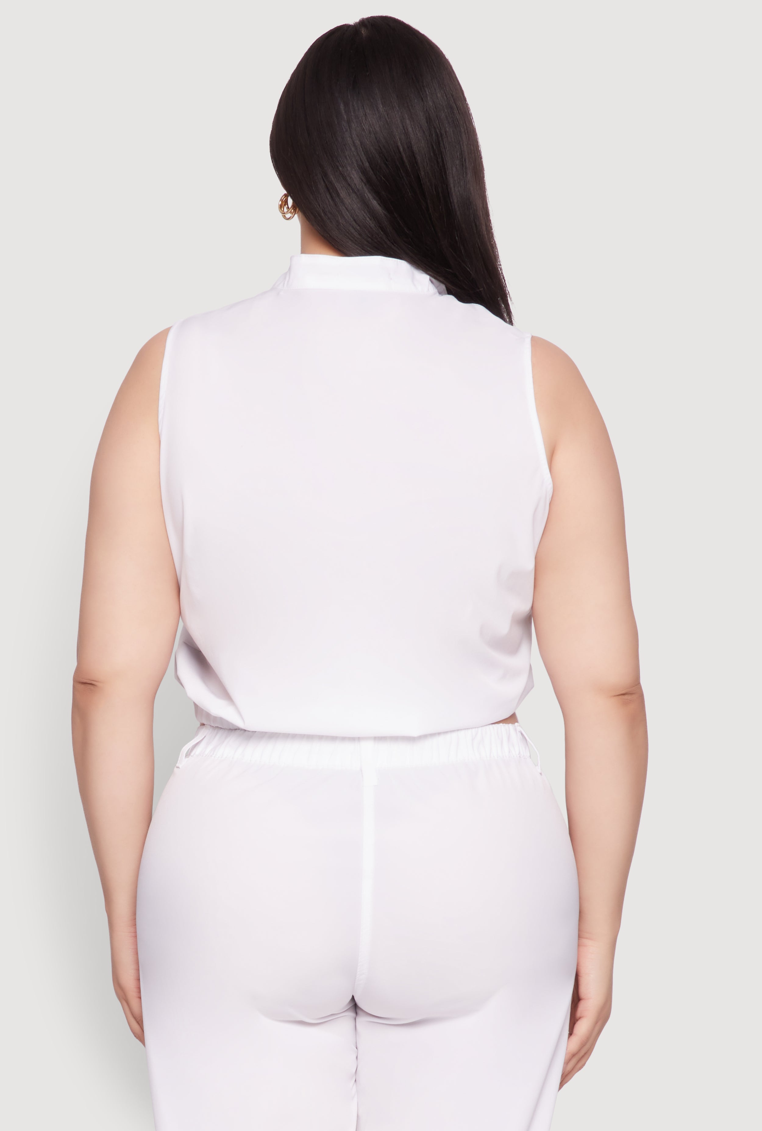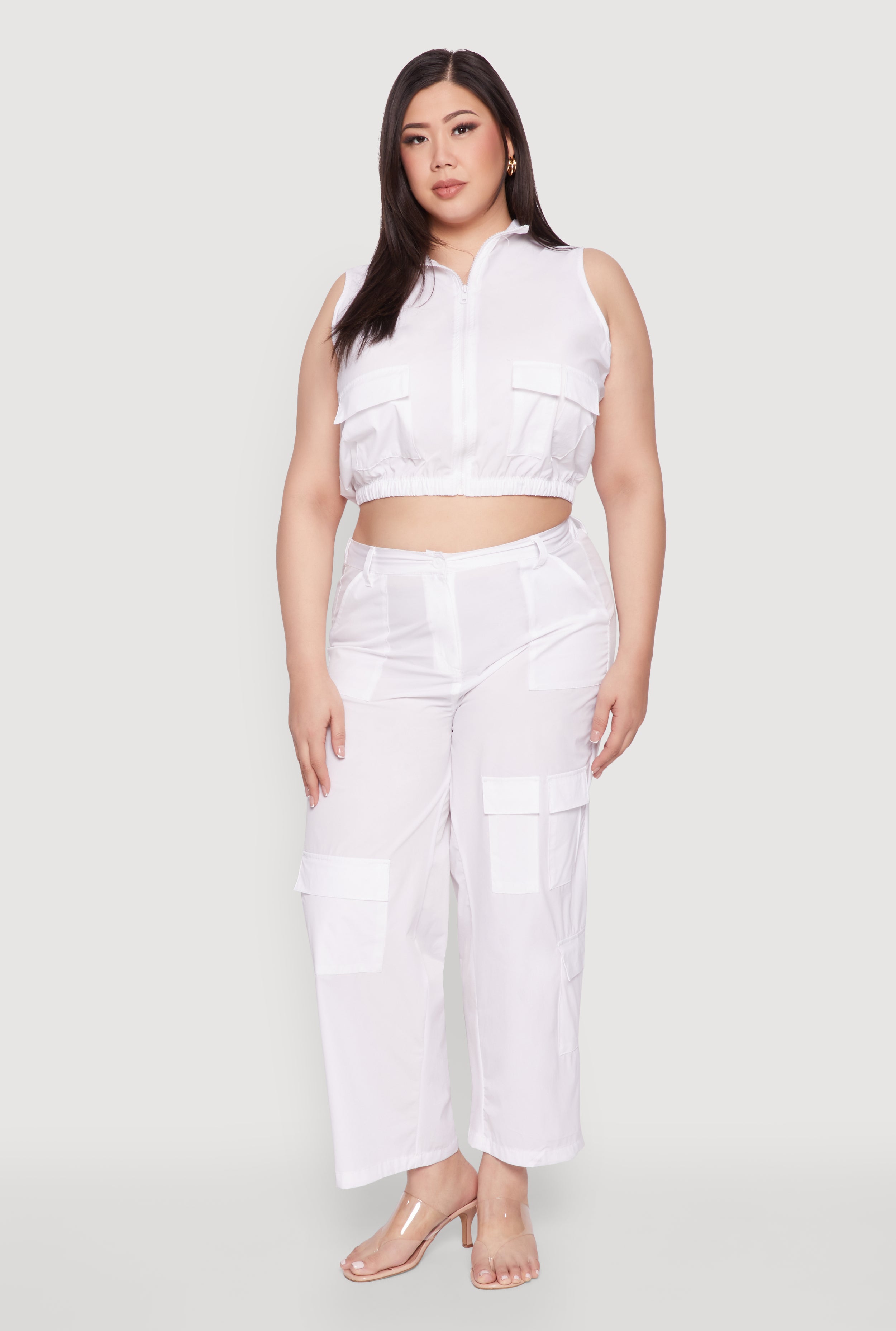 Upgrade your wardrobe with the Plus Size Sleeveless Utility Zip Front Top, a perfect blend of style and functionality. Designed for comfort and versatility, this top features a classic fit with a timeless silhouette that flatters every curve. The cropped hem adds a trendy touch, while the zip front and cargo pockets bring an effortless utilitarian vibe. Whether you're dressing up for a casual outing or creating a chic set, this top is your new go-to piece for everyday confidence and style.
