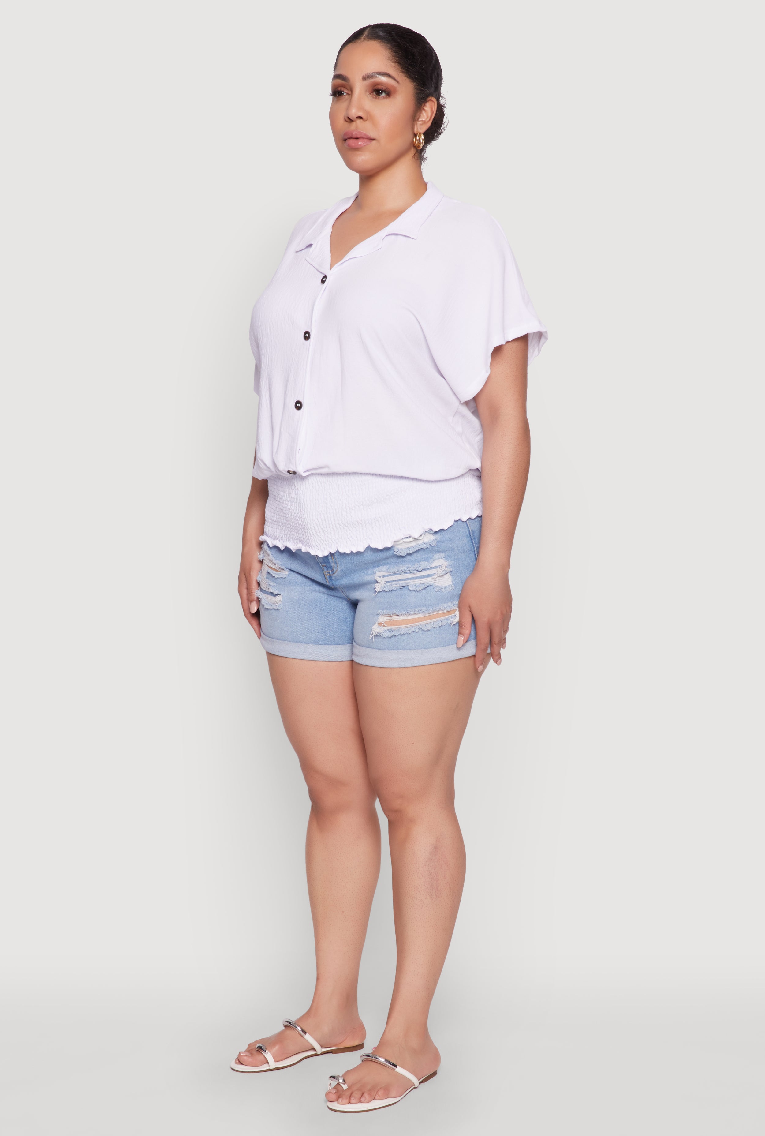 - Flattering smocked hem adds a trendy touch and a perfect fit
