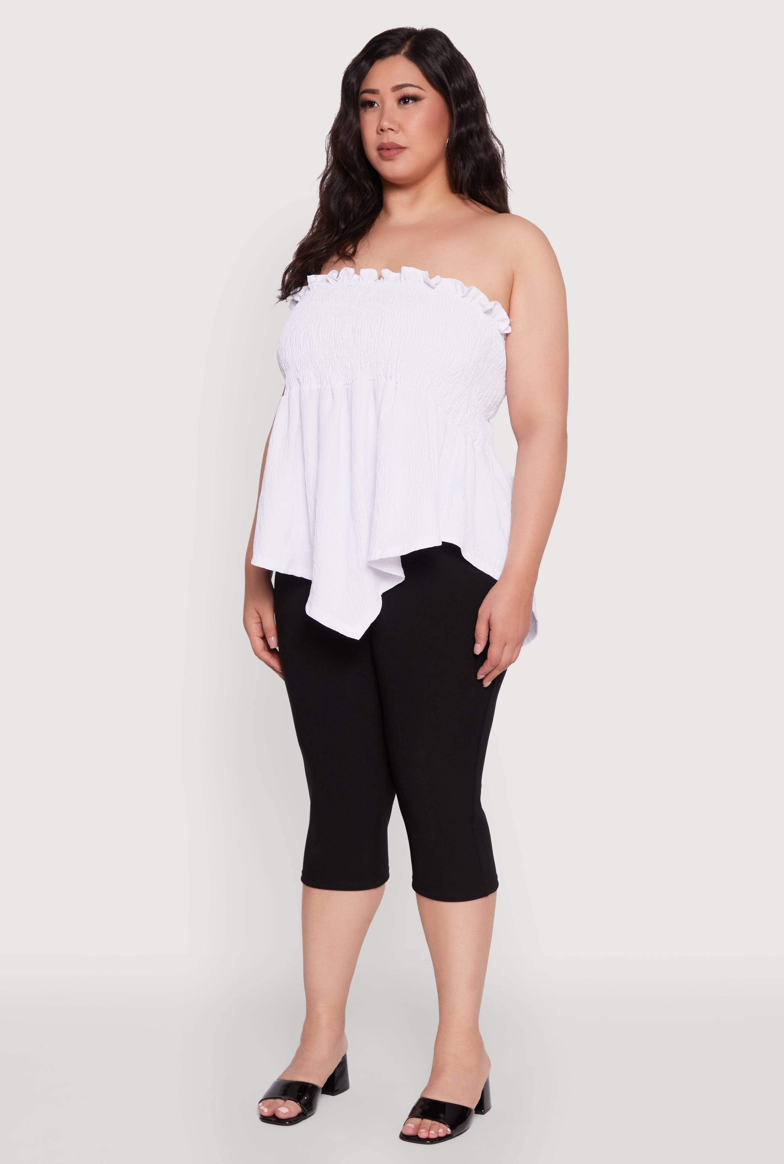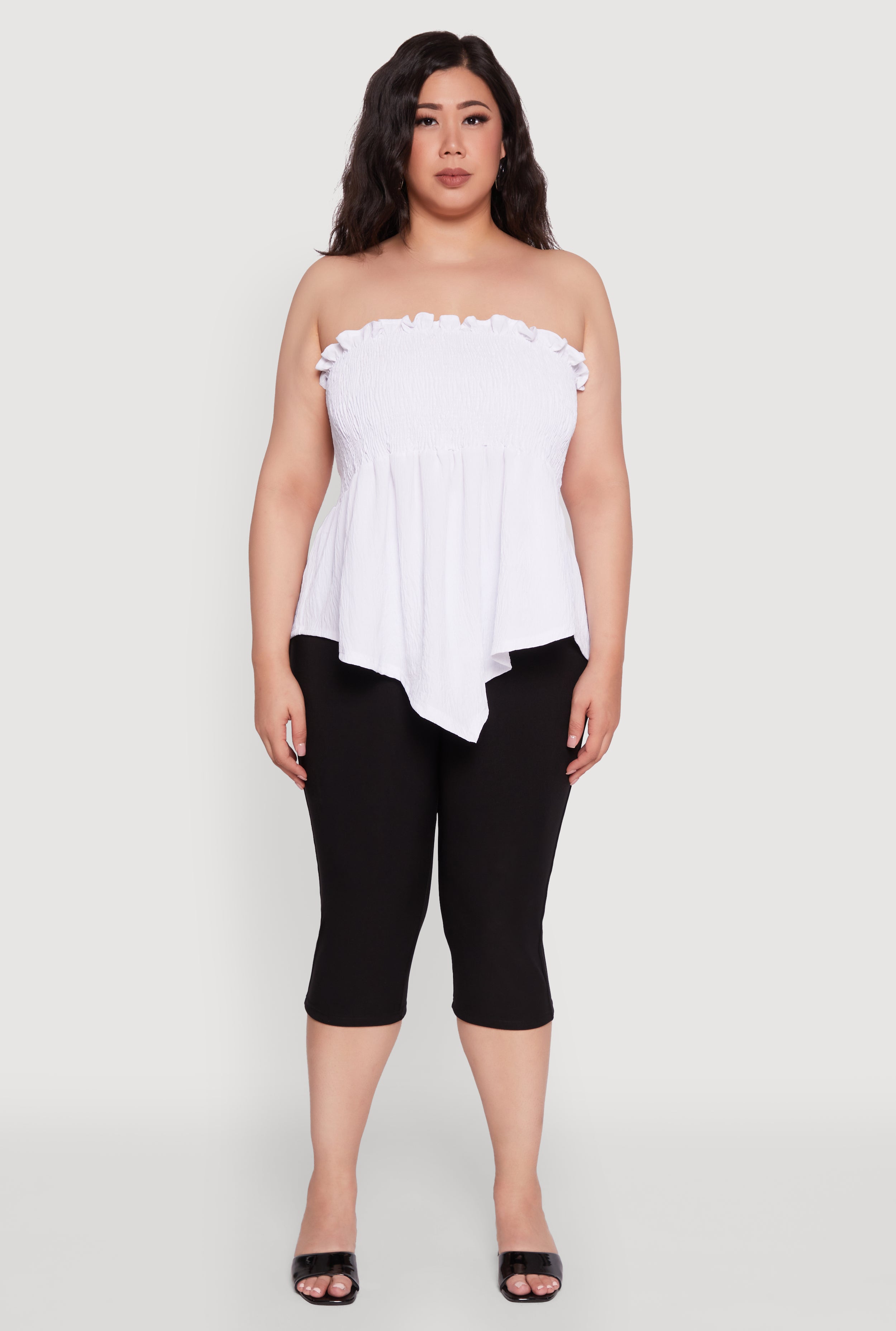 Plus Size Smocked Strapless Peplum Tube Top in Solid Crepe Knit
