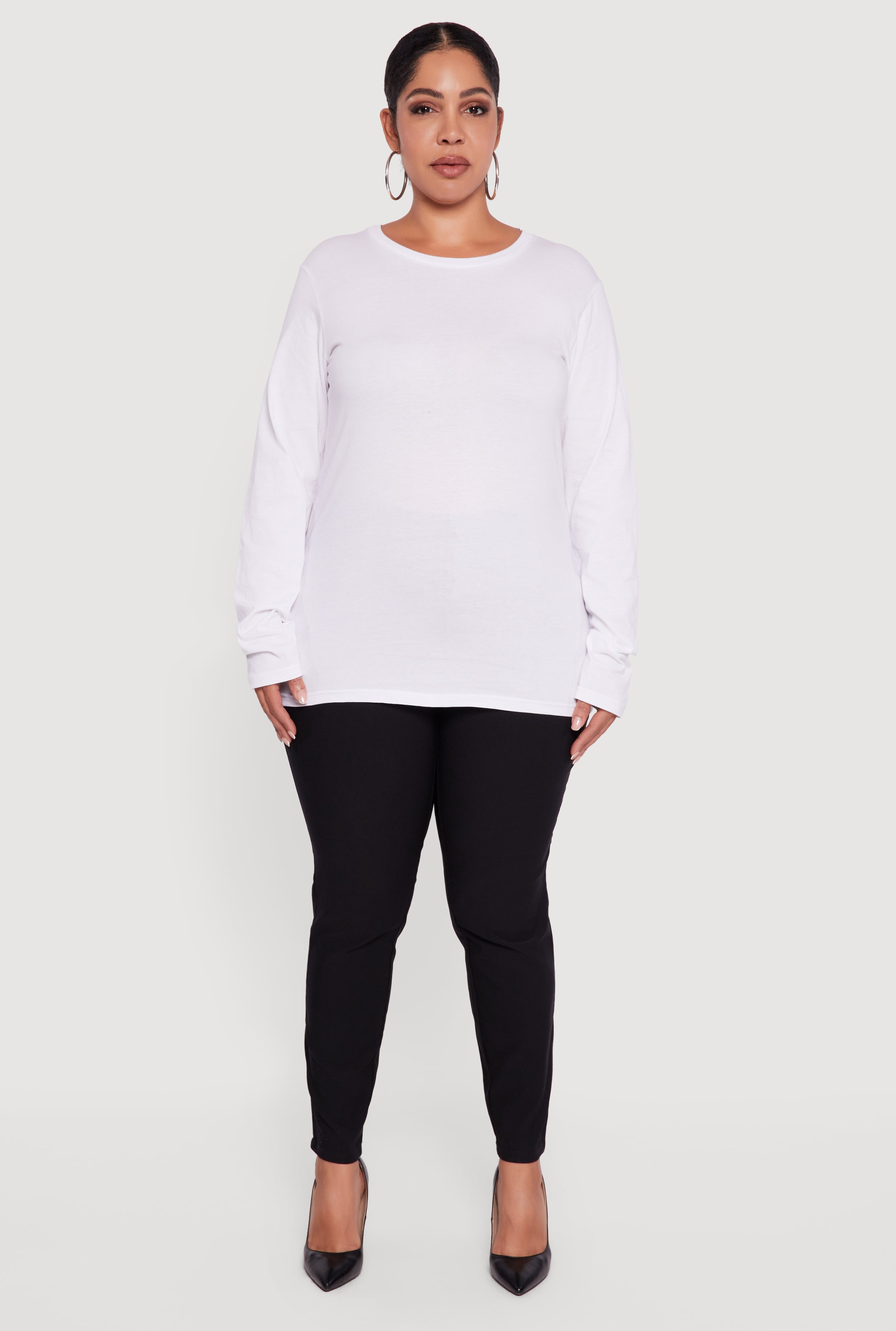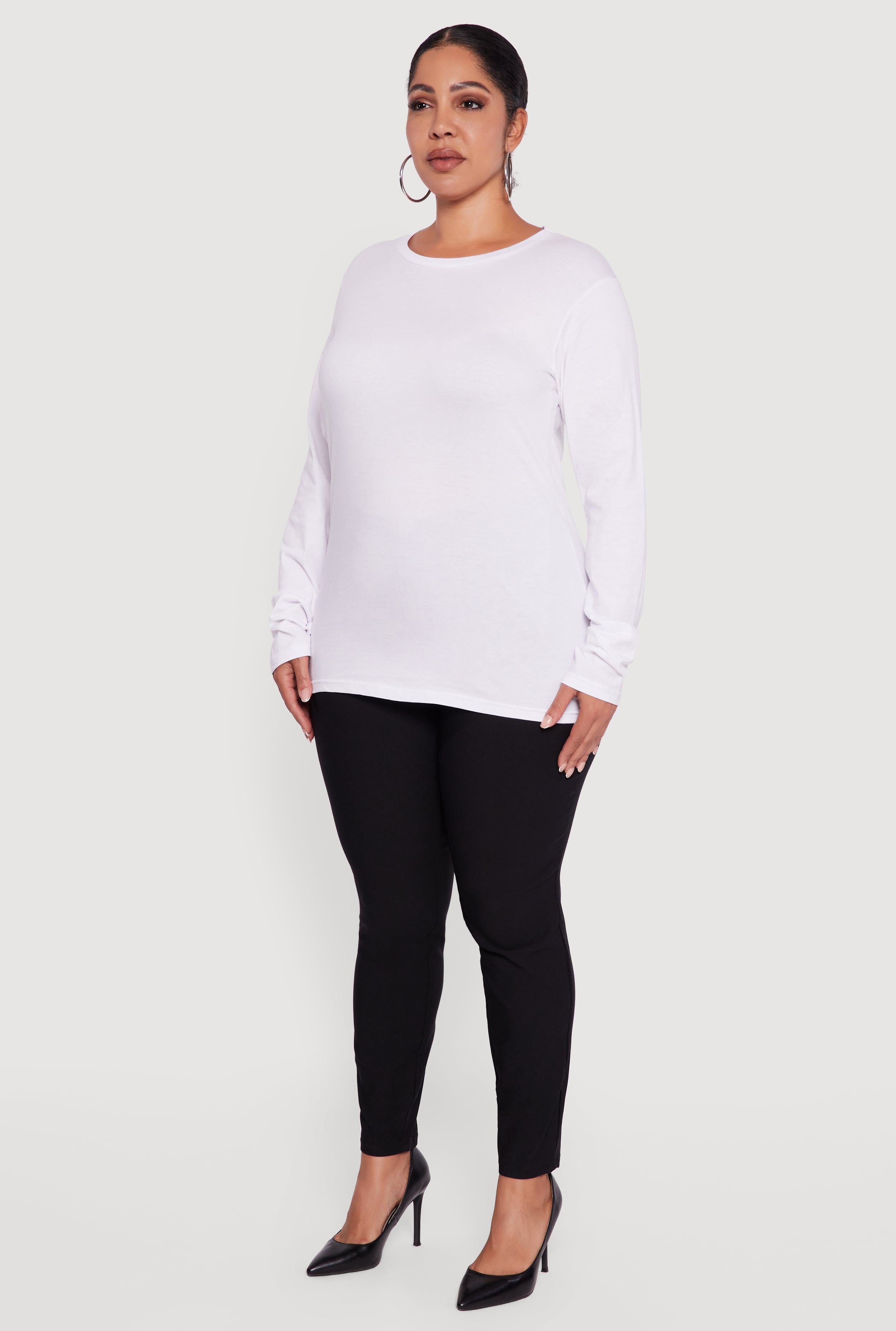 Discover your new everyday essential with this Plus Size Solid Long Sleeve Crew Neck Tee. Designed for comfort and style, it features a classic fit that flatters your curves without sacrificing ease. The timeless crew neck and solid color make it a versatile piece that pairs effortlessly with your favorite jeans or skirts. Perfect for casual days when you want to look put-together with minimal effort.
