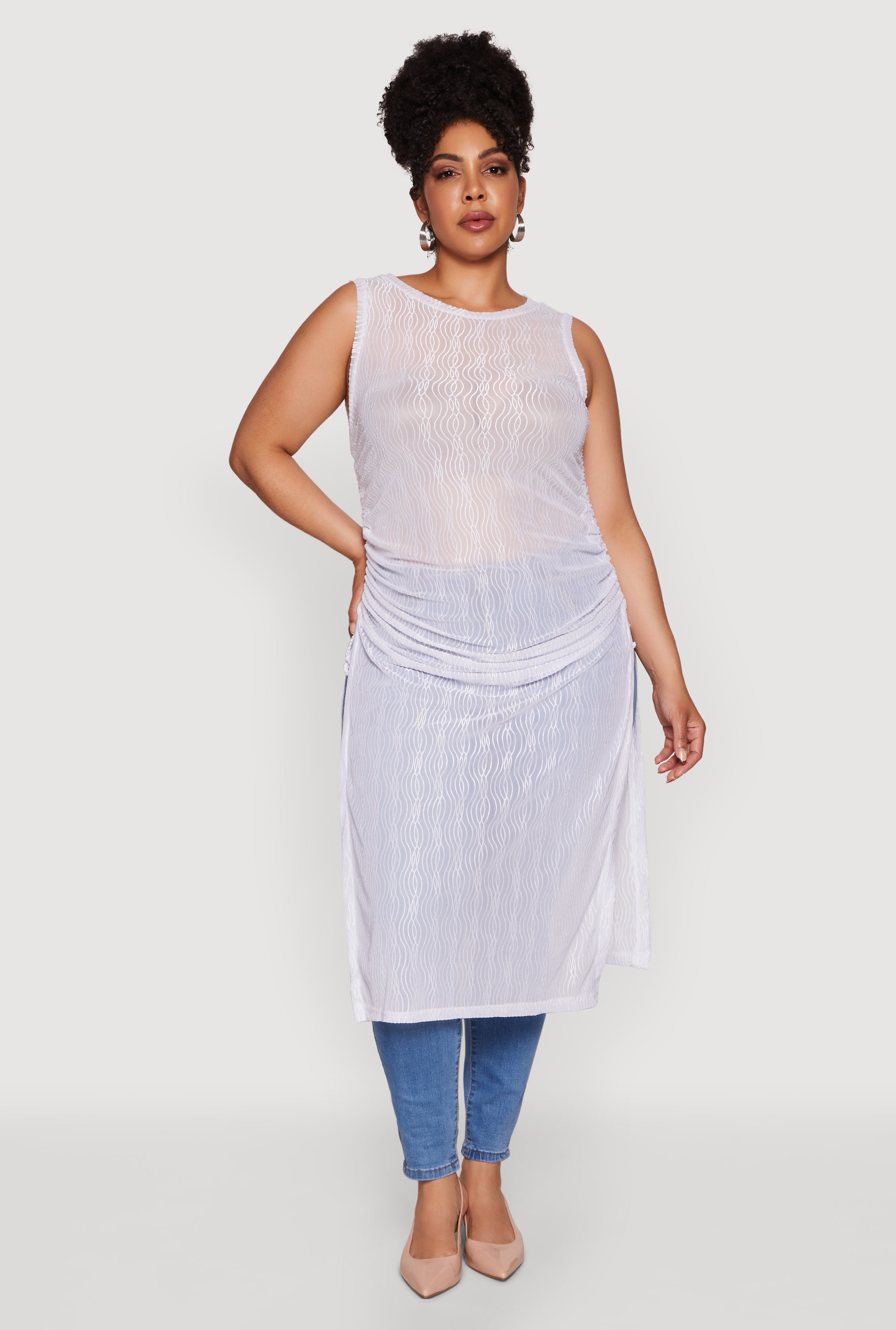 Elevate your everyday style with our Plus Size Stylish Mesh Side Slit Tank Top. Designed with a flattering ruching detail and a flowing maxi hem, this tank top offers a chic and effortless vibe that’s perfect for any casual outing. The sheer mesh fabric adds a touch of flirtiness, while the classic fit and sleeveless design keep you cool and comfortable all day long. Whether you dress it up or keep it laid-back, this piece is a must-have for your wardrobe refresh.