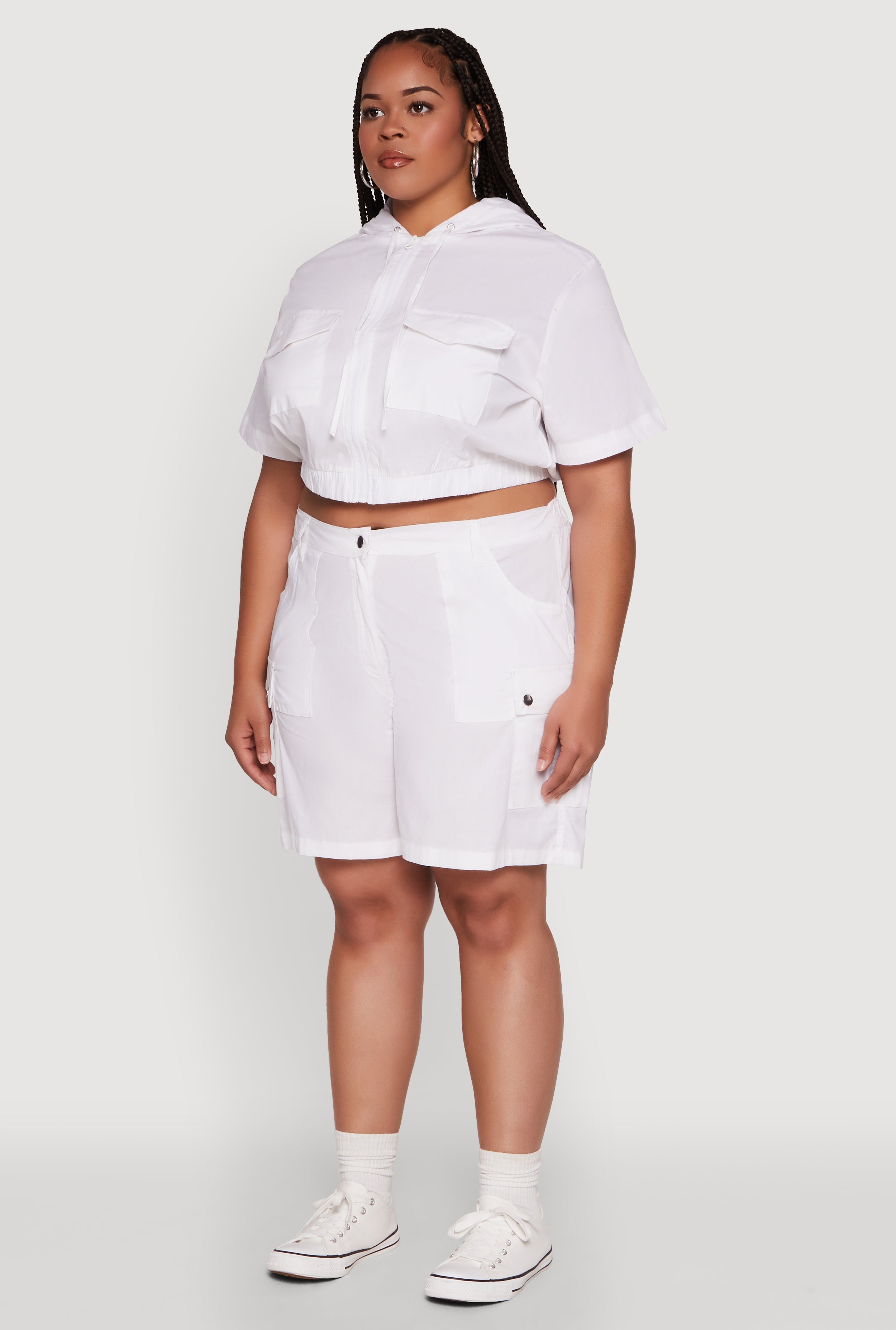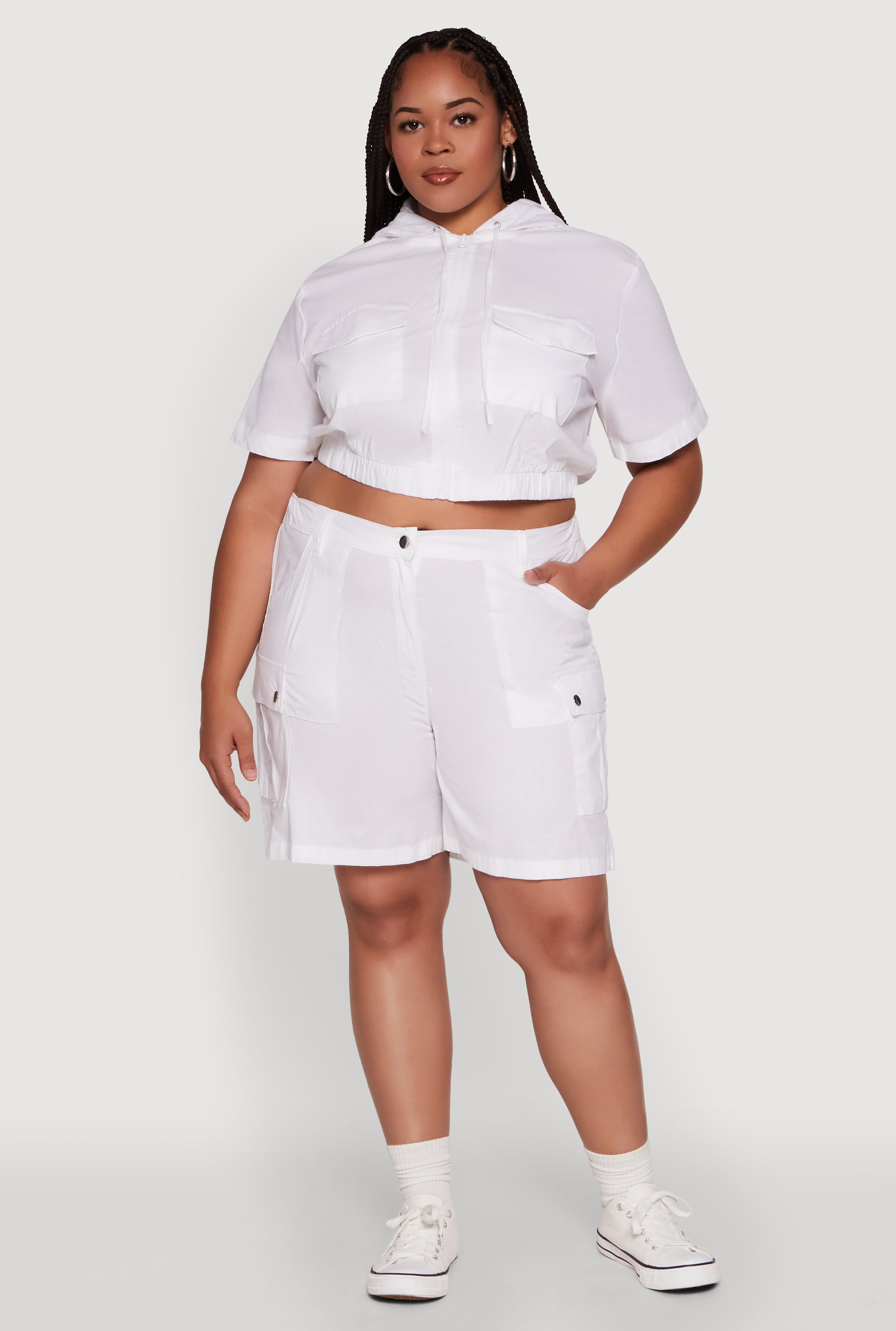 Plus Size Stylish Zip Front Cropped Hoodie