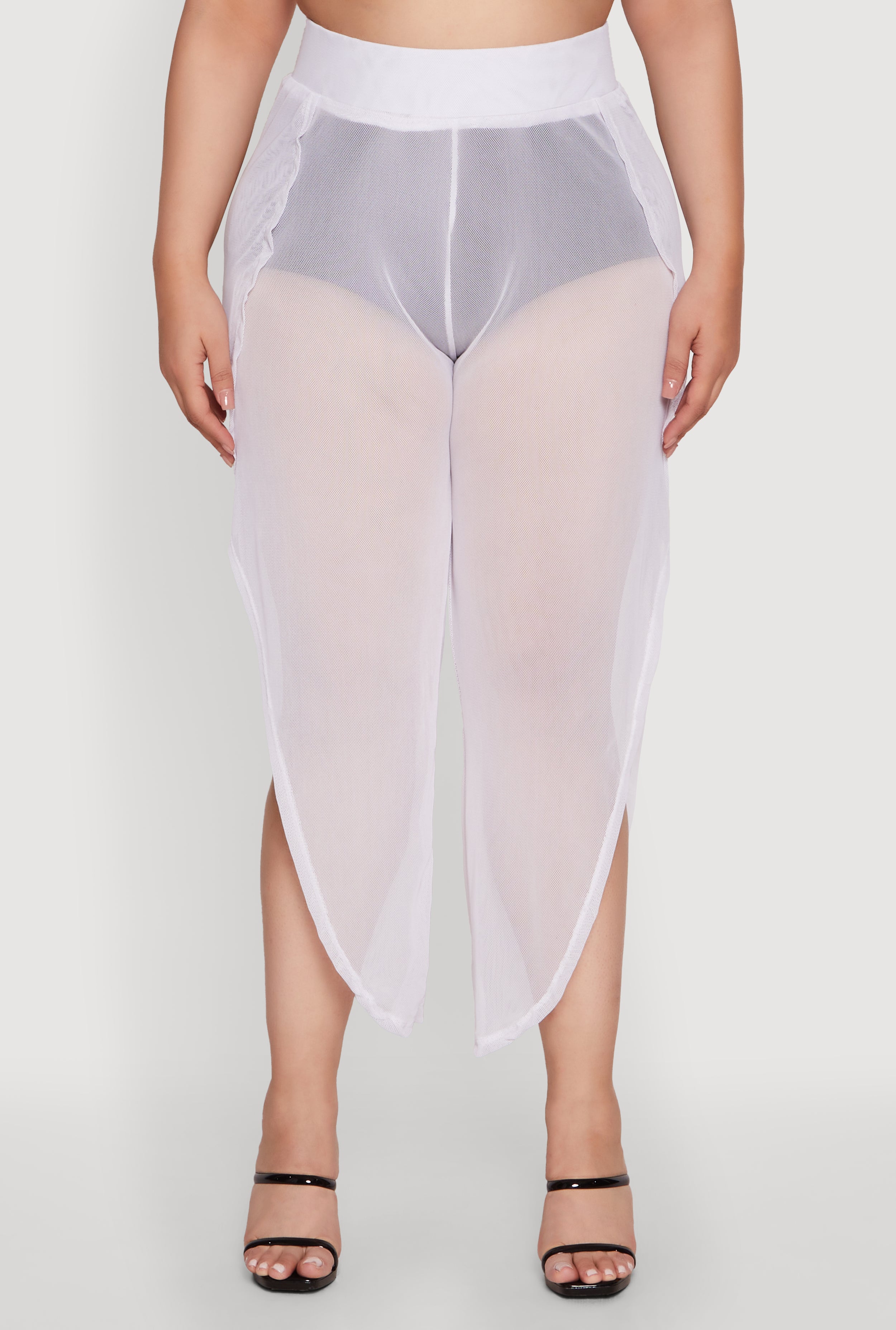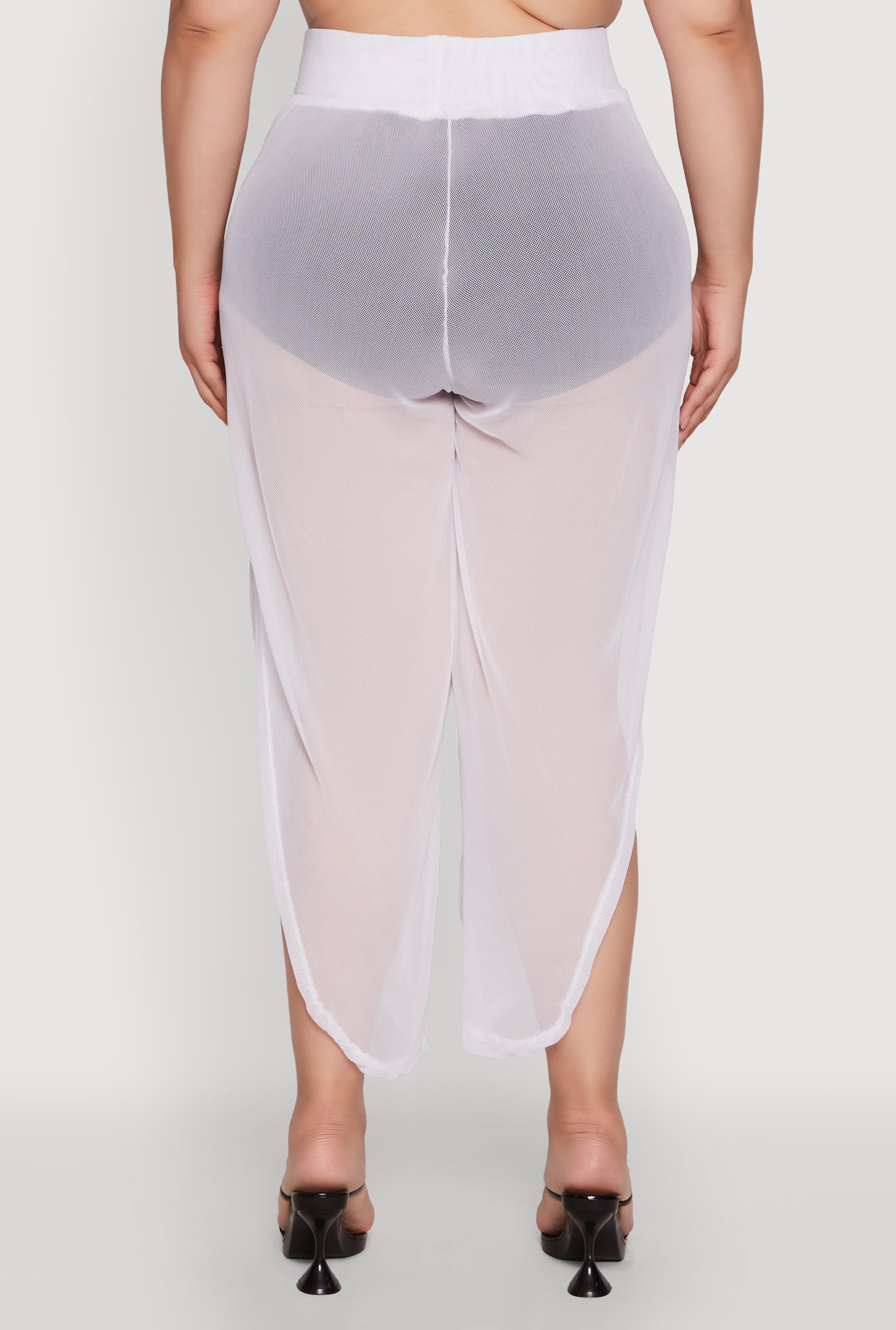 Discover the perfect blend of comfort and style with our Plus Size Trendy High Waist Side Slit Mesh Palazzo Pants. These chic wide-leg pants are designed to make you feel confident and fabulous, whether you're heading out for a casual day or a night on the town. The sheer mesh fabric adds a touch of flirtiness, while the high waist and side slits bring a modern edge to your wardrobe. Easy to dress up or down, these pants are a must-have for your fashion-forward collection.