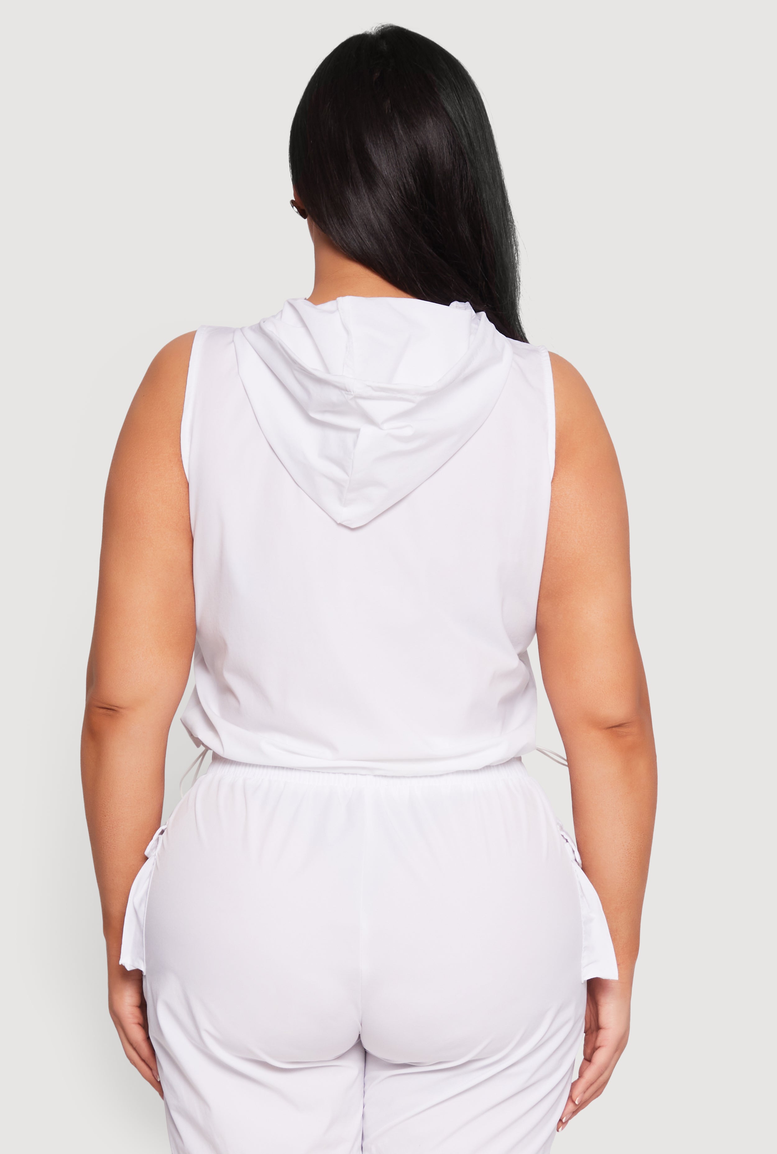 Stay stylish and protected with our Plus Size Zip Front Sleeveless Windbreaker Vest. Perfect for those on-the-go moments, this lightweight nylon vest features a trendy cropped hem and a cozy hoodie to keep you looking fresh no matter the weather. The toggle drawstring adds a customizable touch, making it your new favorite piece for activewear sets or casual outings. Embrace comfort and confidence in this versatile, plus size essential that proves fashion doesn't have to be complicated.