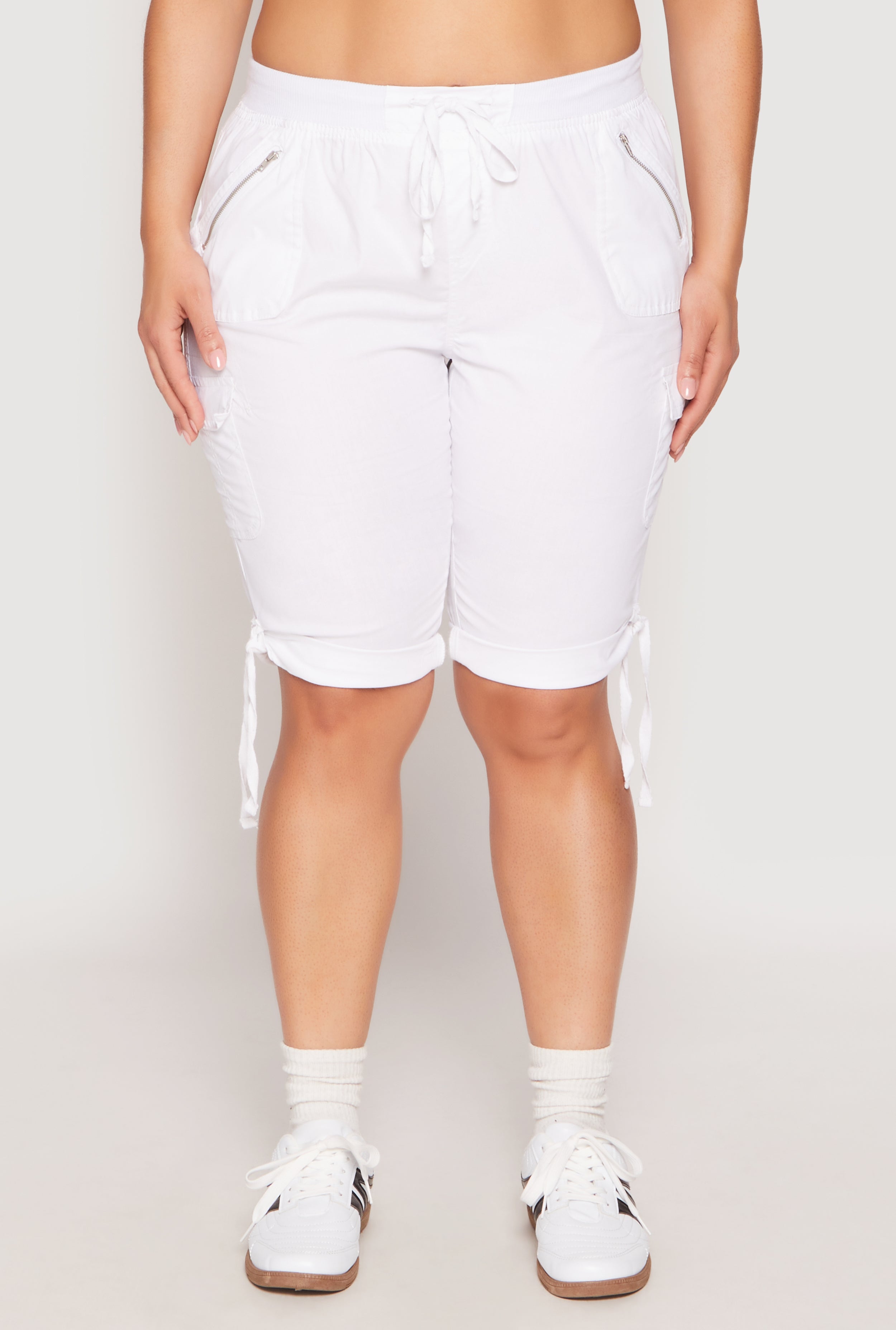 Looking for the perfect blend of comfort and style? Our Plus Size Zip Pocket Bermuda Shorts are your new go-to for effortless summer vibes. Featuring a high waist and a trendy tie hem, these shorts are designed to keep you feeling confident and cool all day long. With practical zip pockets and rolled cuffs, they add just the right touch of detail to elevate your casual look. Made from stretchy poplin fabric, they move with you and fit like a dream. Whether you're lounging or out and about, these Bermuda shorts are your stylish solution.