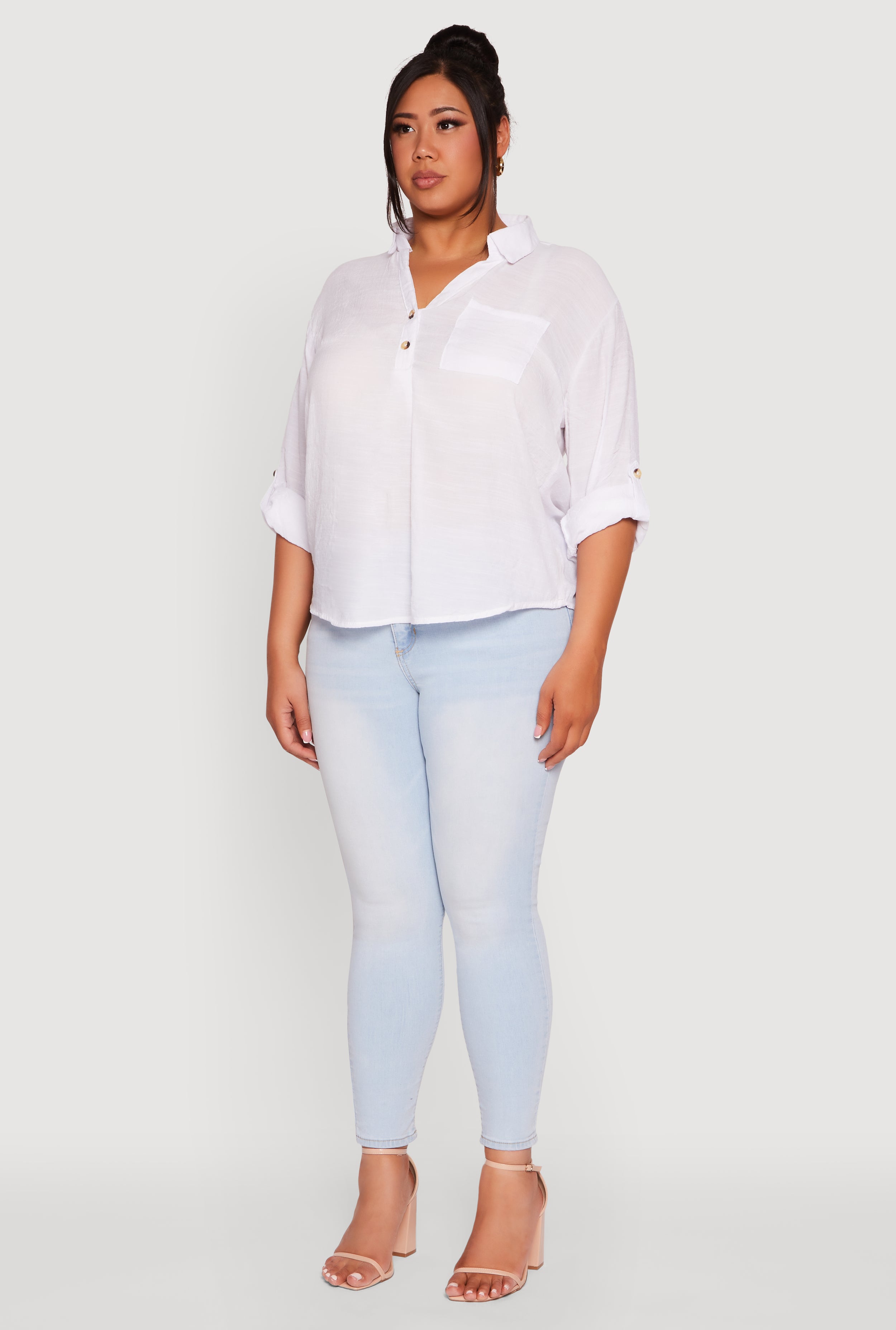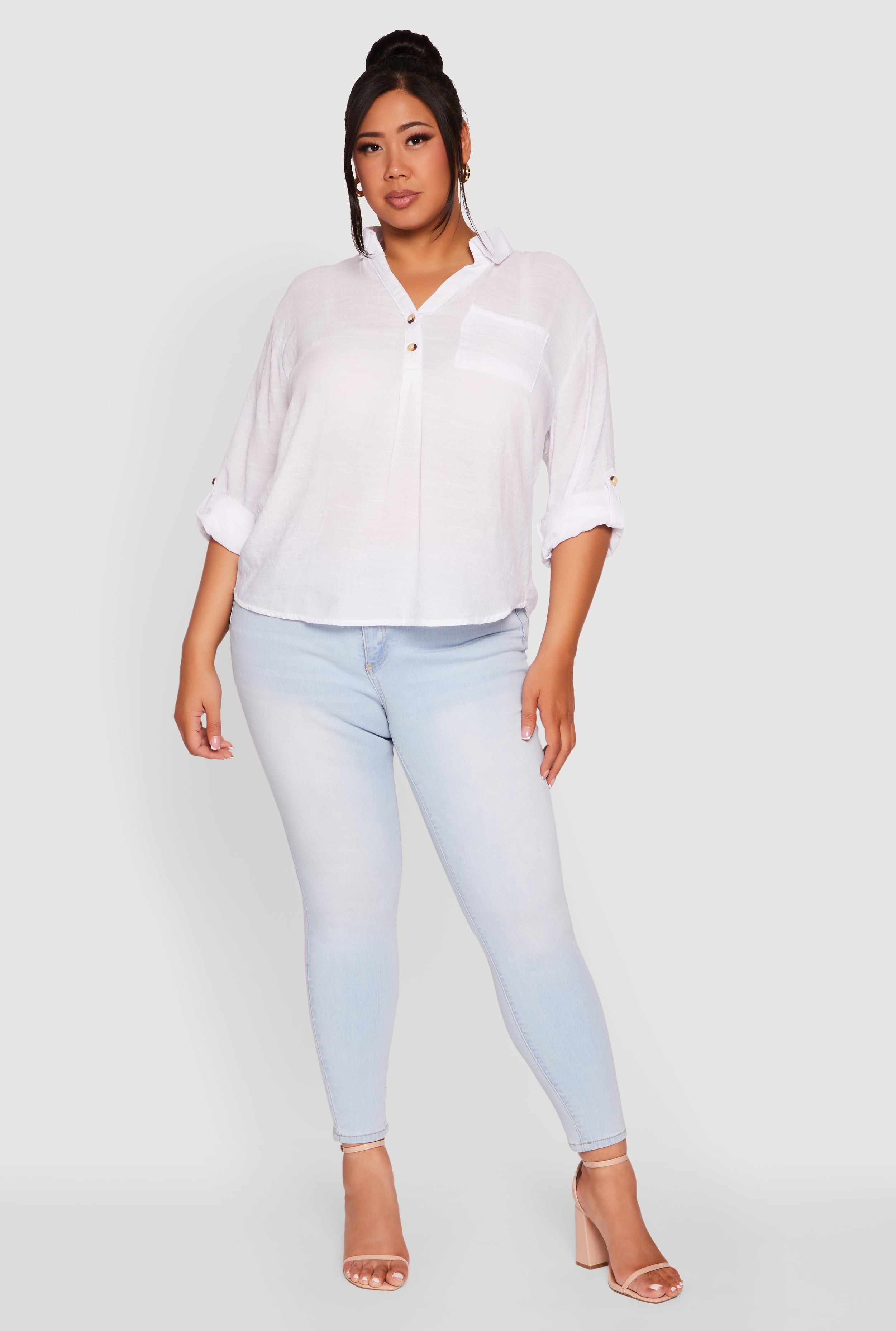 Step up your casual game with this Plus Sized Tabbed Sleeve Collared Henley Top. Designed with a classic fit and timeless silhouette, it effortlessly blends comfort and style for your everyday adventures or laid-back vacation vibes. The 3/4 tabbed sleeves add a playful touch, while the collared neckline keeps things polished without trying too hard. Whether you’re out brunching or chilling with friends, this top is your new go-to for easy, confident looks.